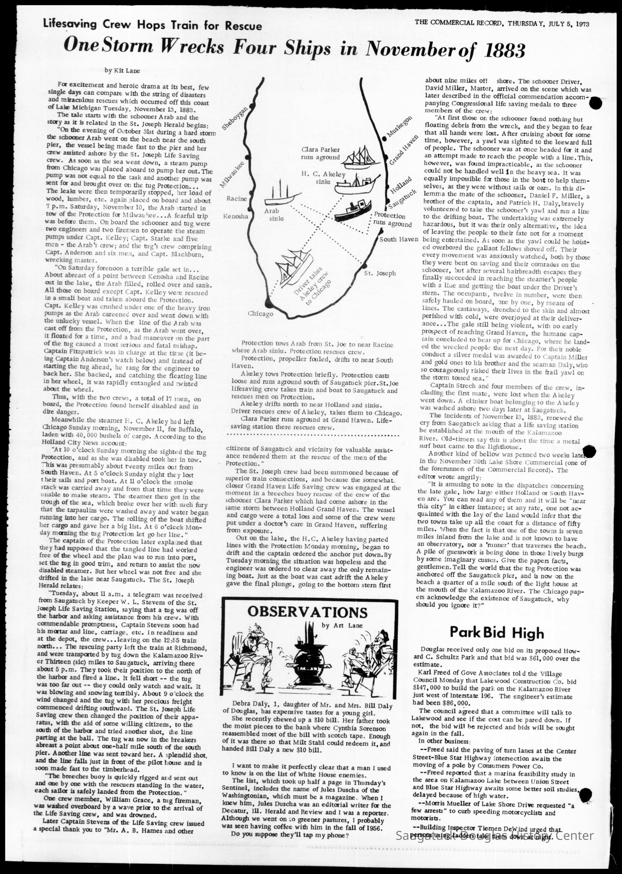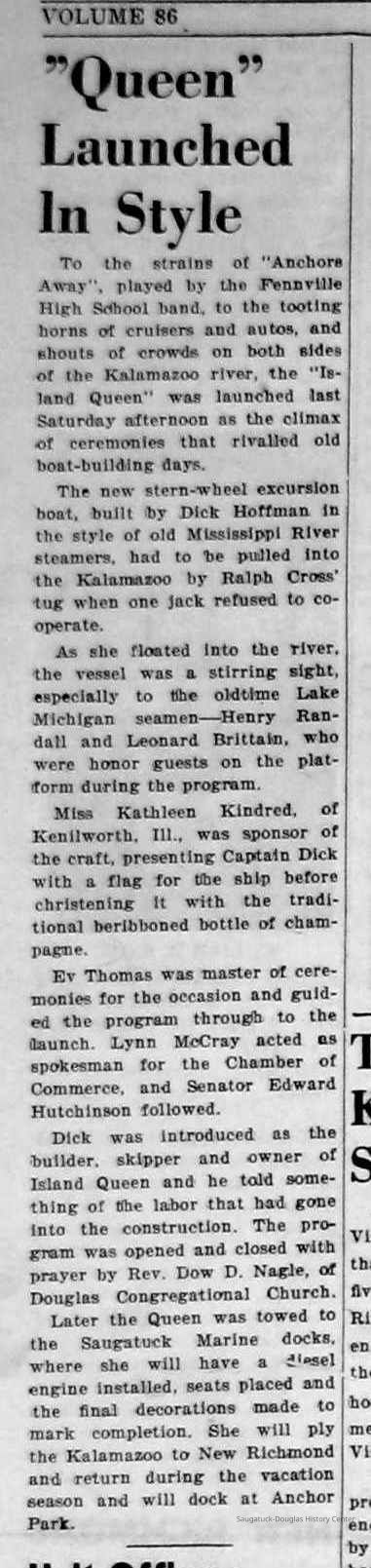 Saugatuck Harbor Piers/Channel 1906-present, G.P. Heath (ship) 1871-1887, J.S. Seaverns (ship) 1800, Jennie King (boat) 1882-1892, John Gordon (ship), A.B. Taylor (ship) 1884 / Ottawa 1902-1910, Alice Purdy (boat) 1881-1888, Protection (ship), Joseph C. Suit (ship), Shriver Brothers (boat), Douglas (ship) 1882, A.C. Colborn (ship) 1882-1922, Twilight (boat), Michigan (Ship) ?-1885, The Orphan Boy (ship) ?-1886, Marine Engineers Association, Saugatuck 1888-, Goodrich Transporation Company, Bon Voyage (ship) 1891, Rochester (ship), Rogers & Bird Shipyard/Line, Milwaukie (ship) 1842, SS Milwaukee Clipper, Aunt Betsey (ship) 1867, Helen Mar (ship), Walbridge, D.S., Allet, John Parker "Uncle John" 1823-1901, Pioneer (boat), Field, Cephas 1785-1861, Crusader (ship), Coates, Lintsford B. 1834-1906, Cummings, Dennis 1848-1893, Sears, Frederick A. "Fred" 1843-1913, Old Harbor/Channel piers pre-1906/Ox-Bow Lagoon, Baker, George Harris 1841-1910, Perryman, E.S., Hattie (boat), Menier, Fred c1850s-1900s, Pewabic (ship) 1863-1865, Perkins, Henry "Hank" Isaac 1858-1941, Veits, Loren E. 1860-1946, Parrish, Charles W. (1877-1955), Davis, James F., Hauke, Otis, Wade, Clarence W. 1855-1928, Hames, George W. 1834-1917, Bird, Charles Edmund “Carl” Jr. 1879-1968, Bird, Harry Moffat 1877-1914, Bon Ami (ship) 1894 / Northshore 1920-1945, Pup (boat) 1894-1915 (left Saugatuck in 1907), Cuckoo (ship) 1907, Fort, Robert "Harry" 1875-1954, Bird, Moffat Putnam 1911-1993, Bird, John Moffat 1899-1973, Crow, Morton H. "Heath" 1910-1976, Simonson, Earnest Jean 1916-1996, Force, Norman, Sheridan, James E. 1909-1996, Sheridan, Joseph U. 1906-1983, Crawford, George Robert "Bob" 1913-1999, Jackson, Harry Alfred 1890-1962, Hiestand, Charles Oliver 1885 -1962, Edgcomb, Morgan Sr. 1877-1964, Alabama (ship) 1909-2006, Chicago, Duluth and Georgian Bay Transit Company, South American (ship), Gotham (boat) -1943, Sewers, Reuben W. "Rube" Jr. 1894-1978, Sewers, Frank Wilmot 1894-1970, Saugatuck Sea Scouts, Whipple, Harold Clifford "Bud" 1897-1974, Kasten, Erwin F. Sr. 1904-1979, Maycroft, Horace, Rev., Gilman, Charles Hailey 1917-1964, Peel, Robert Charles "Bob" 1924-1988, Pshea, Alfred Lester 1919-2013, La Carousel/Waugun [boat], Hoffman, Richard "Dick", Island Queen I and II Paddlewheelers, Randall, Henry J. 1864-1957, Brittain, Leonard Spaulding "Cappy" 1880-1964, Thomas, Everard "Ev" D. 1912-2004, McCray, Lynn, Hutchinson, J. Edward 1914-1985, Anchor Park Amusement Center 1951-1975, H.C. Akeley (ship) -1883, Argo (ship) 1901-c1936, Graham & Morton Transportation Co. 1874-1950, Hattie B. Pereue (ship) ?-1902, Charles McVea (ship) 1888-1928, Bird, Charles Edmund Sr. 1855-1941, Rogers, Reuben Turner 1840-1926, Pilgrim (ship) 1888, Ida Keith (ship) 1874, John A. Aliber (boat) 1897-c1927, Gleason, Henry 1925-2019, Starring, Bruce, Queen of Saugatuck (ship) c1977-, Gardner, Bob, Doerner, DeForest "Cap" 1914-1989, Star of Saugatuck (boat) 2000-