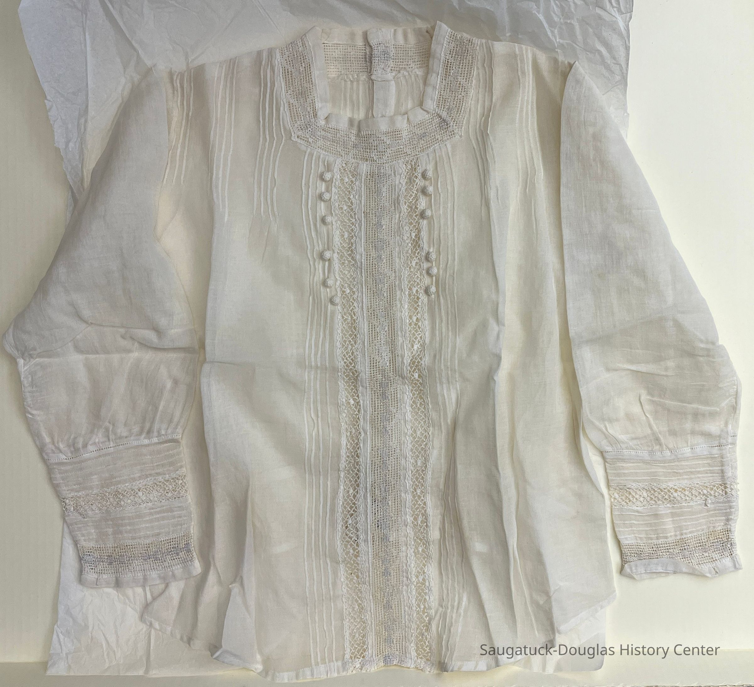 Julia E. Brittain was the daughter of Saugatuck ship builder R.C. Brittain. The quality of this shirt suggest her family's prosperity.Collection