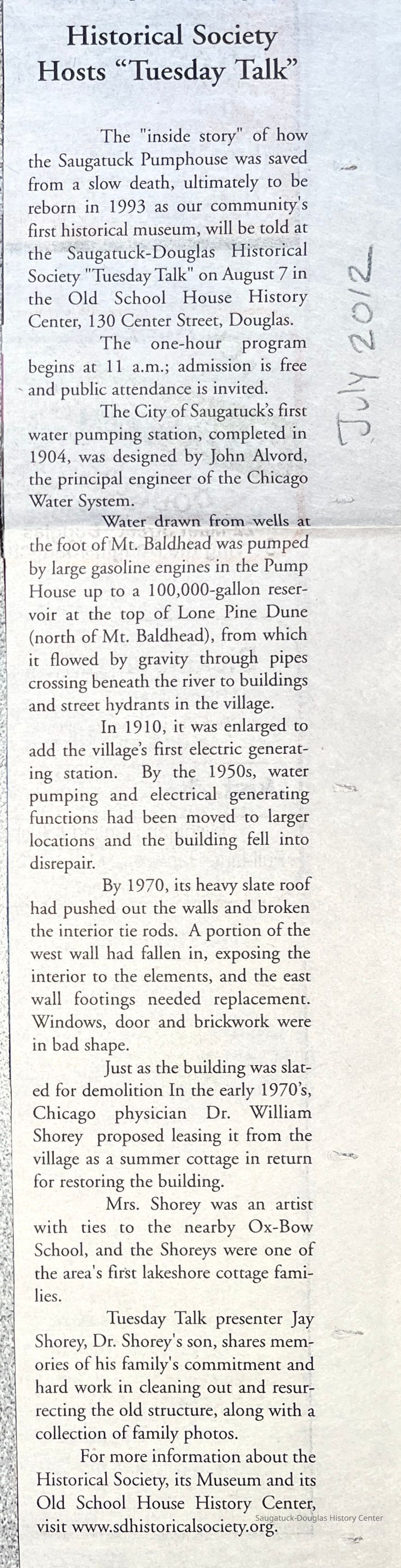 Shorey Pump House RestorationEntry/Object ID