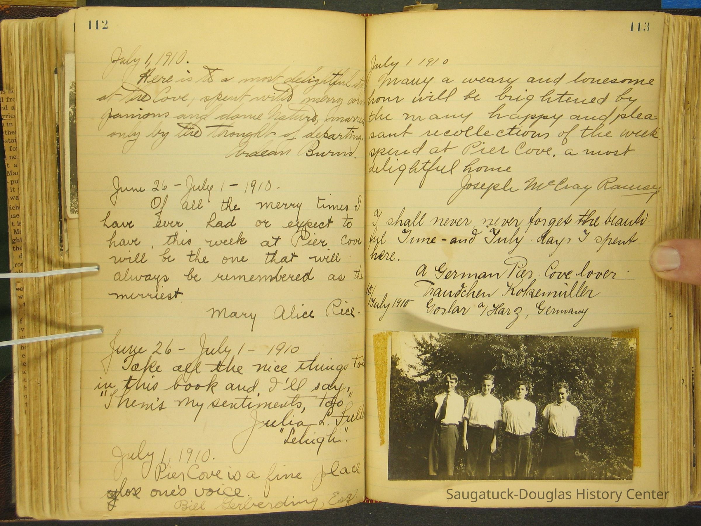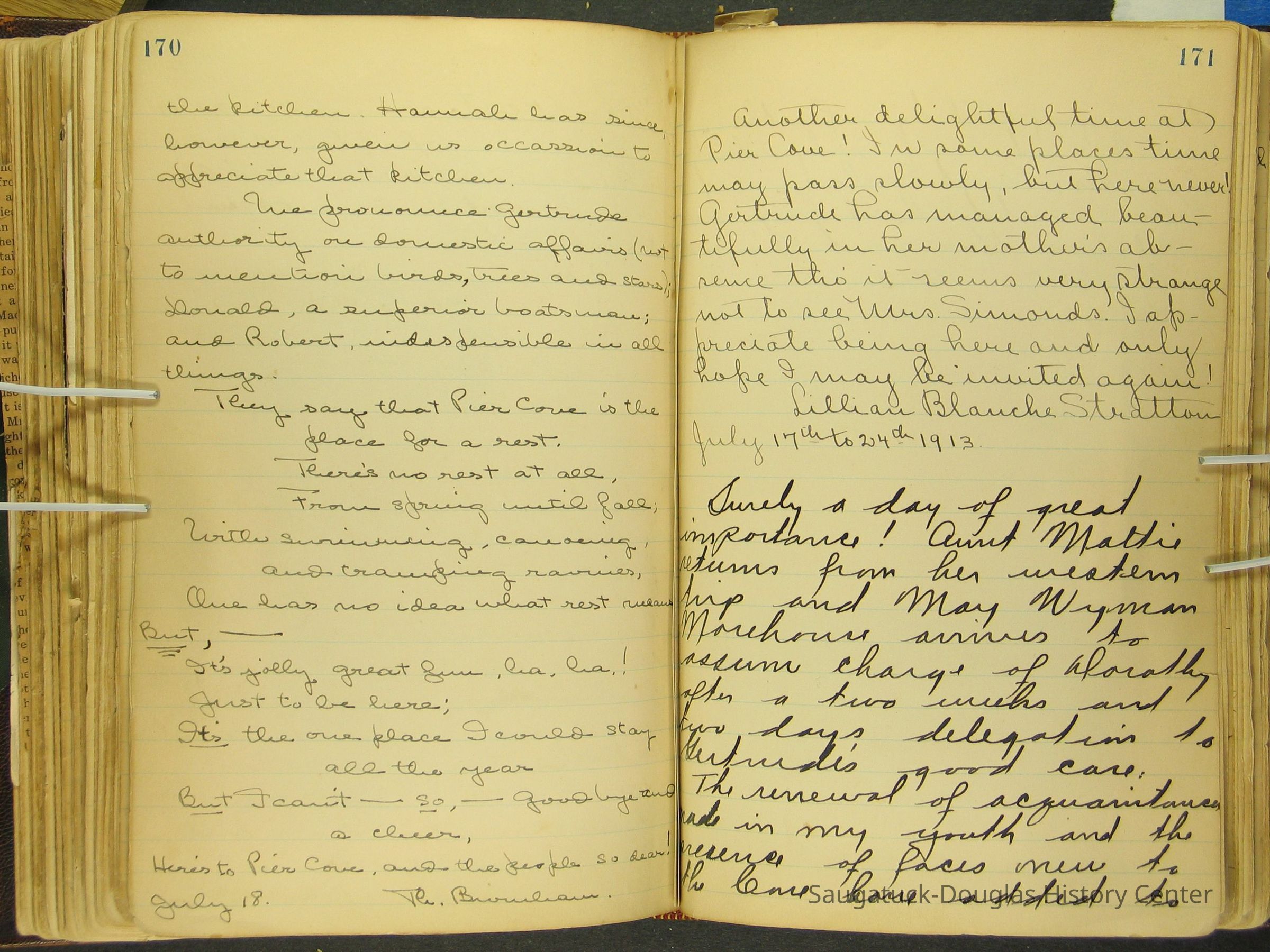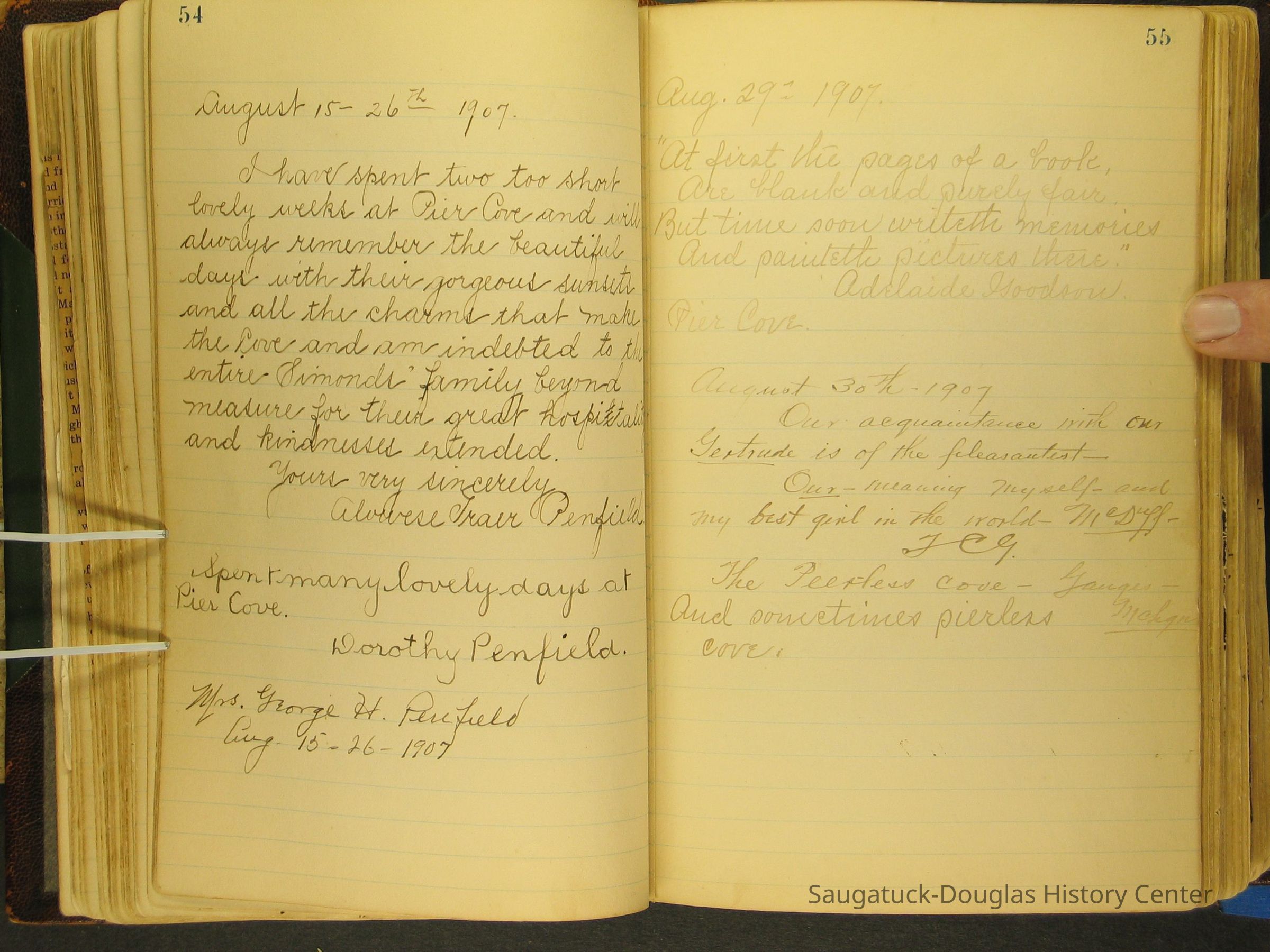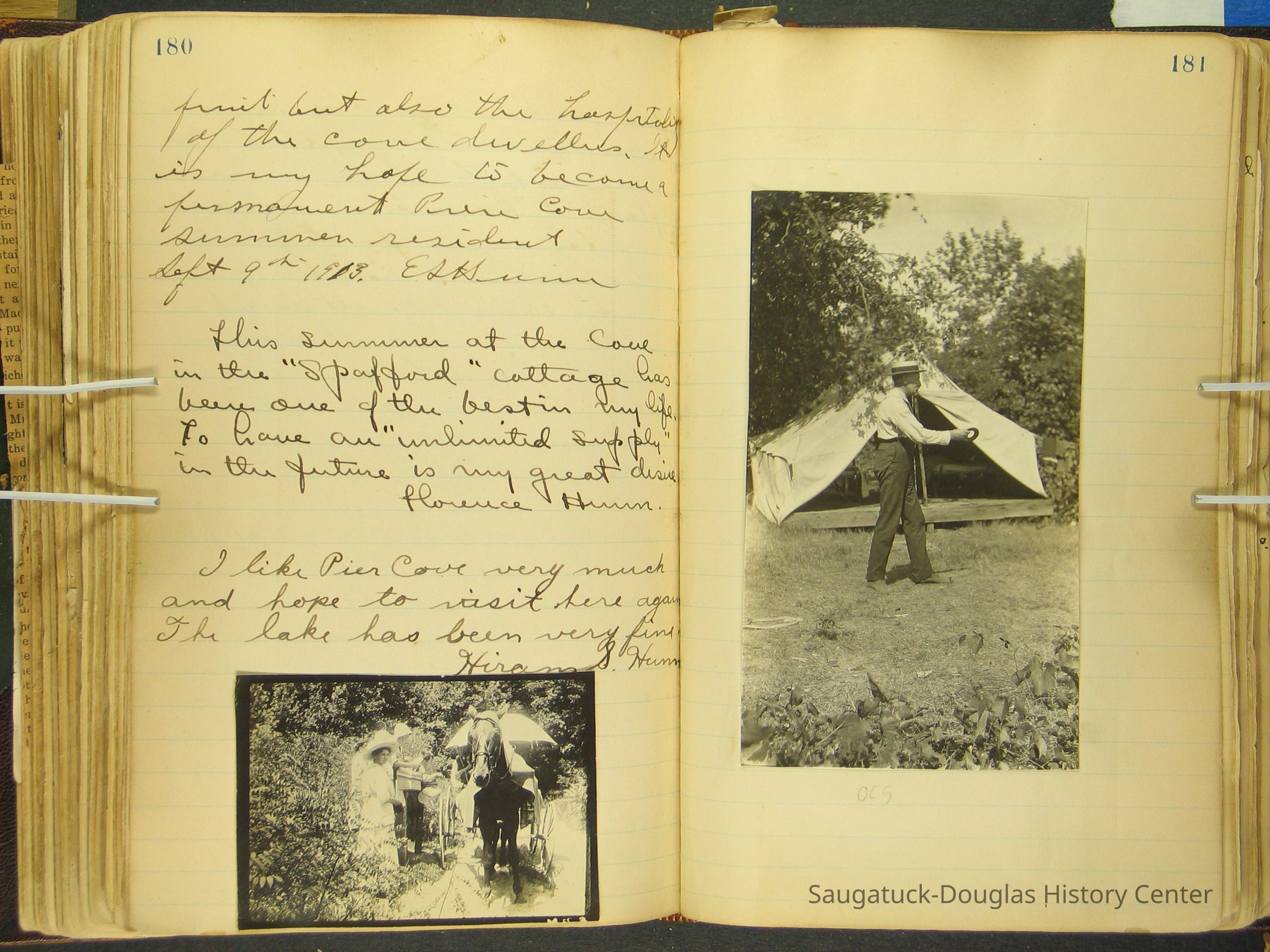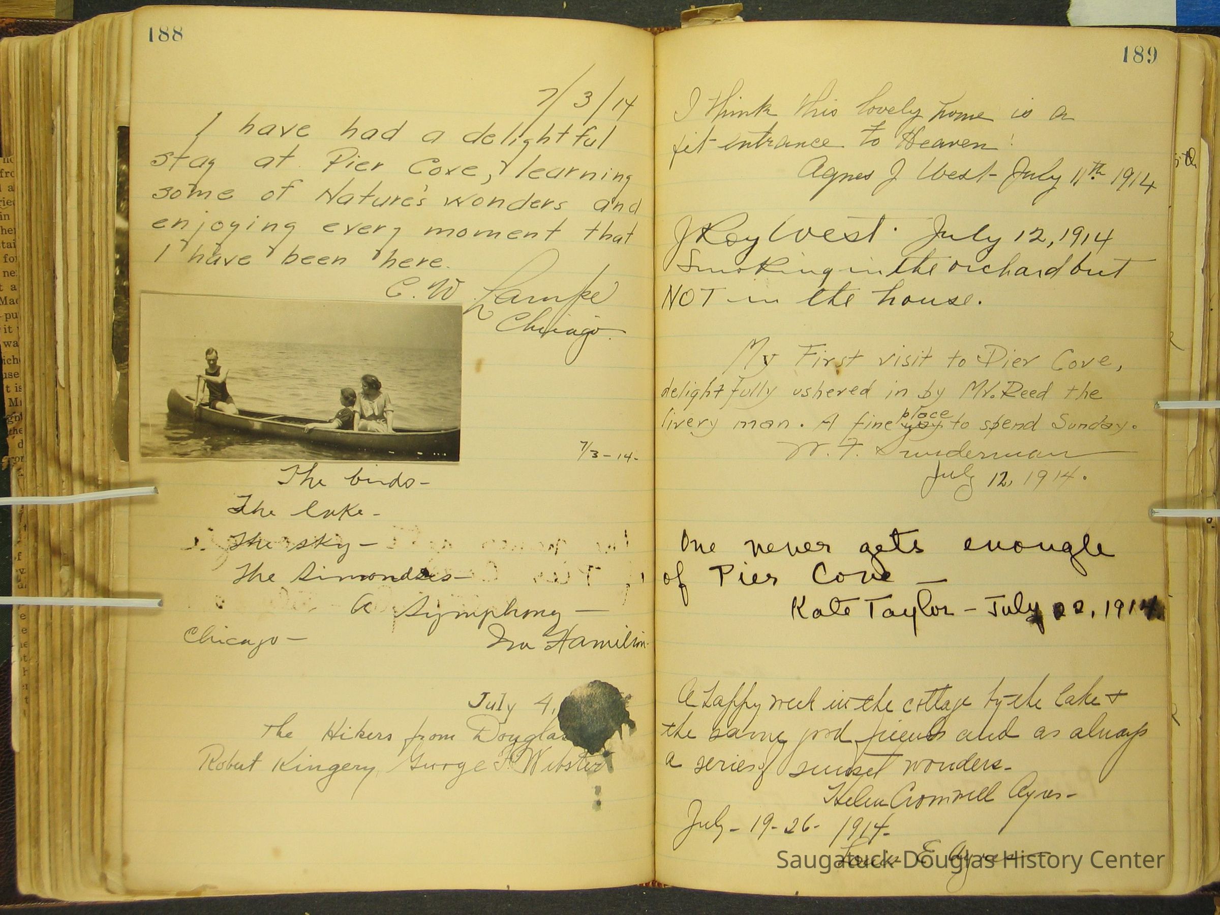 Photos of Pier Cove locations, cottagers and their activities plus notes, poems, newspaper clippings and sentiments written by guests, family and neighbors.Collection
