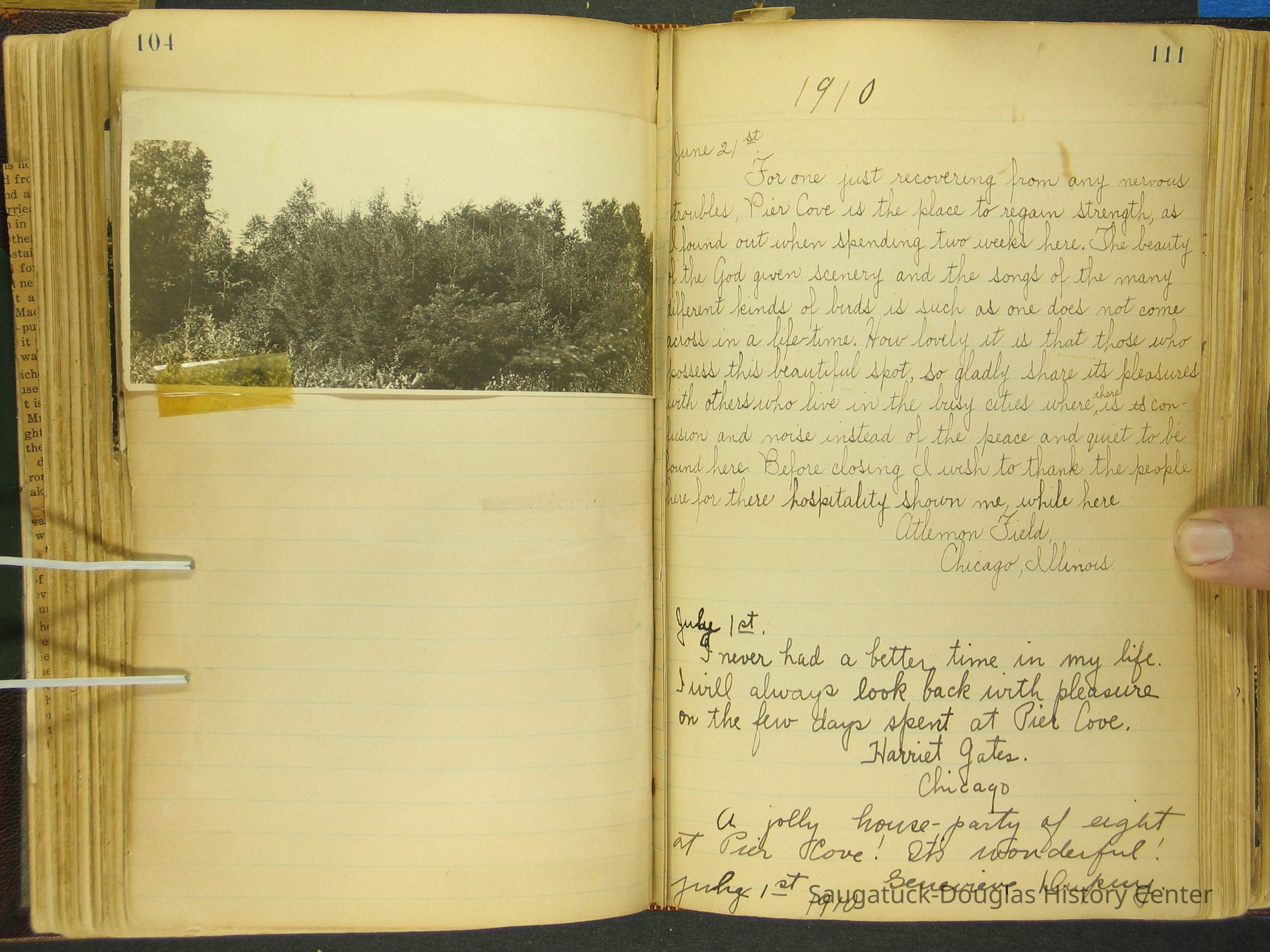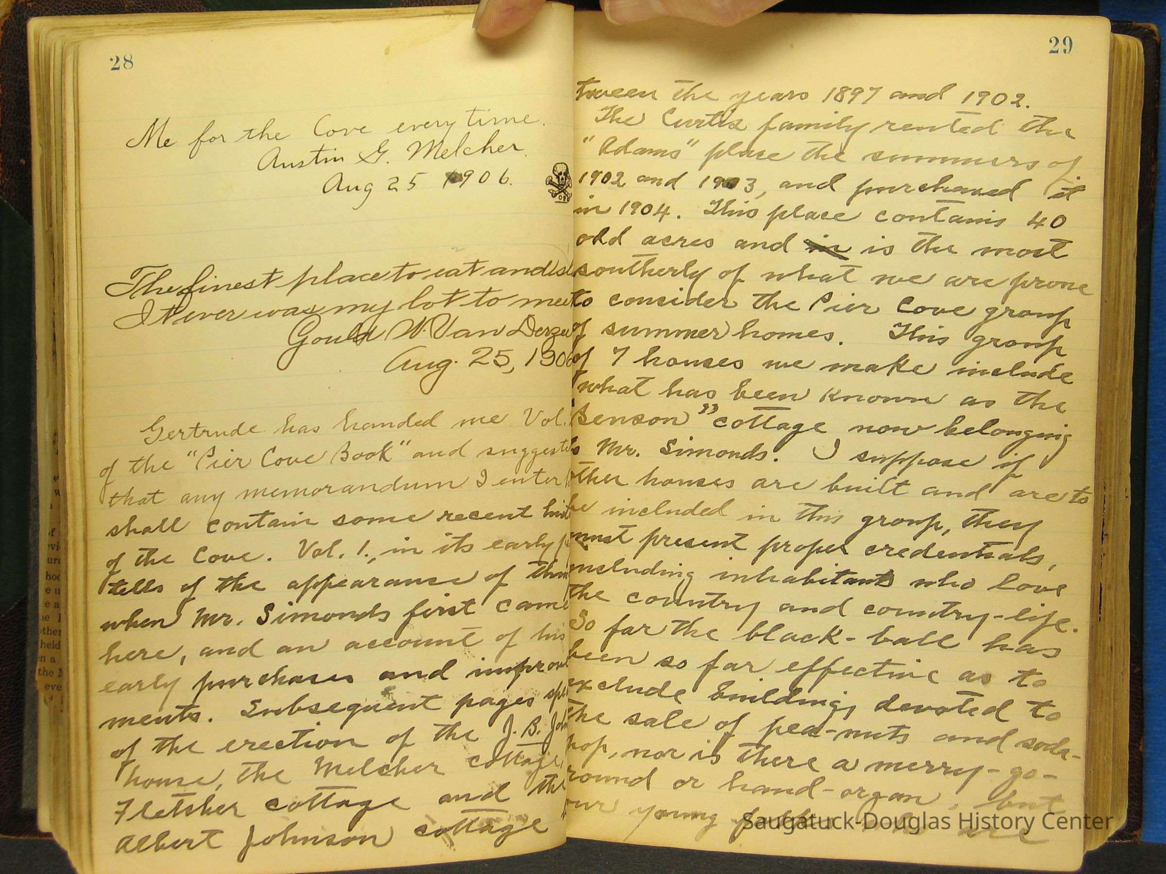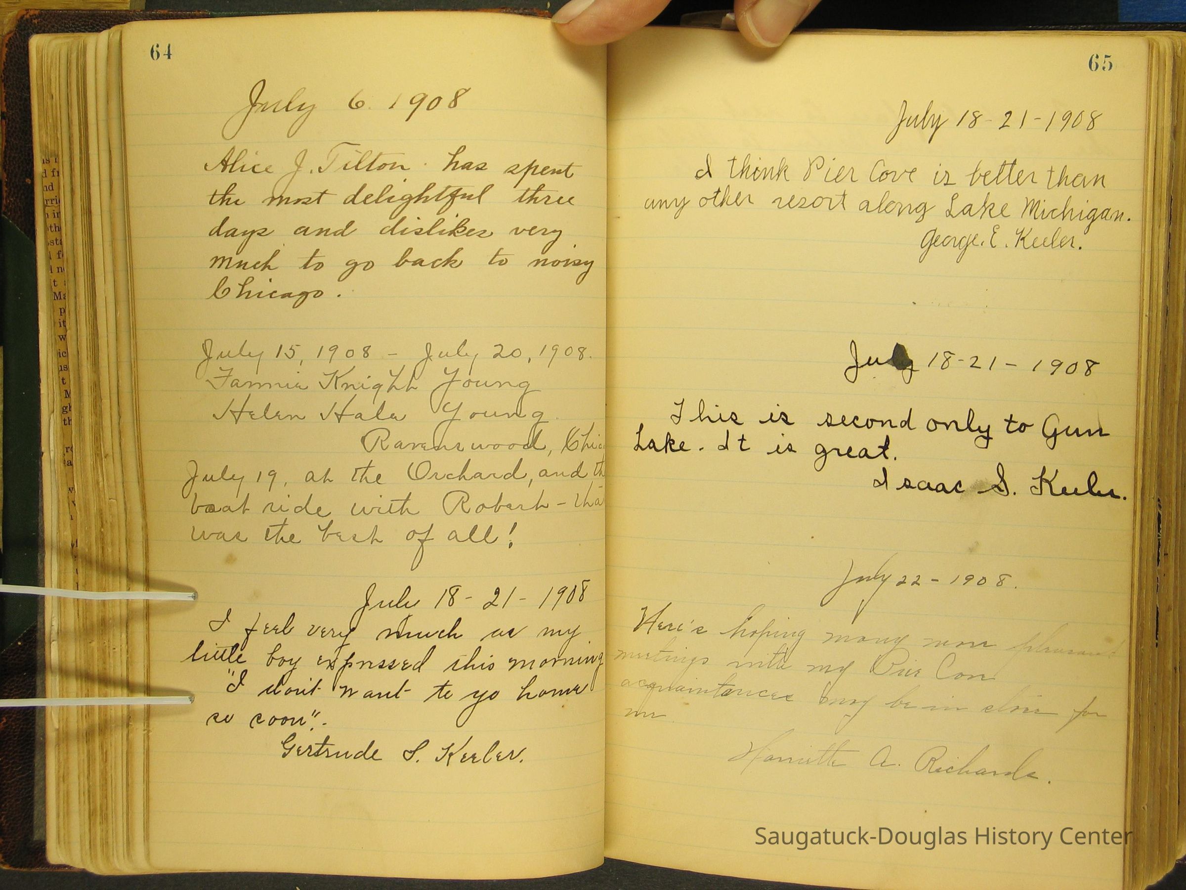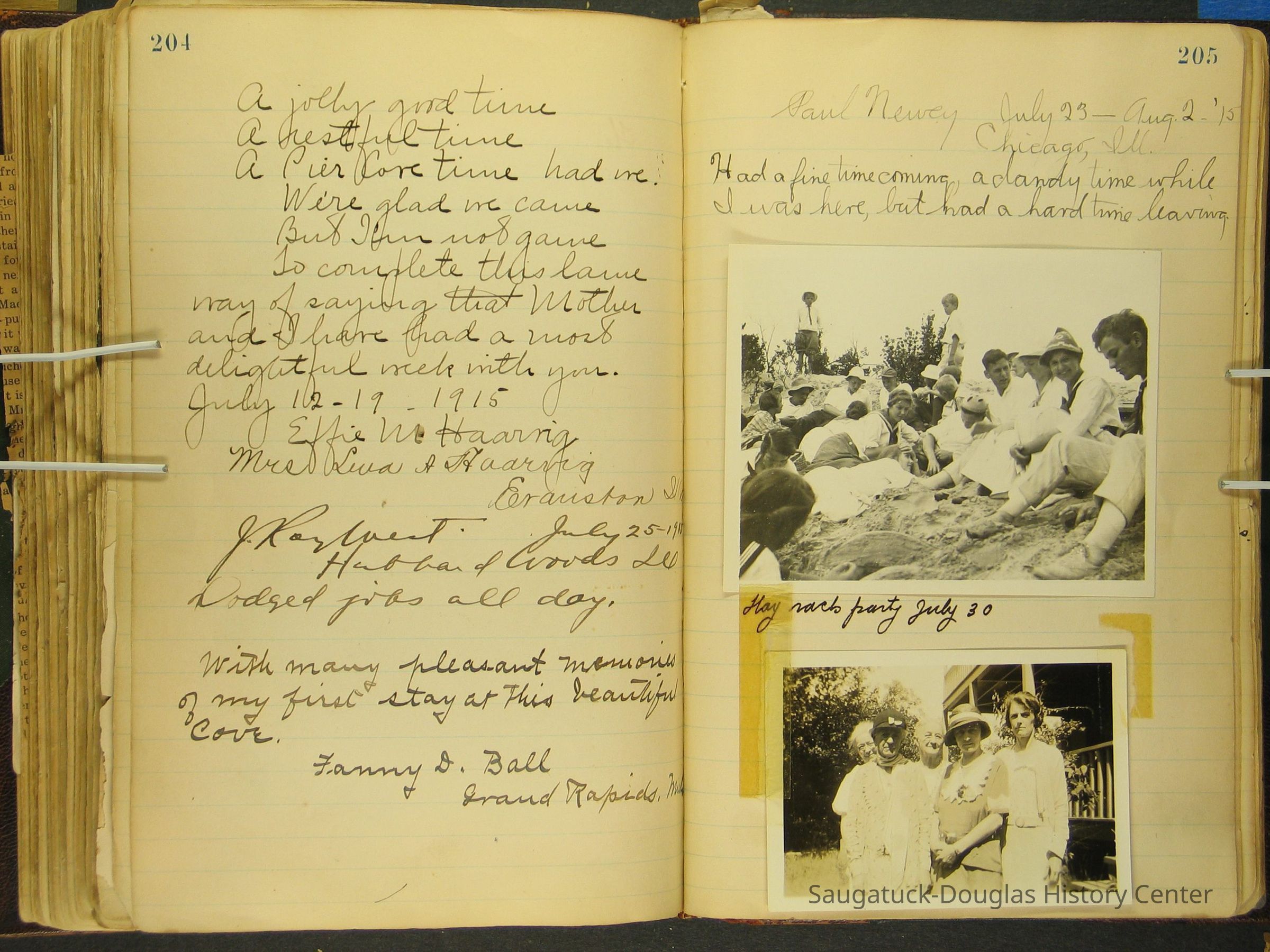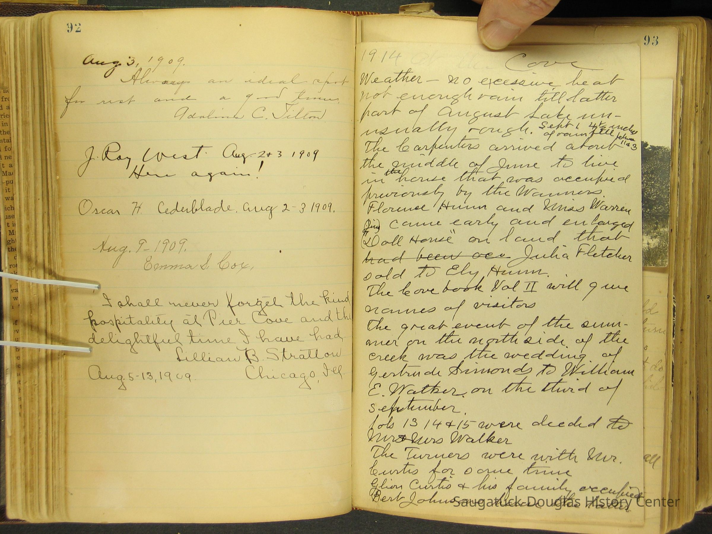 Photos of Pier Cove locations, cottagers and their activities plus notes, poems, newspaper clippings and sentiments written by guests, family and neighbors.Collection