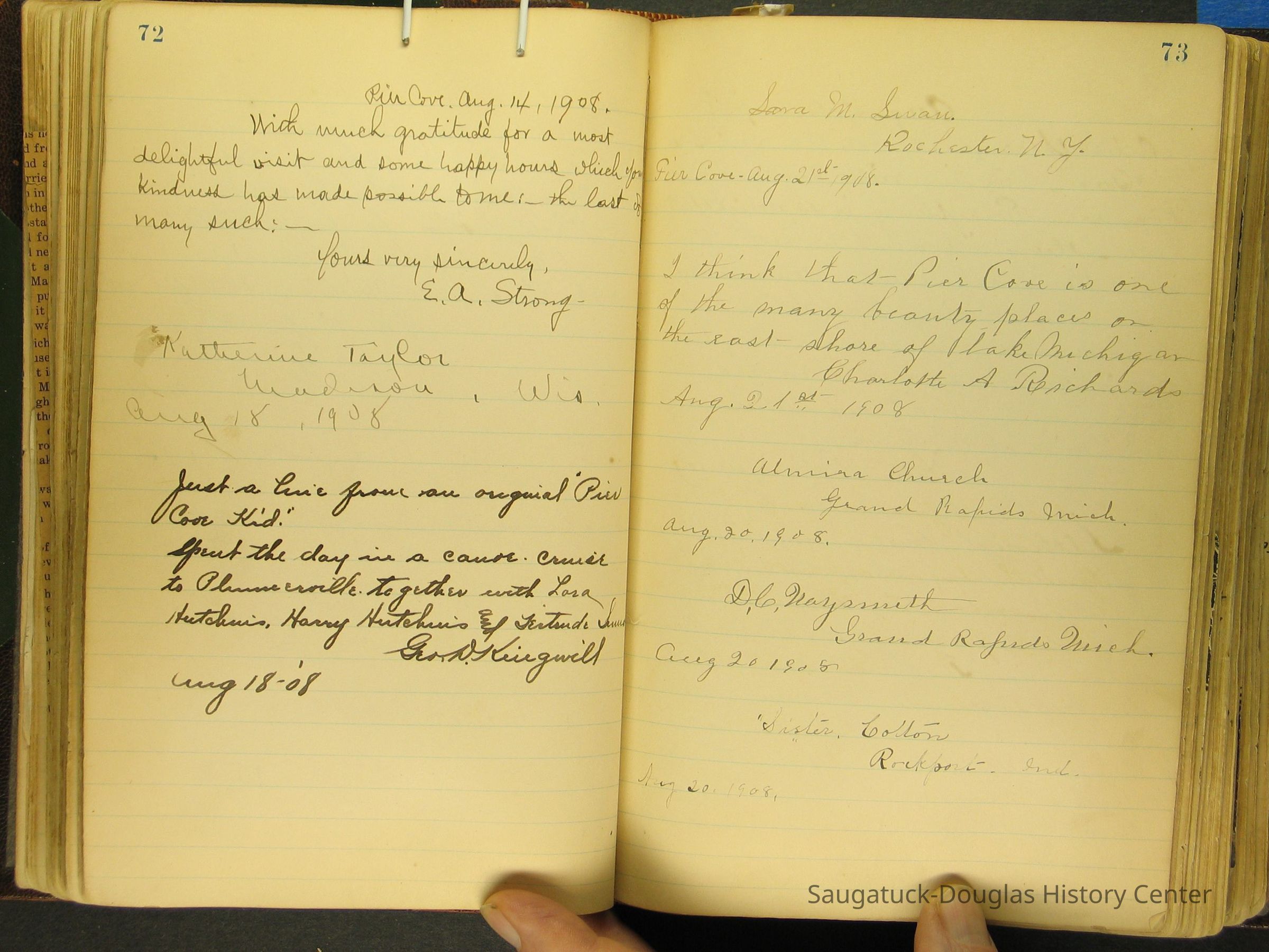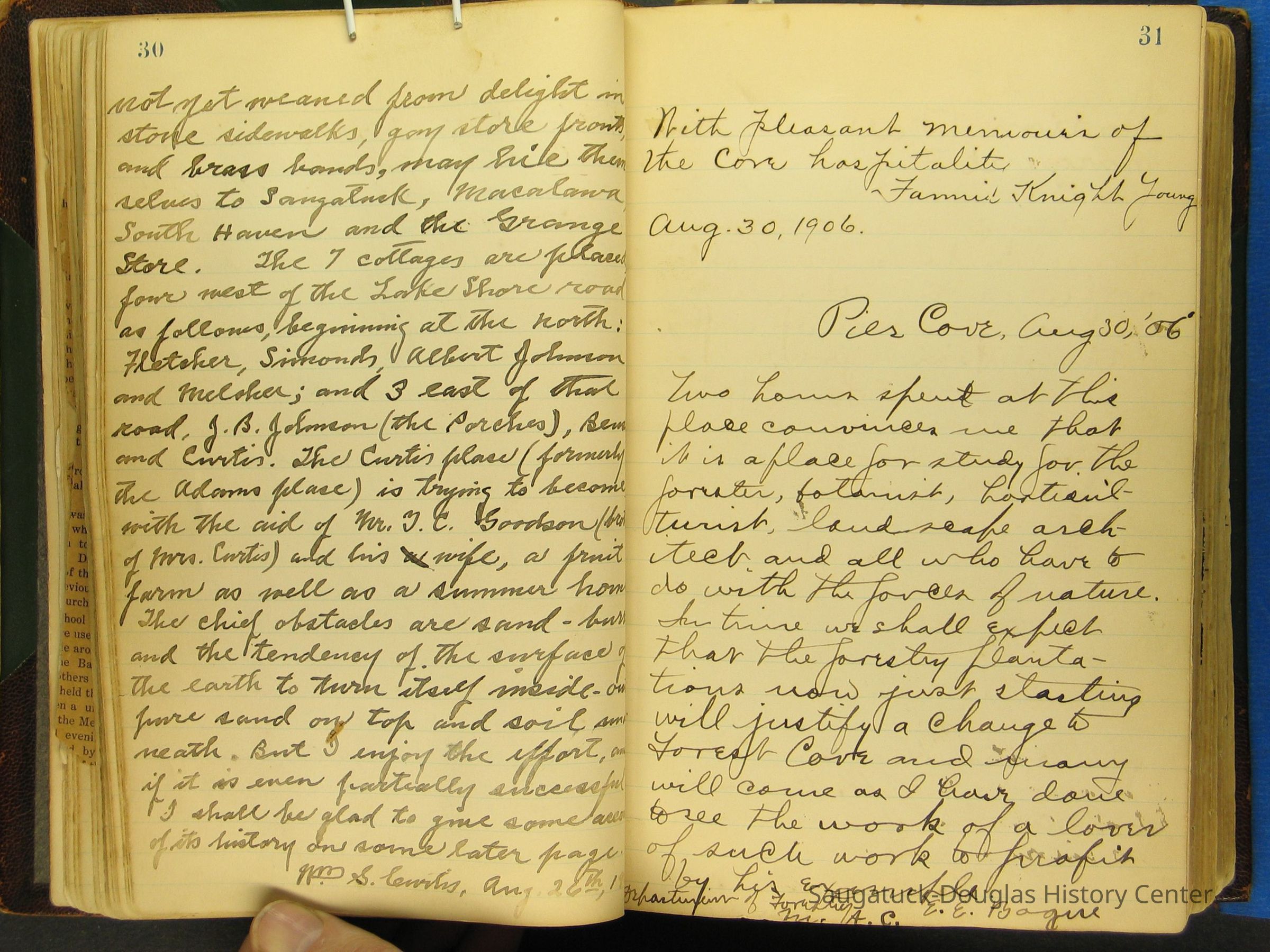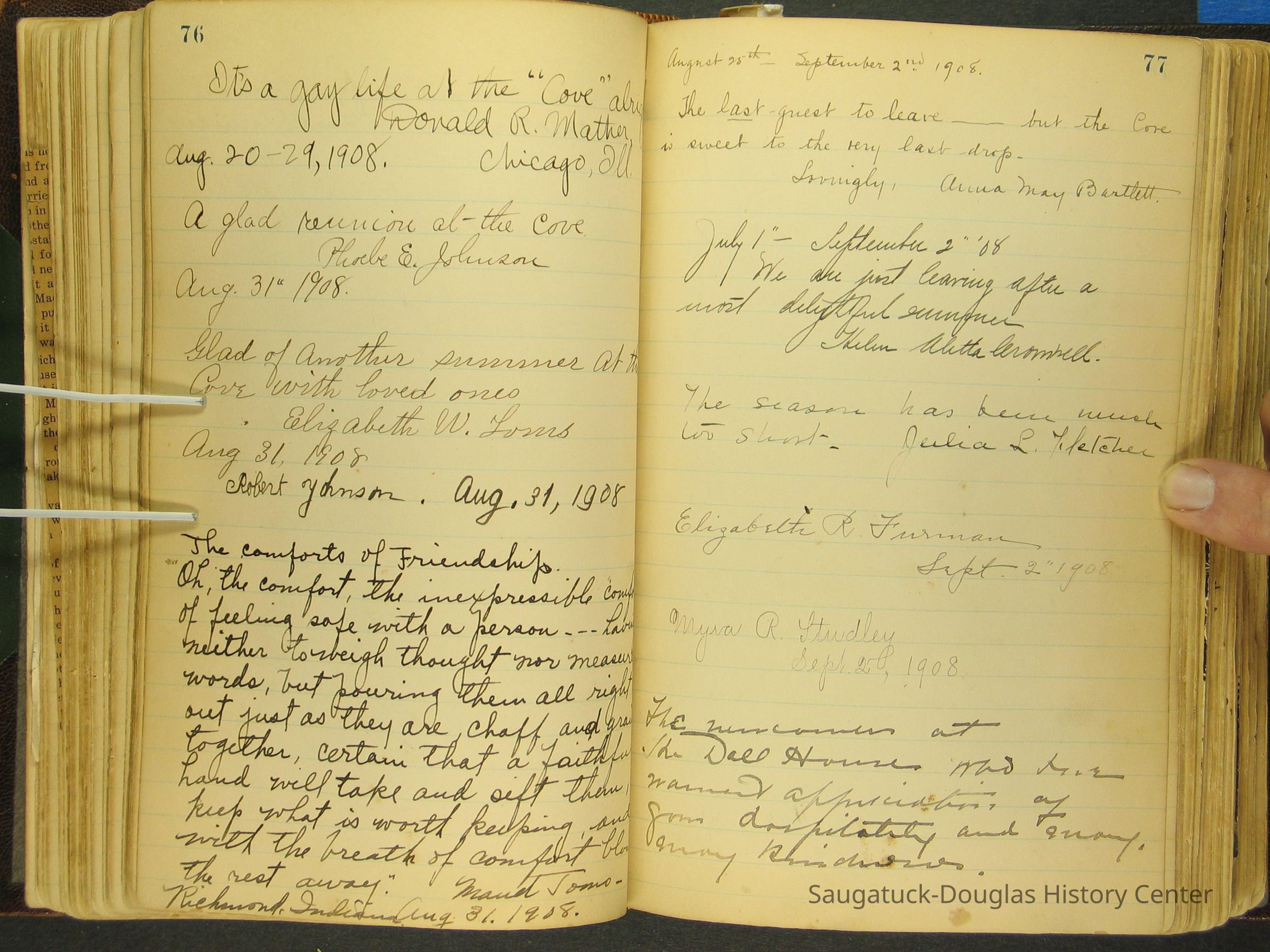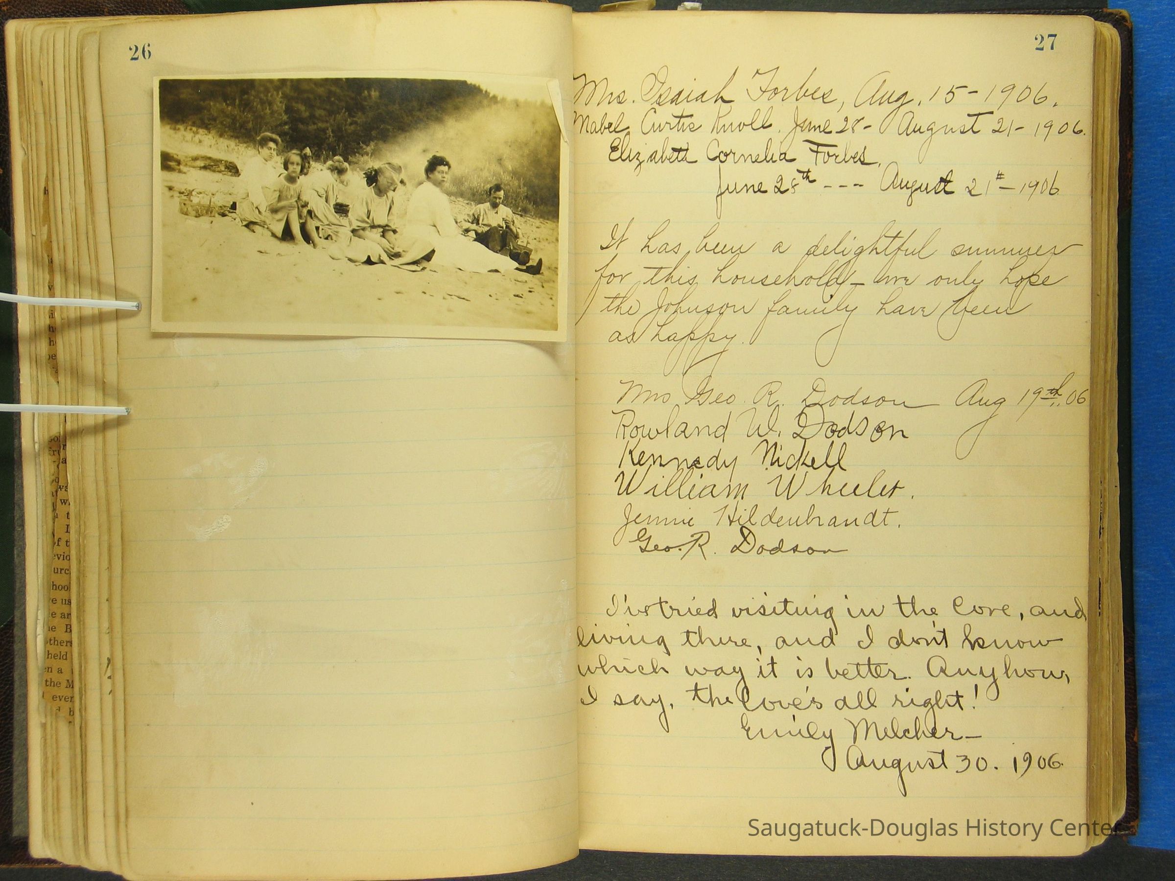Photos of Pier Cove locations, cottagers and their activities plus notes, poems, newspaper clippings and sentiments written by guests, family and neighbors.Collection