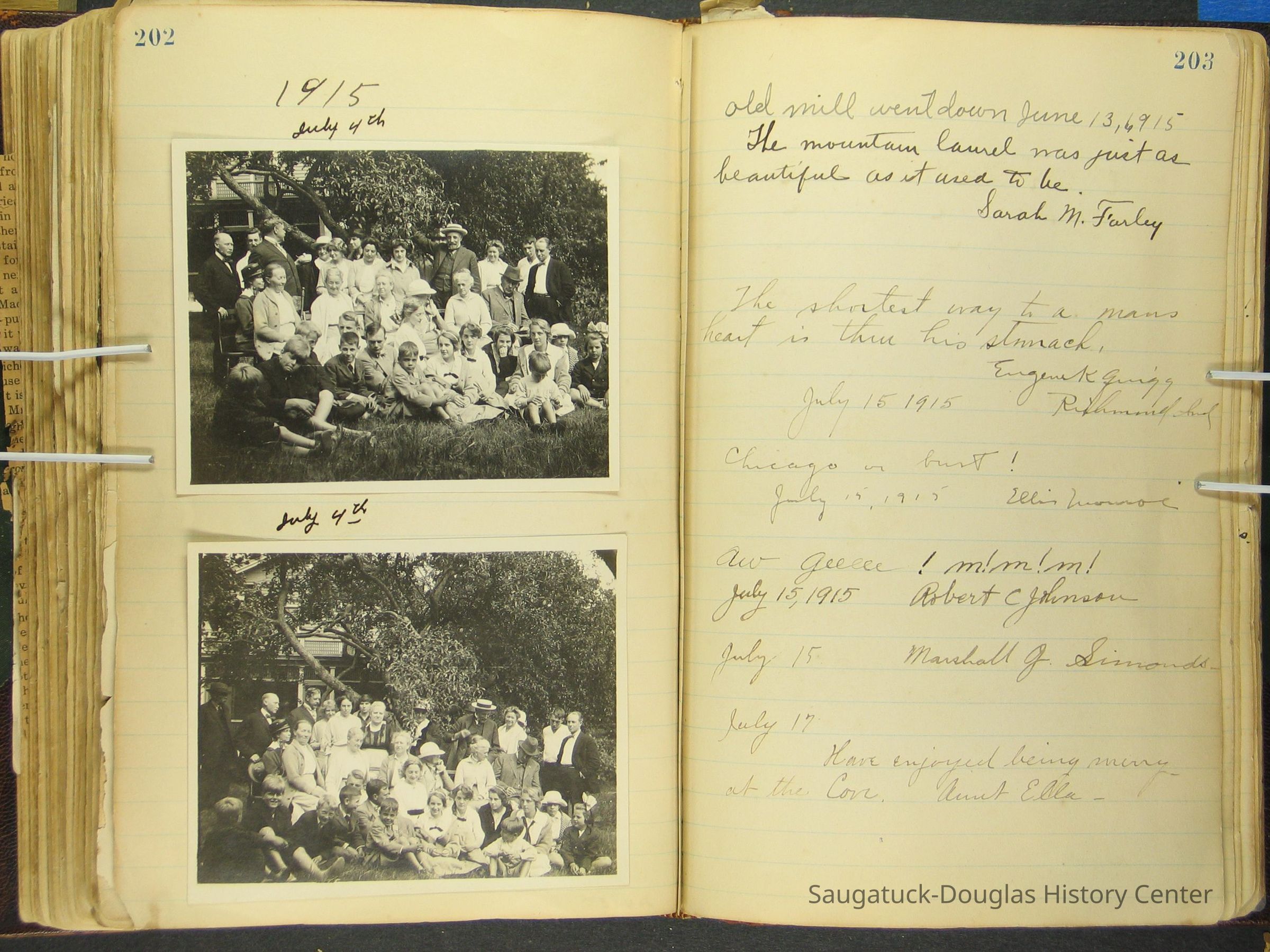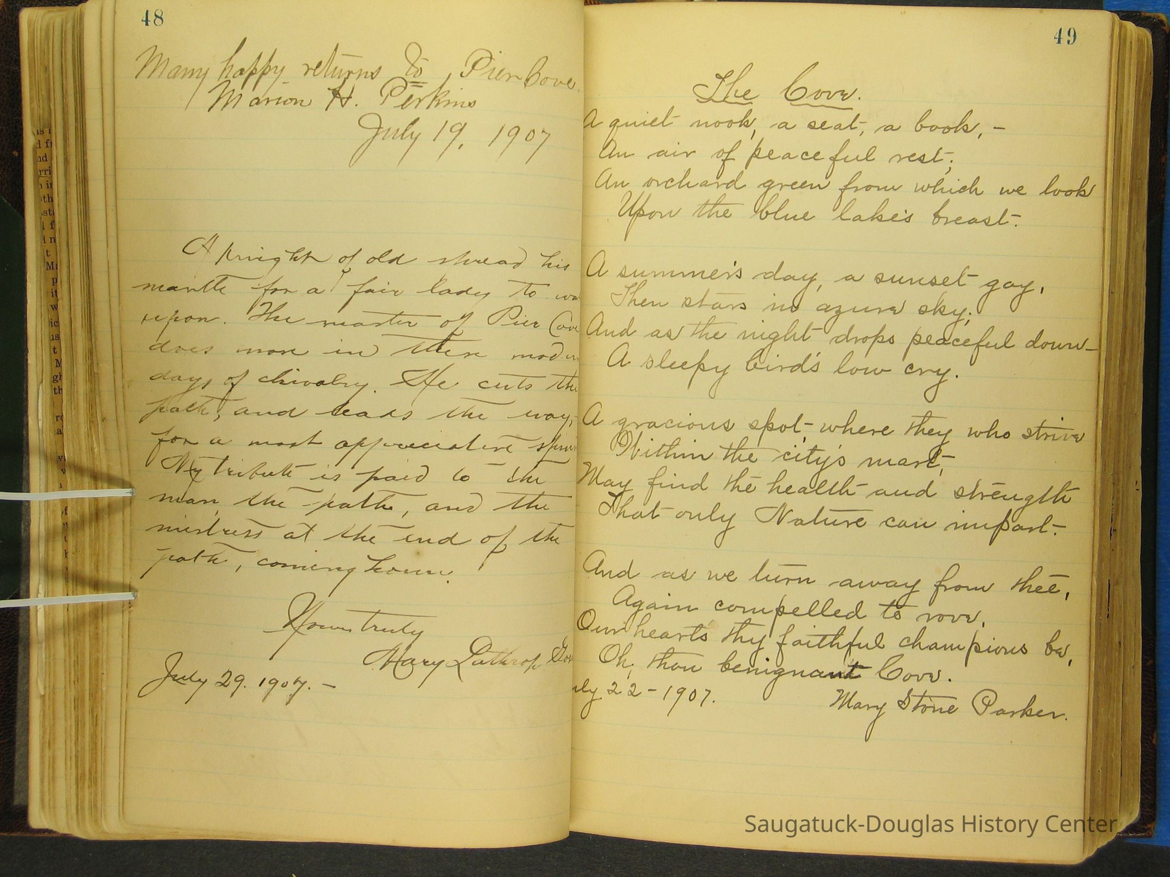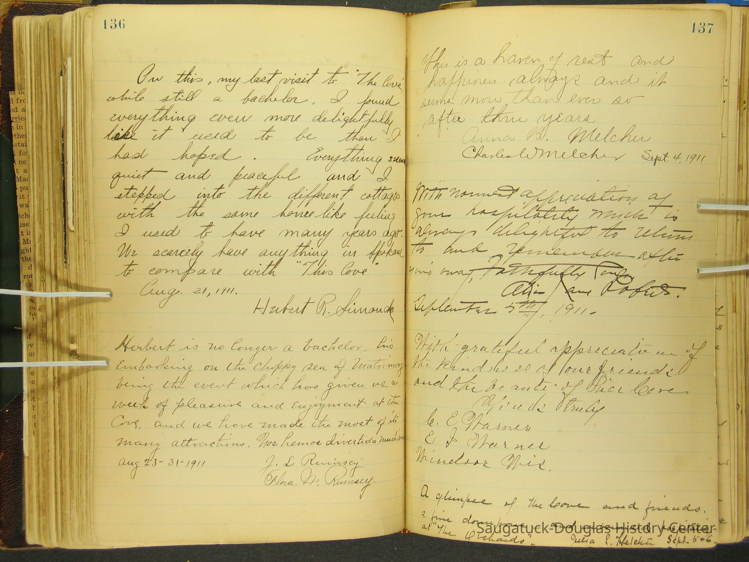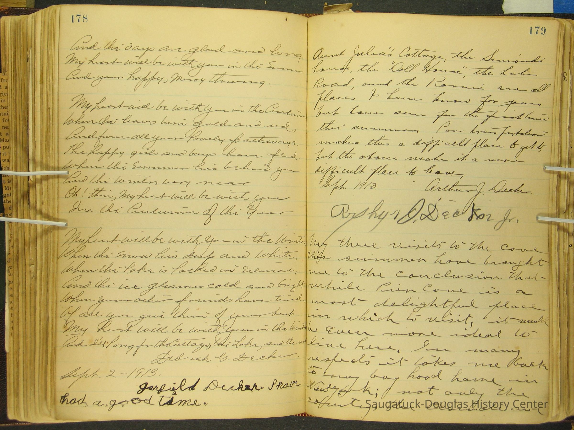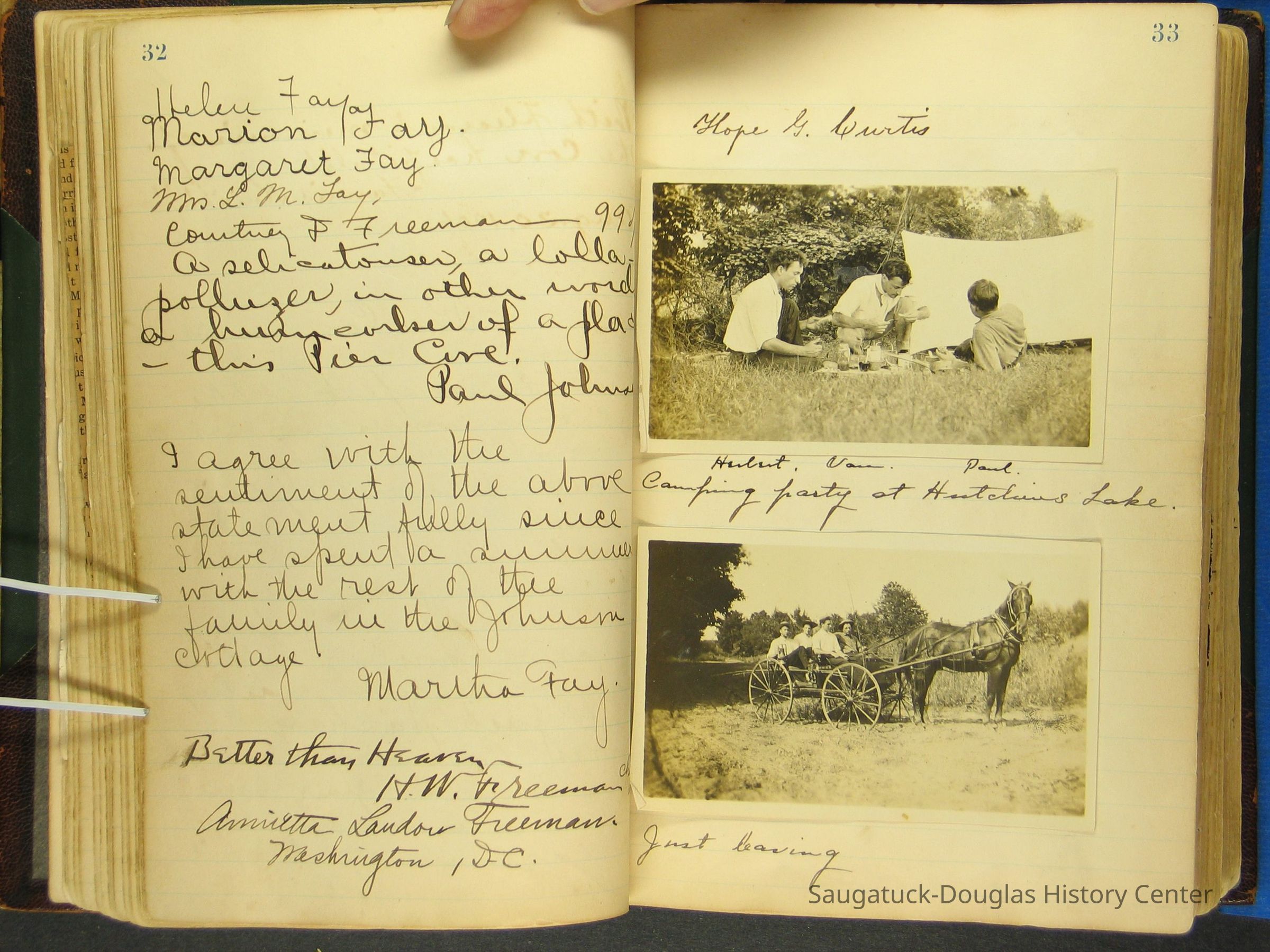 Photos of Pier Cove locations, cottagers and their activities plus notes, poems, newspaper clippings and sentiments written by guests, family and neighbors.Collection