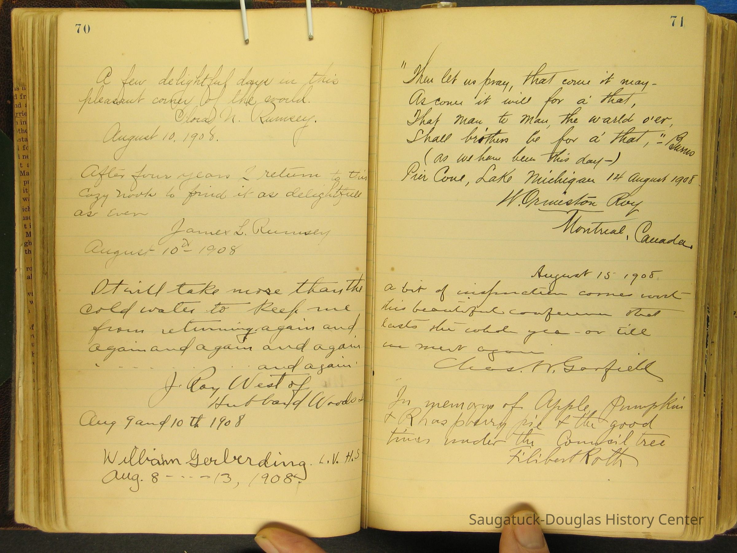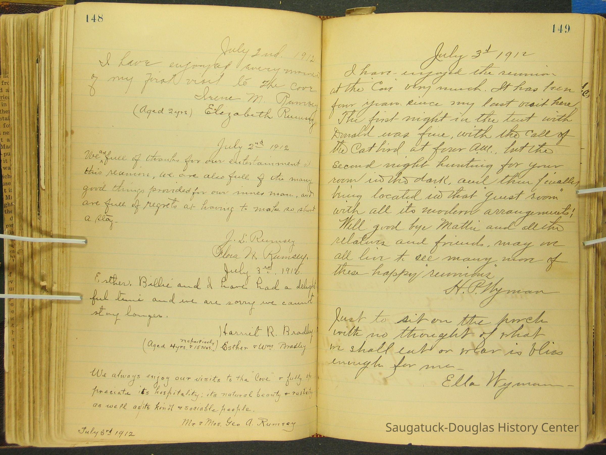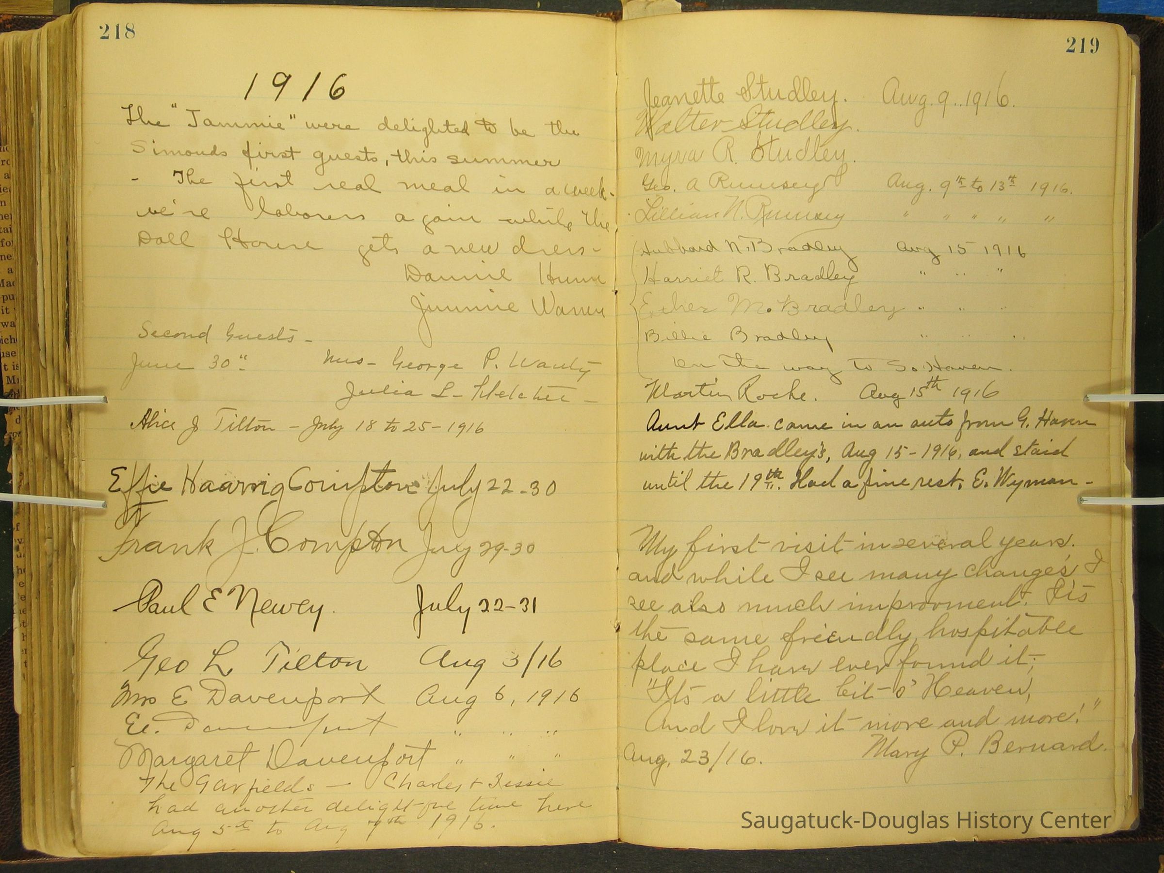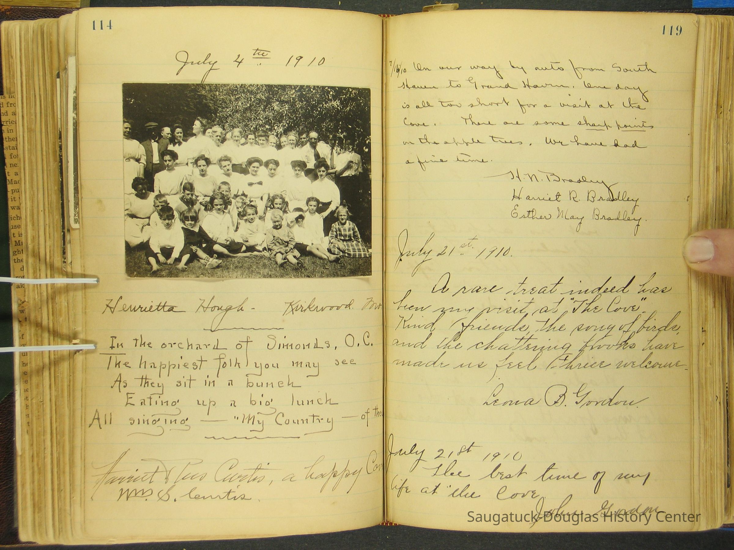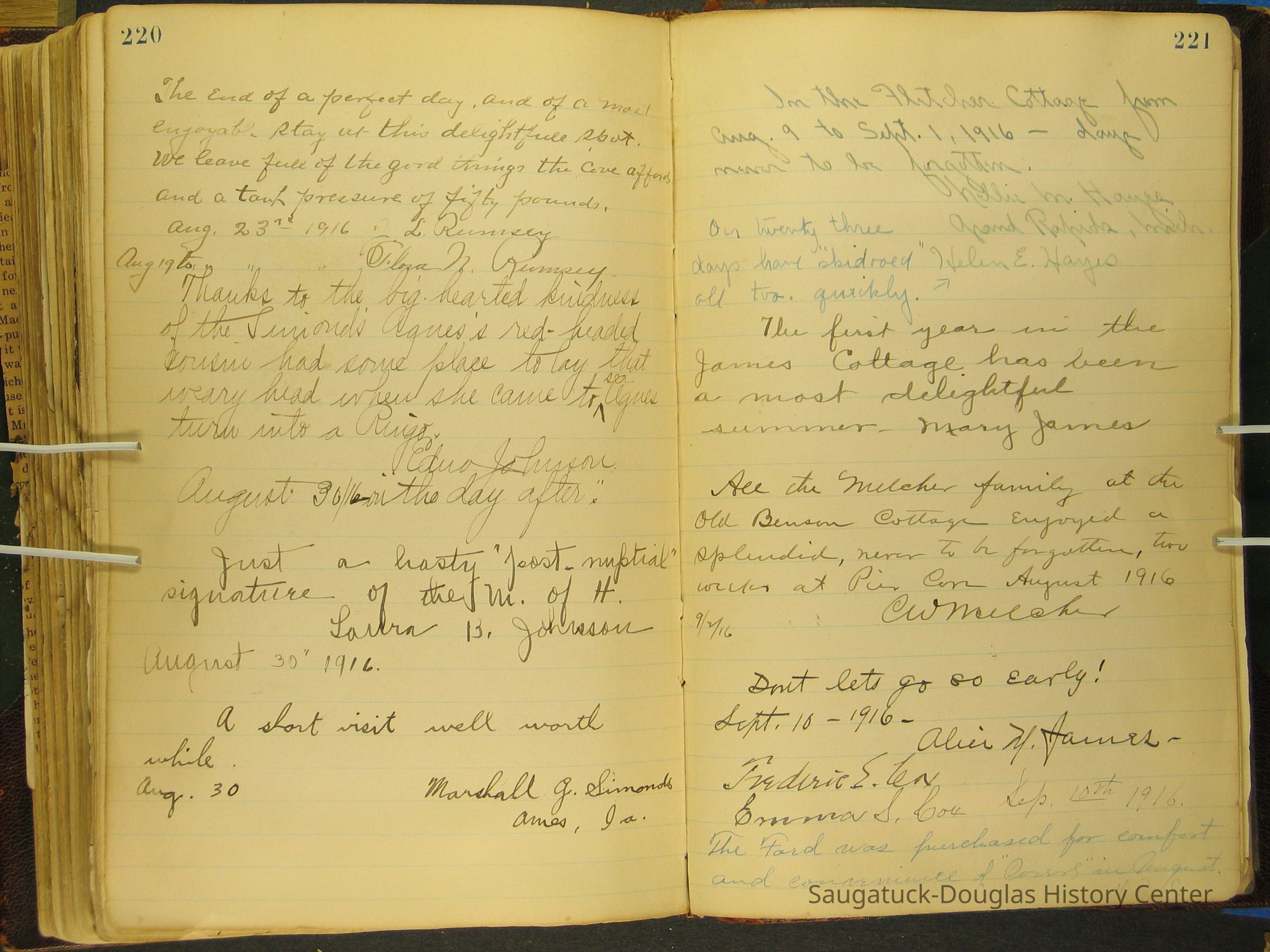 Photos of Pier Cove locations, cottagers and their activities plus notes, poems, newspaper clippings and sentiments written by guests, family and neighbors.Collection