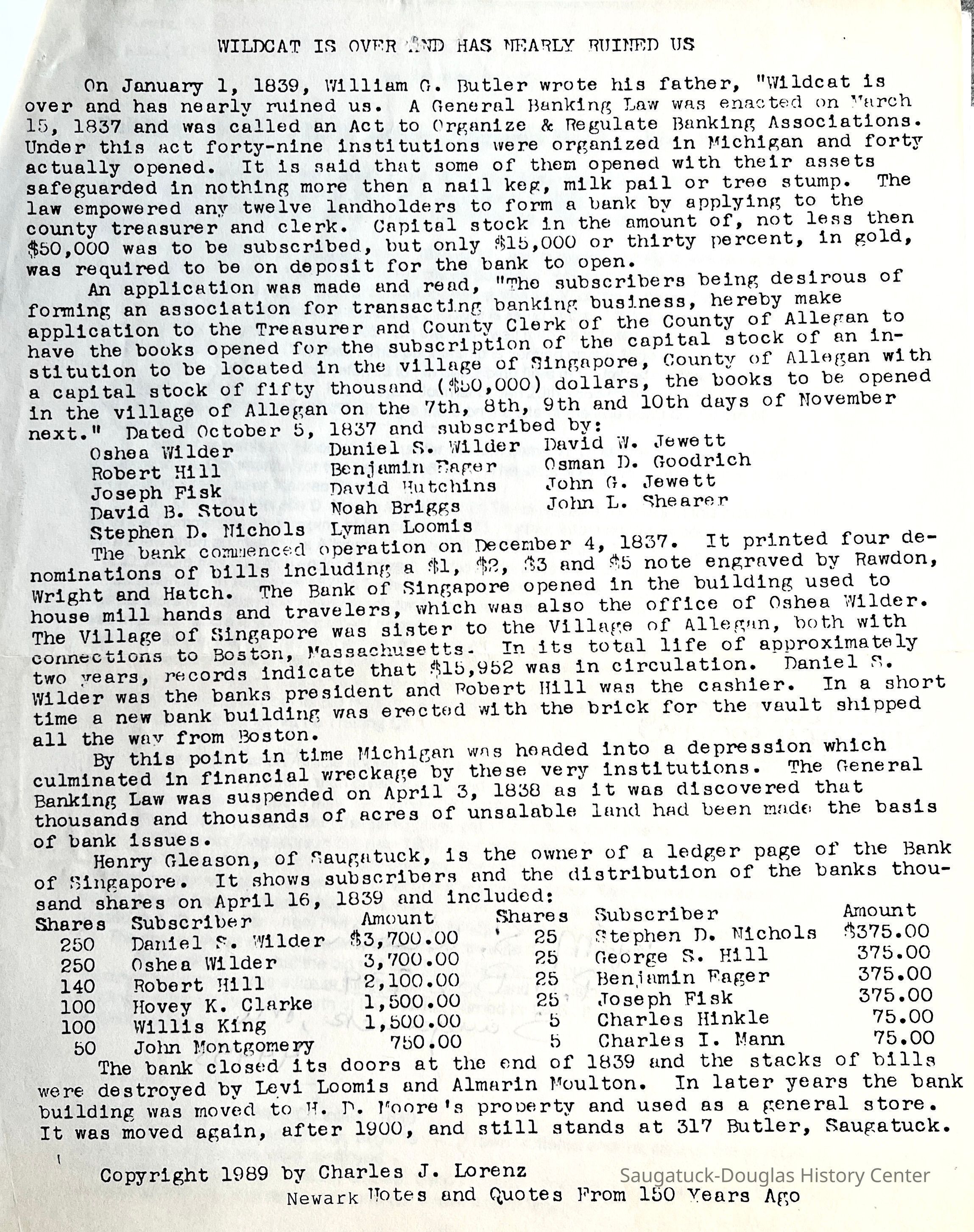 Notes: Most of the unused banknotes were destroyed when the bank closed in 1839. This sheet (and others) were saved by John A. Vary and given to F.F. Luther, a Grand Rapids Banker. He passed it on to LorenzCreate Date