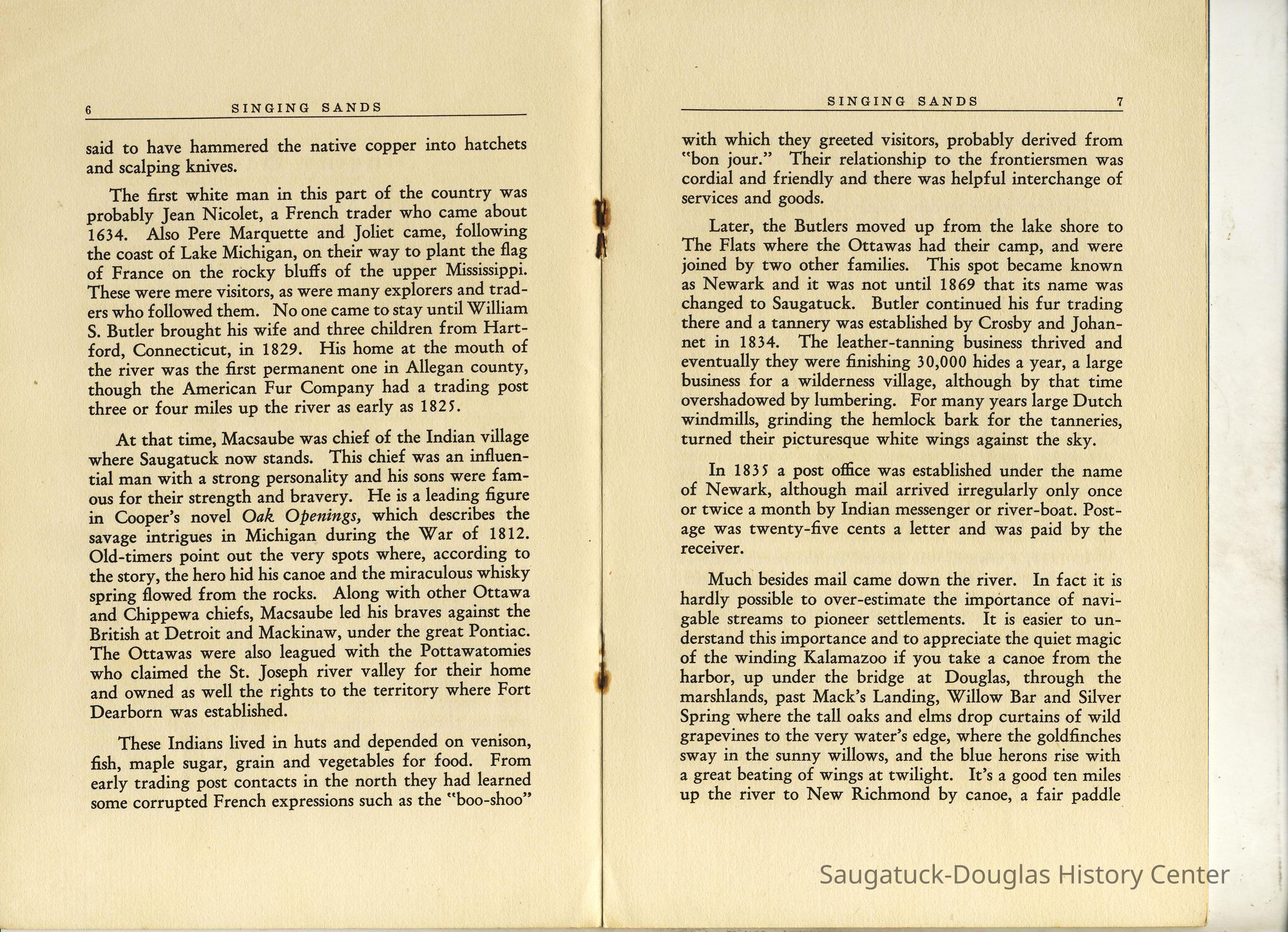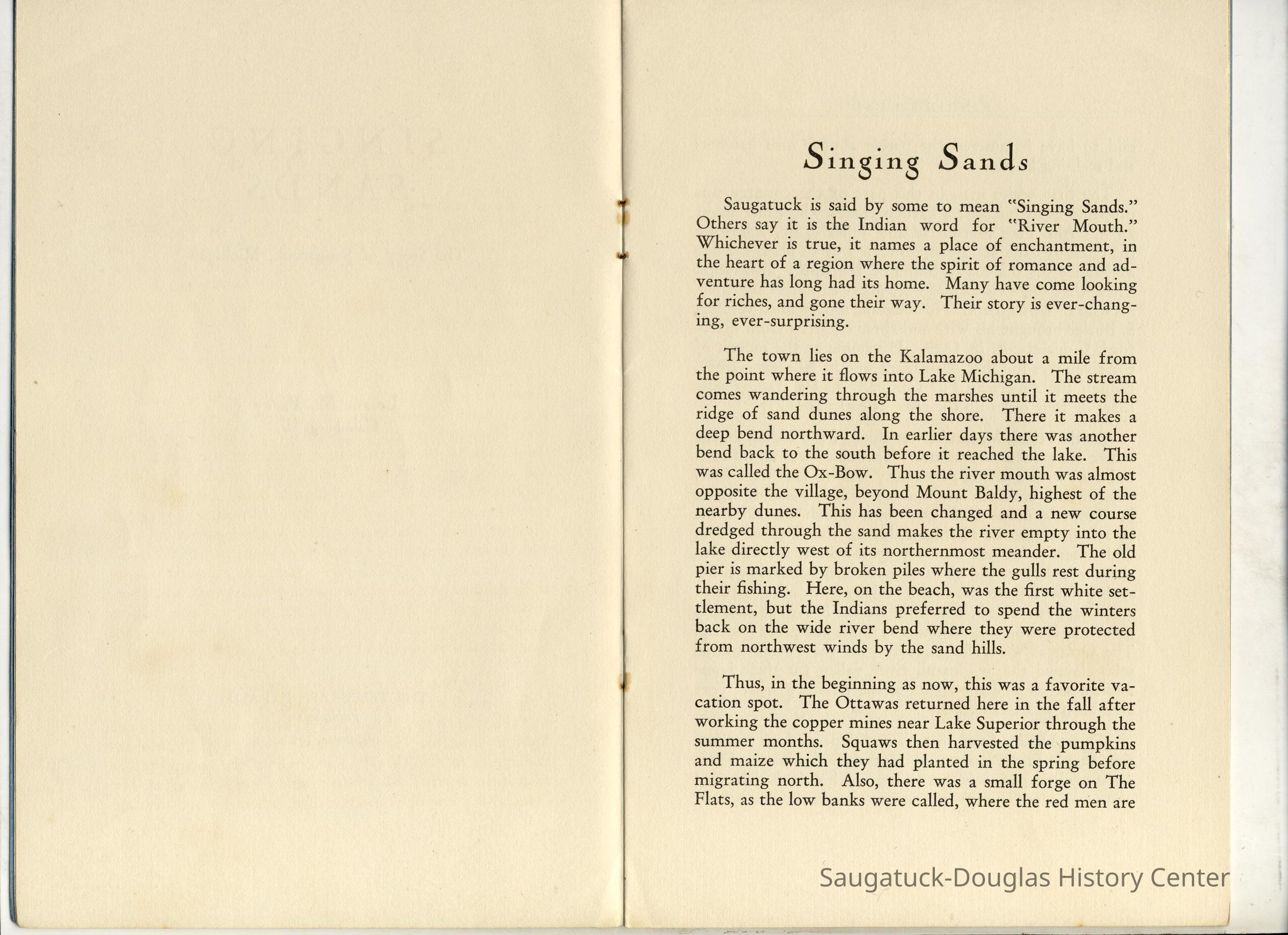 Saugatuck History booklet, Singing SandsLocation