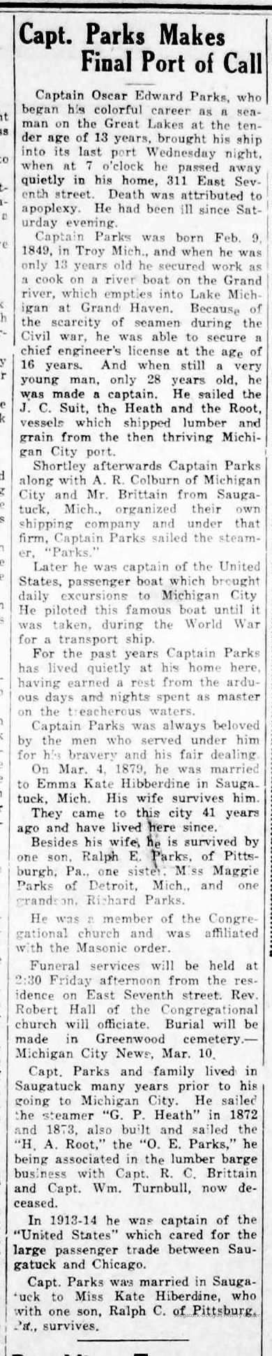 3. Oscar Parks - captain on H.A. Root [and many other ships, obit below]