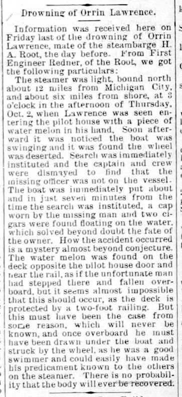 5. Orrin Lawrence - mate on H.A. Root [drowned October 1890, obit below]