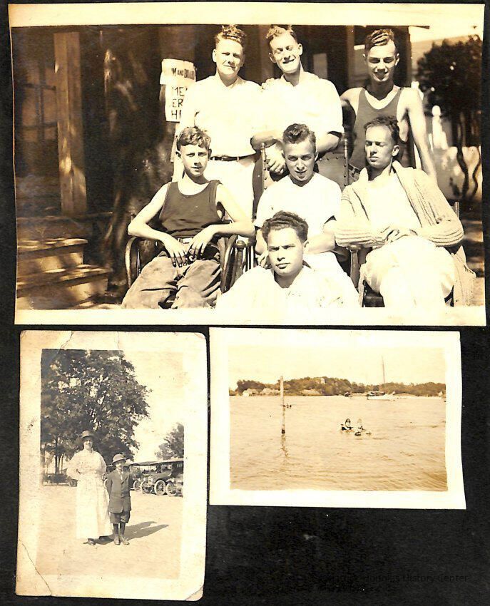 Includes photos of horses, fishing, farming, swimming, recreation, friendship, children, teens, automobiles, groups of people posing for the camera, buildings, on Mt. Baldhead, playing on the beach in the sand, Taylorville, barns, houses, dogs, and World War I-era men in uniform or at camp.Collection
