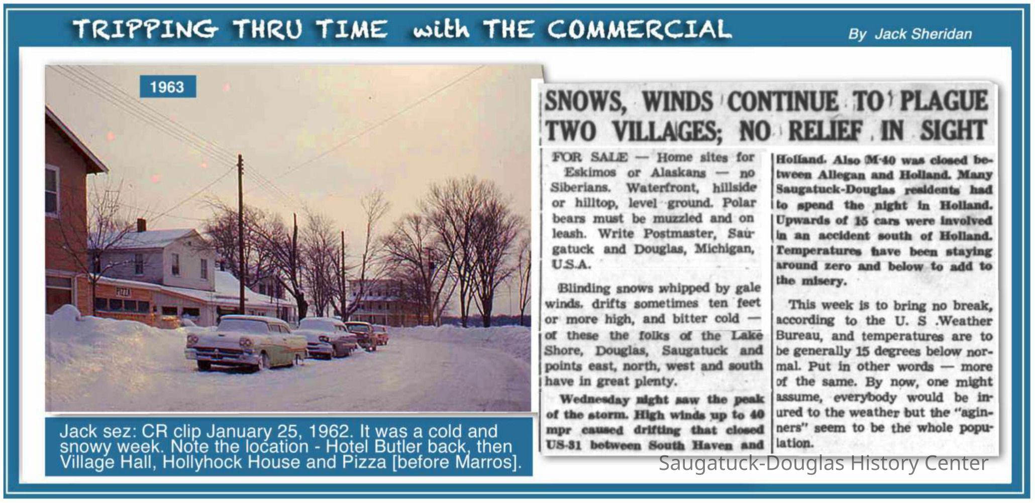 141 Butler/Sand Bar Saloon/Edson Crow Barbershop & Billiard Parlor, 120 Butler/Brick & Ivy/120 Butler/Kollen Country Store Antiques, 201 Culver/New Holland Spritis/Shell/Force's Snug Harbor/Interurban Station/Morrison general store, 40 Butler/Hotel Butler/Grist Mill/Haymarket/Dutch windmill, Saugatuck Fruit Exchange 1917-1956, Butler Street