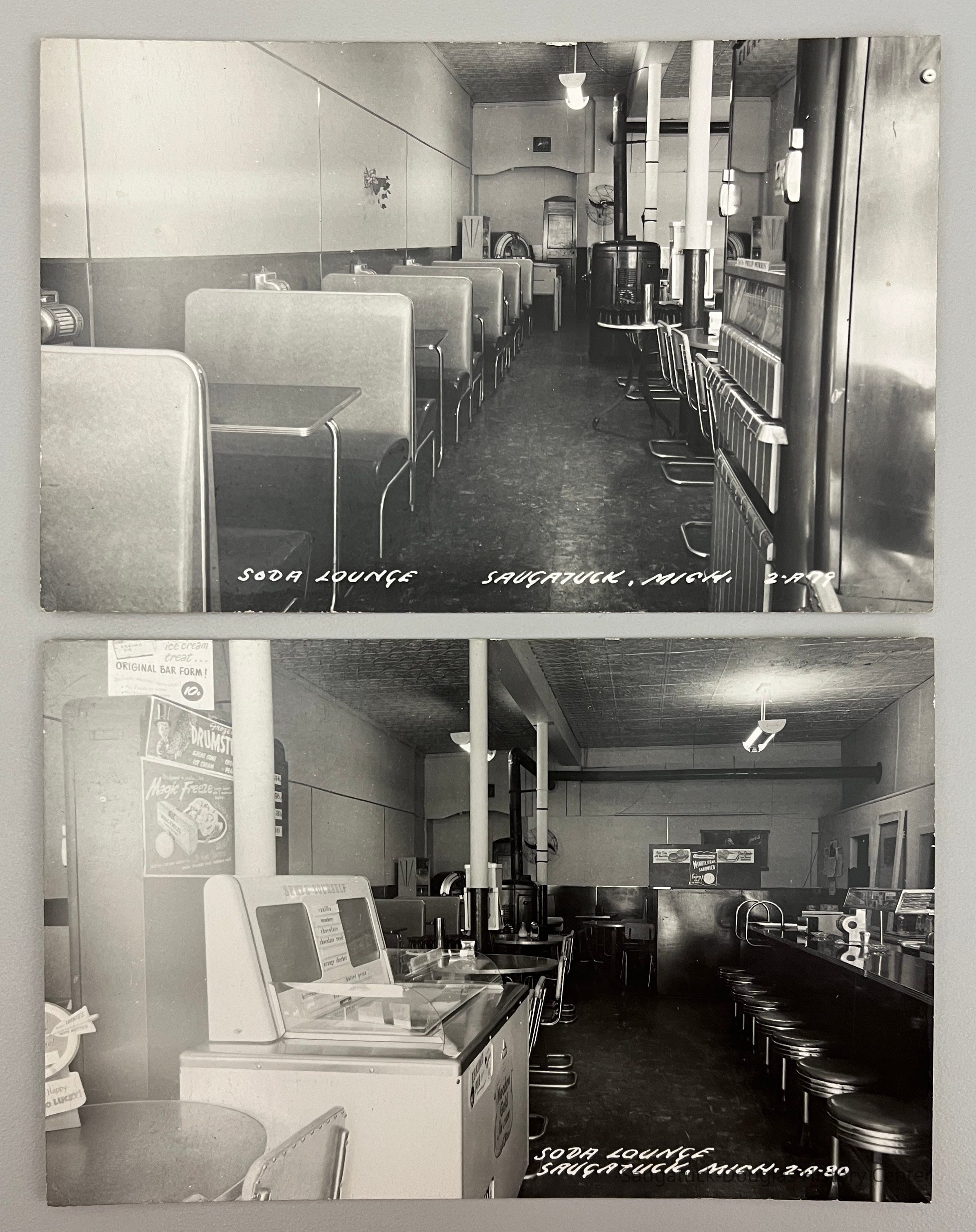 Two photographs (postcards) of the Soda Lounge interior. Located on Butler Street in SaugatuckCollection