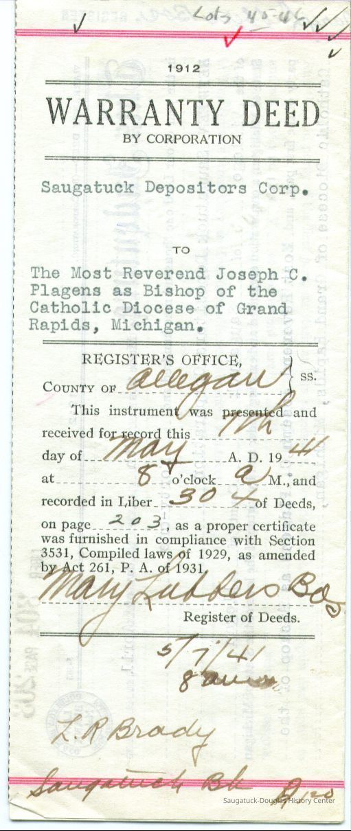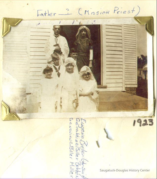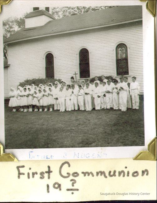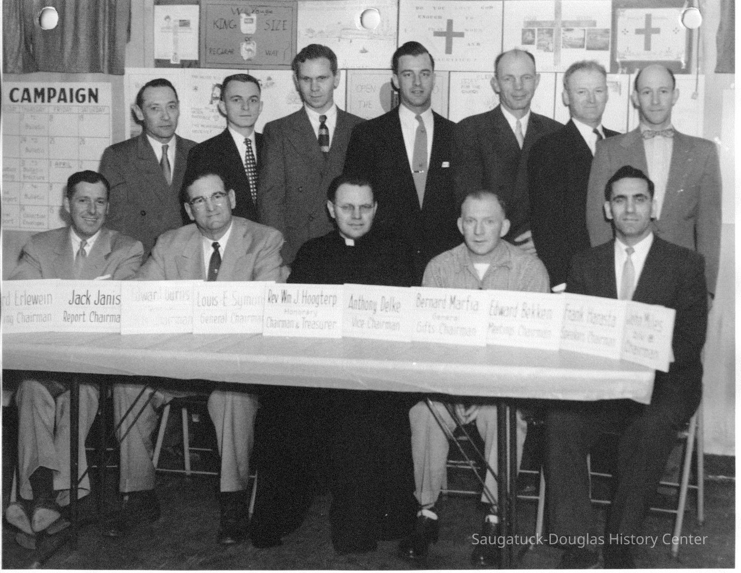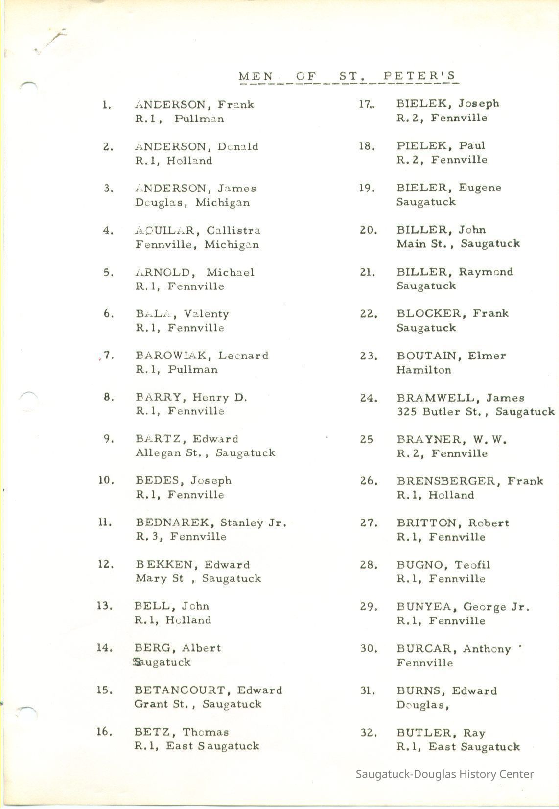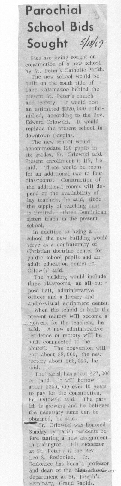 CD containing 164 files and folders of scanned photos and documents. The images include color and black-and-white photos of church buildings, priests, weddings and community supporters plus newspaper clippings, correspondence, budgets, fundraising totals, press releases, a "Men of St. Peter's" directory and deeds. A representative collection of the images have been included in this entry. Some images on the CD are duplicates.Photograph Details