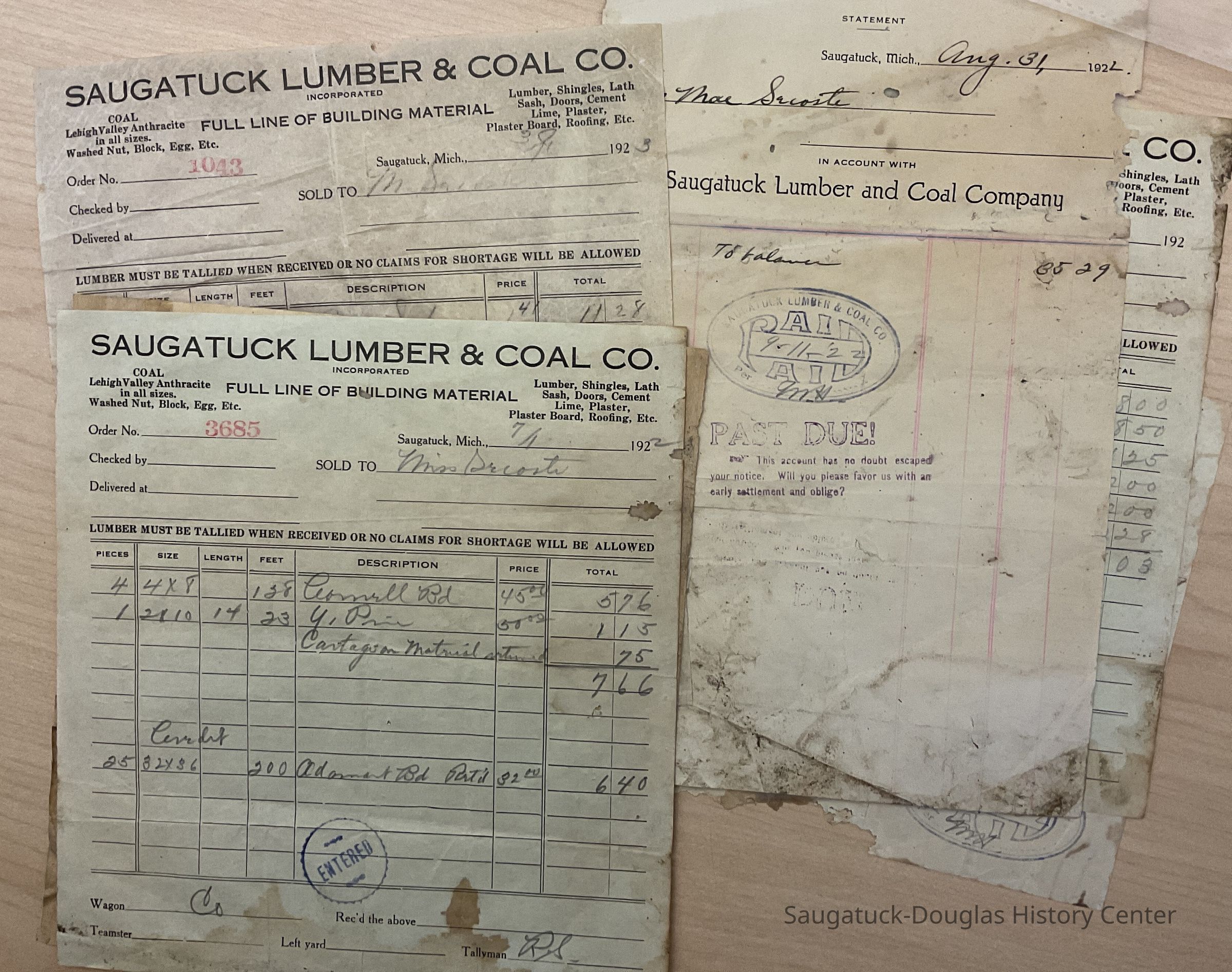 Five Saugatuck Lumber and Coal Co. Bills and statements.Collection