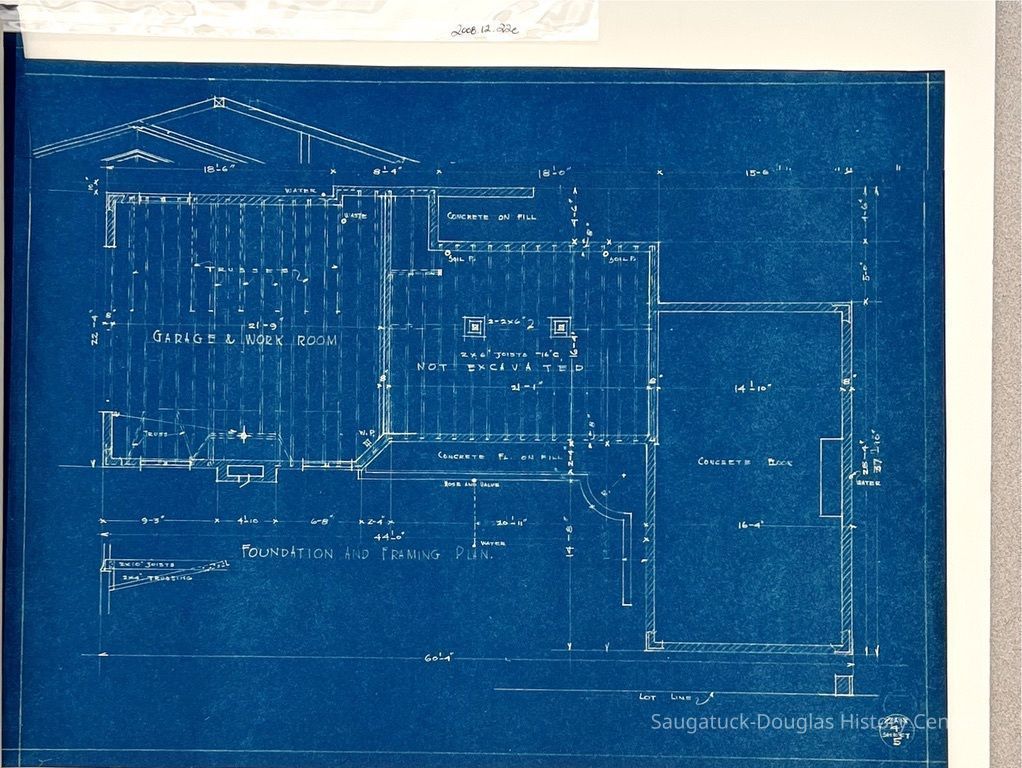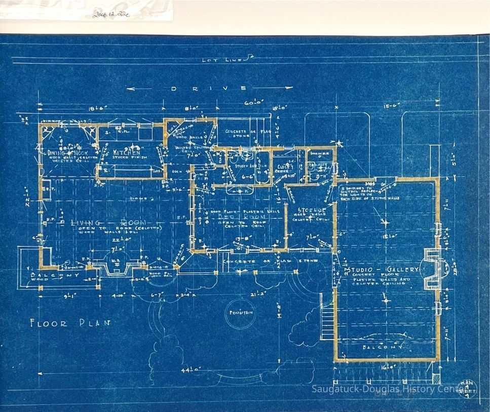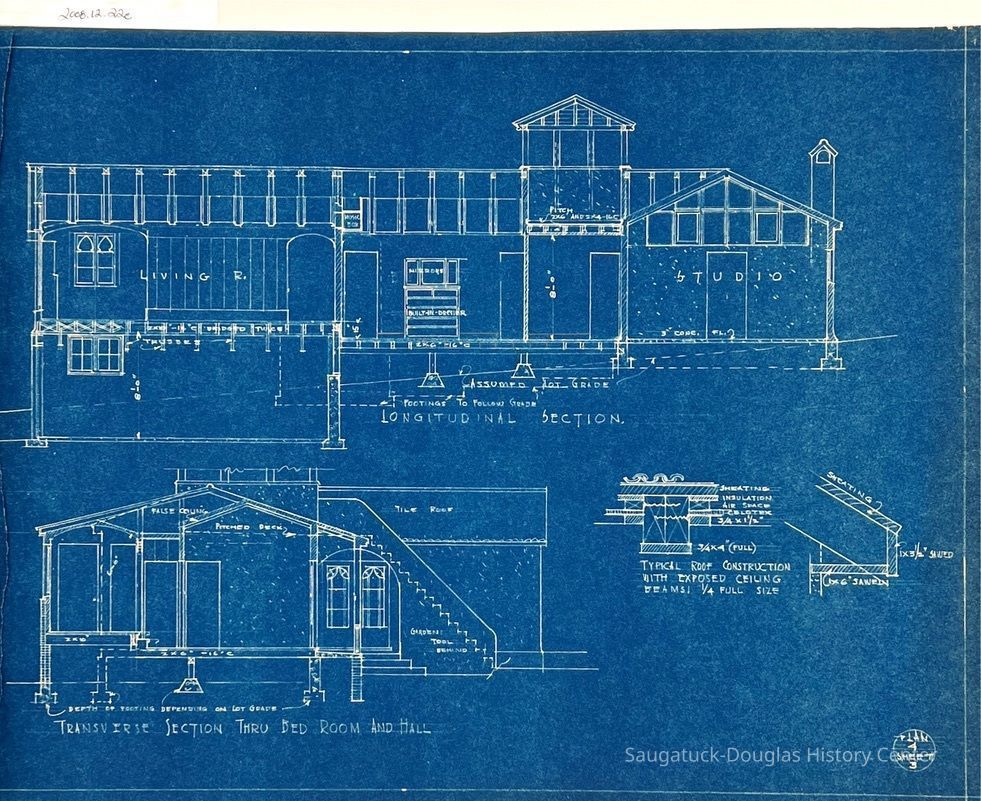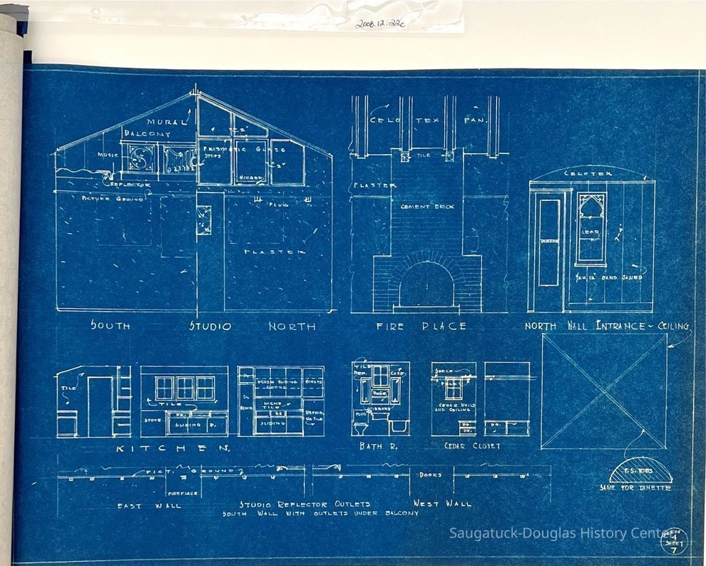 This blueprint booklet consists of six pages, page 2 is missing. Each page features detailed drawings for the studio/residence. They include measurements and some materials to be used in the building . This is Plan #4 of this studio/residence.Collection