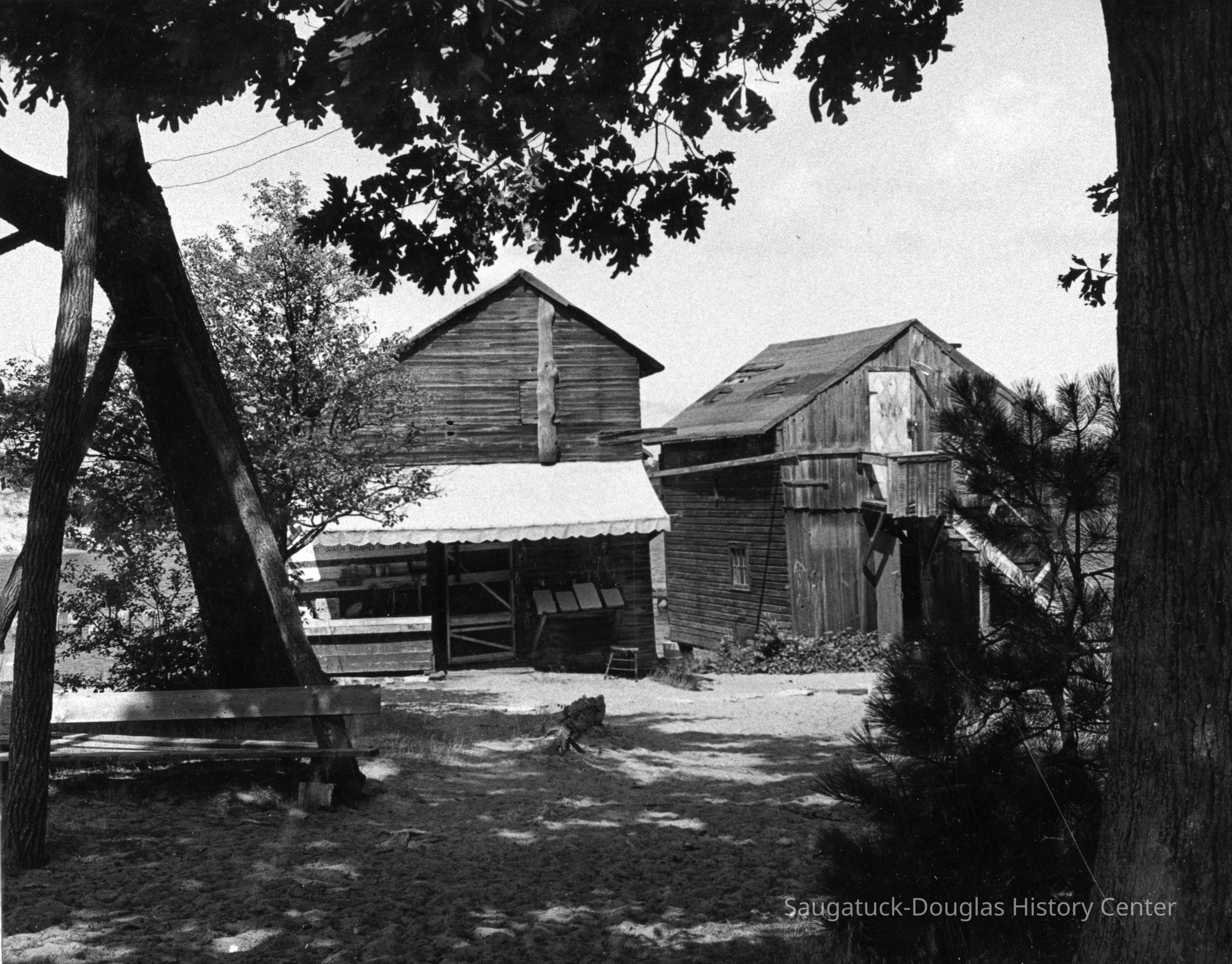 Color-tinted, matted b/w photo by Bill Simmons of two former fishing shanties/ice houses that were converted into artist's studios.Photograph Details