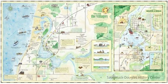 “SuperMap” is a 6-foot high, 12-foot wide illustrated color wall map of the Saugatuck-Douglas area integrated with a computer display to provide a virtual tour through the historic villages, highlighting significant people and places, past and present.