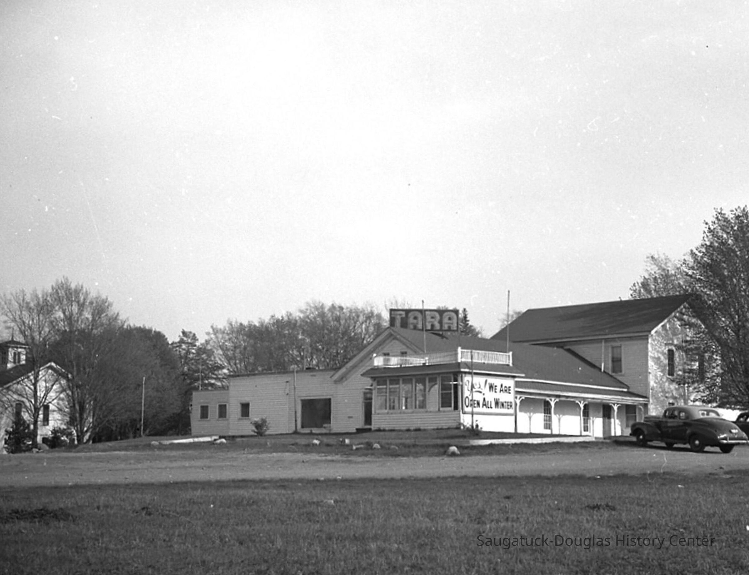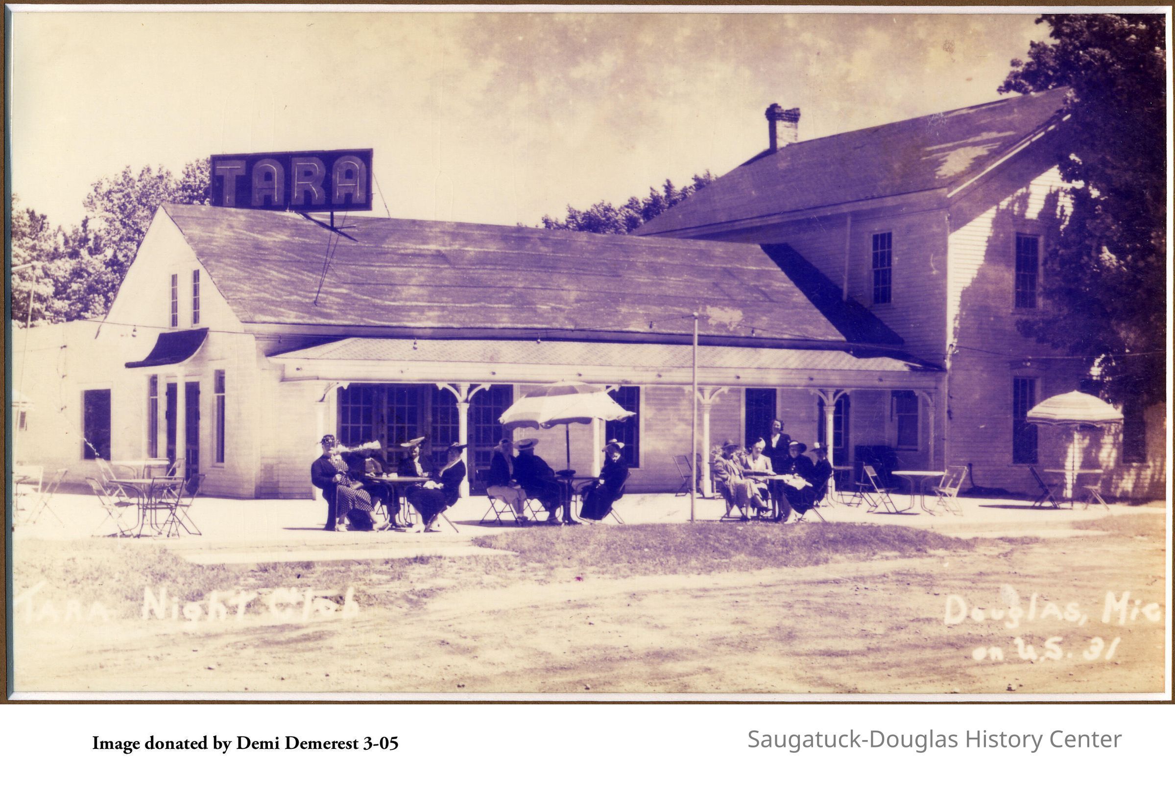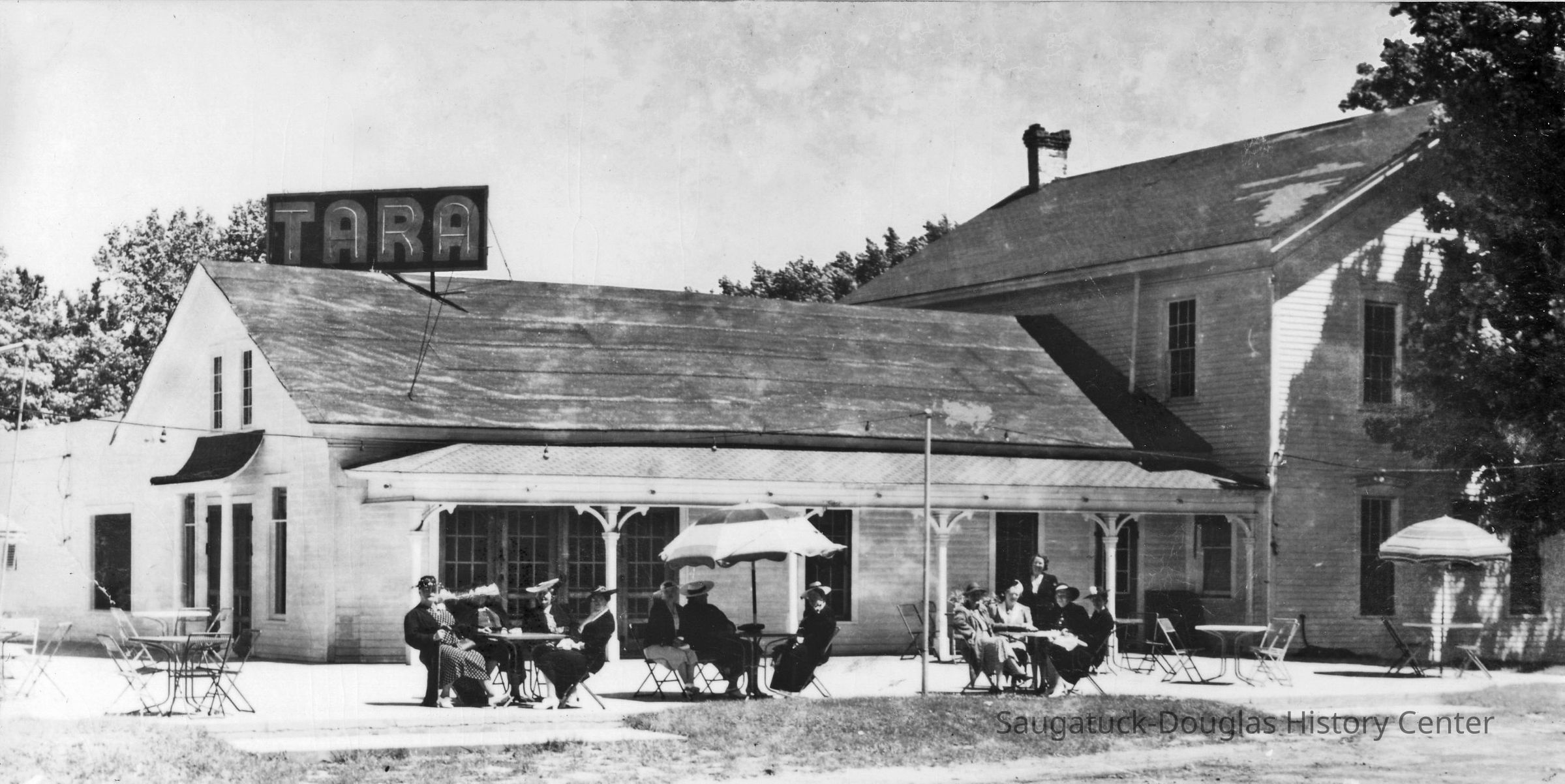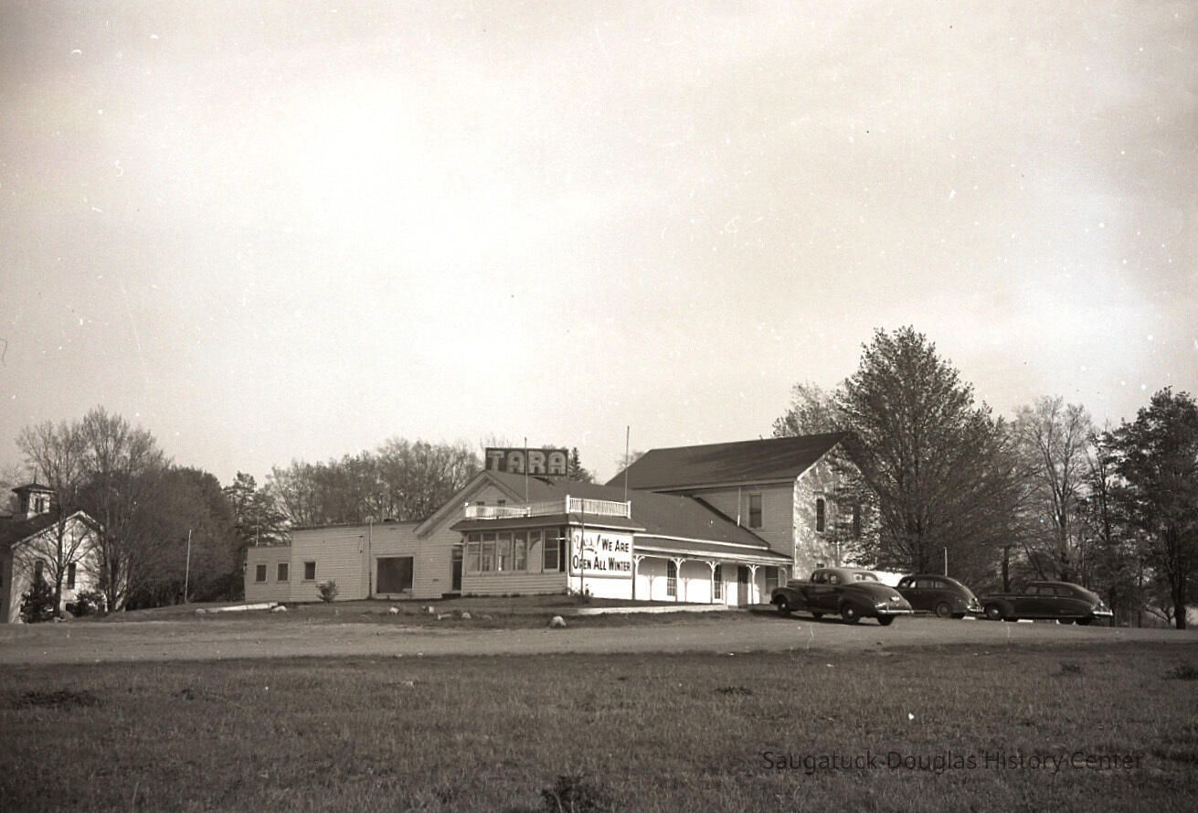 It was one of few establishments in Saugatuck-Douglas allowed to sell liquor. Over time, ownership switched from Charles to Fred Koning and then to Del Herrold. In the history of Saugatuck-Douglas as a big place for music and dance, the Tara became one of the area’s hottest night spots—a bit of a rival for the more famous Big Pavilion “Dock Bar,” and the “Crow Bar” in the Coral Gables in Saugatuck. In 1943 the Tara billed itself as the place where “dancing is a real thrill when the music is played by Charlie Fischer and his Band.” This is what happens when a farming village becomes a resort town.