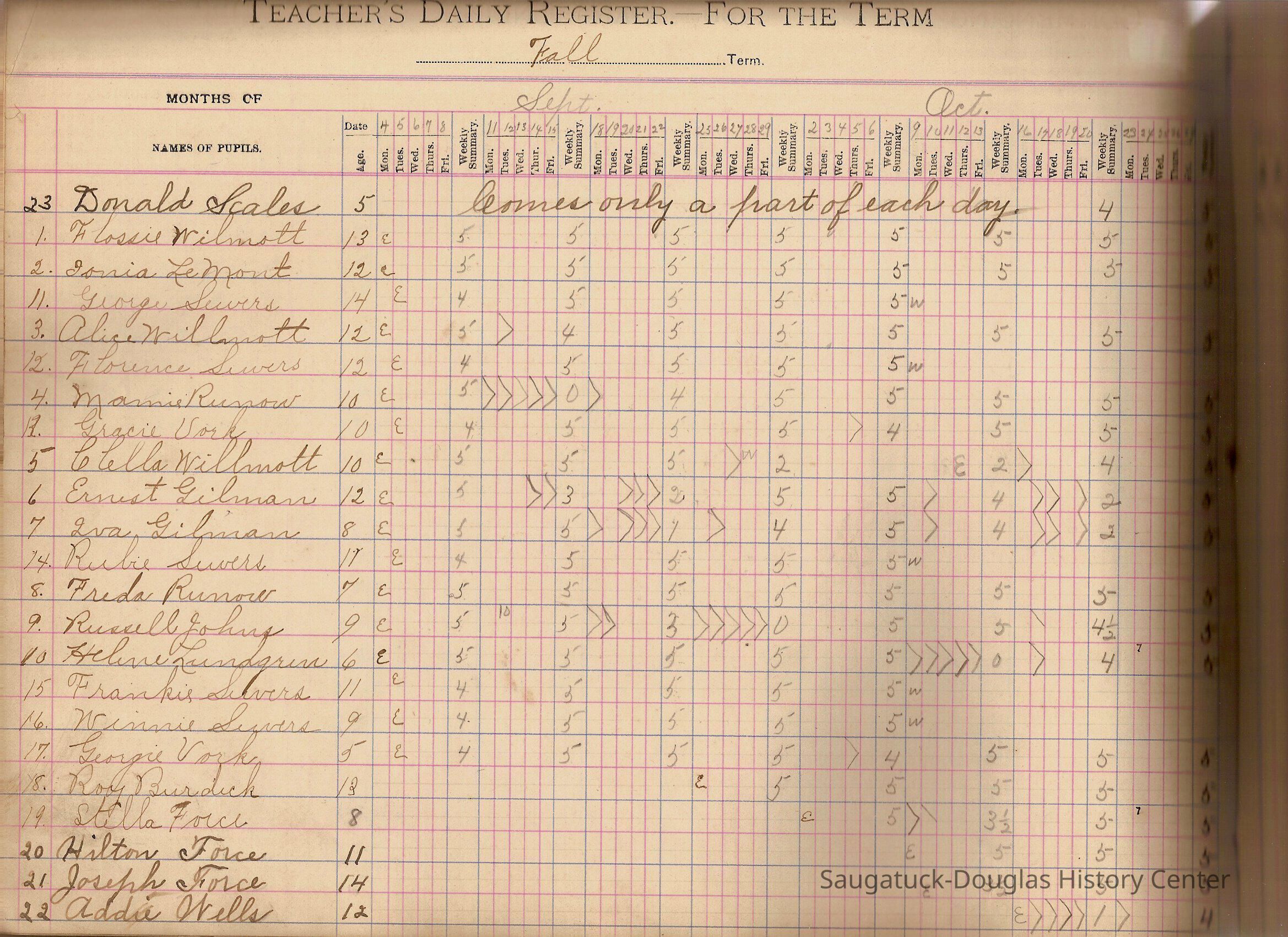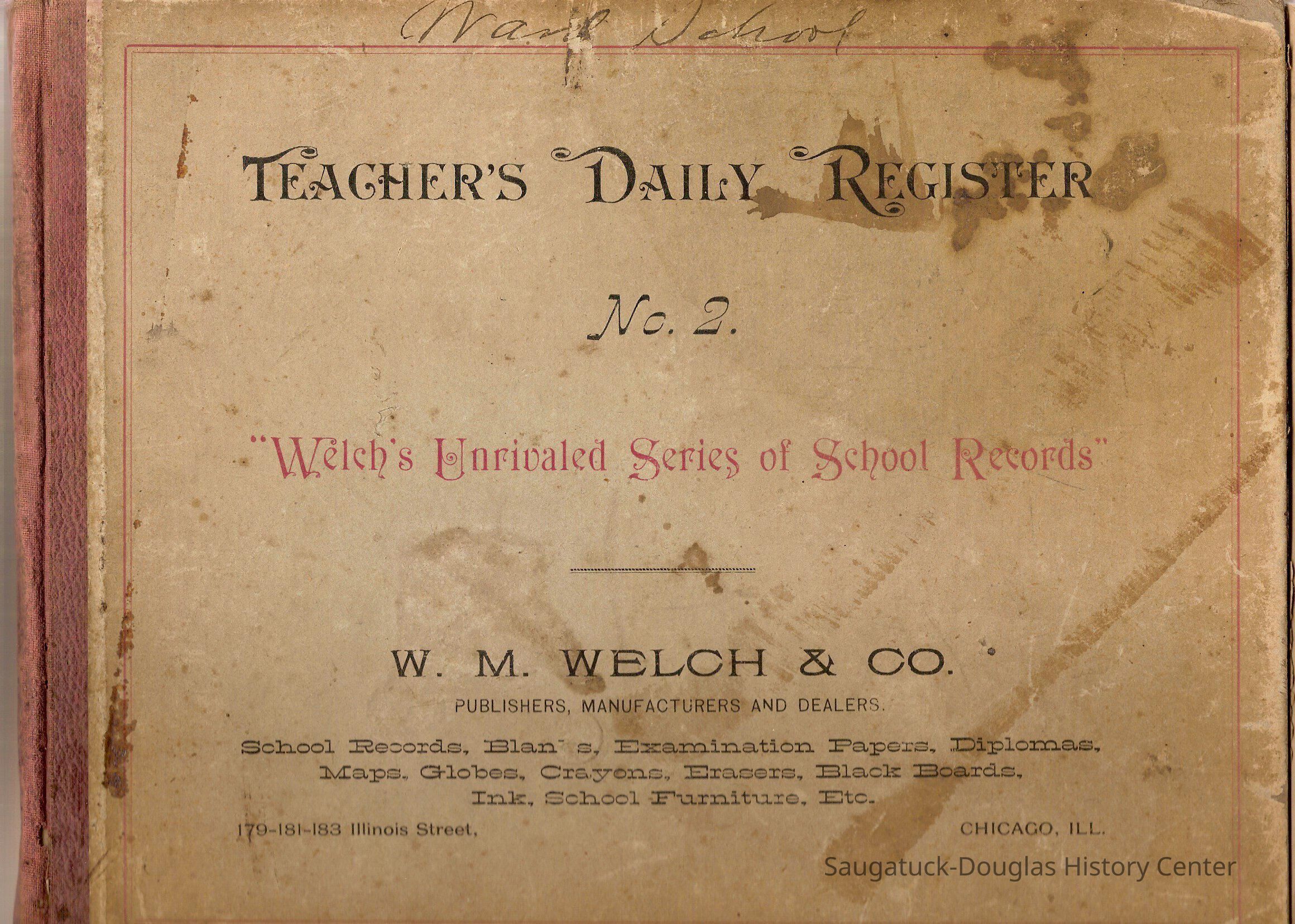 Teacher's Daily Register - a record book for keeping information about student attendance, etc. Includes a Saugatuck Public Schools blank monthly report.Collection