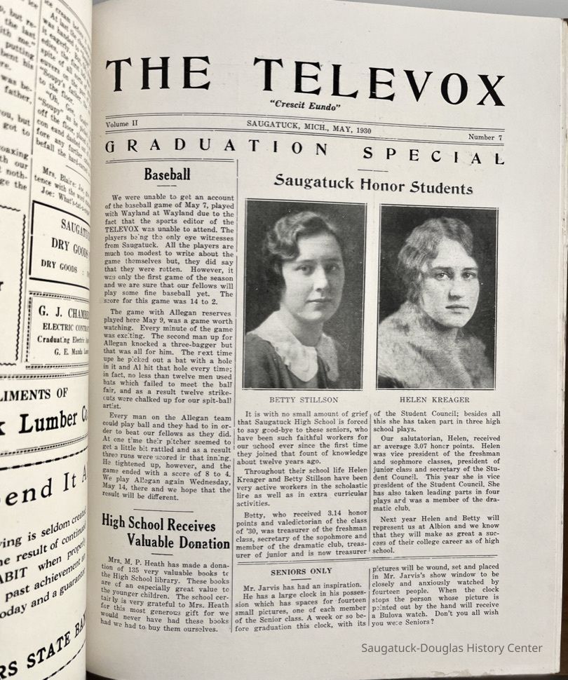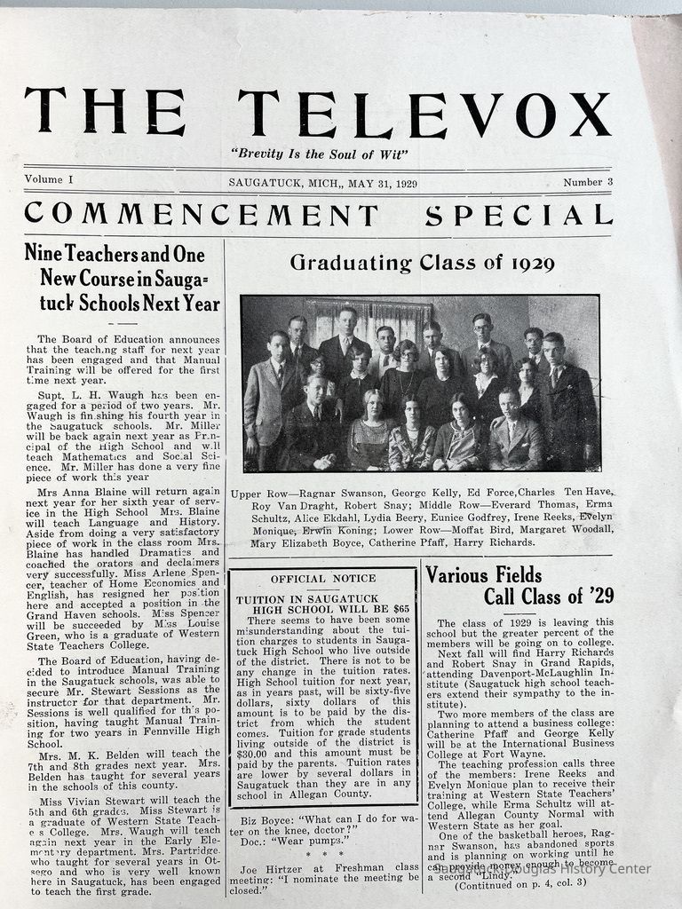 Hirtzer, Joseph, Saugatuck Public School 1897-1950, Ten Have, Charles W. 1911-1981, Van Draght, Roy, Thomas, Everard "Ev" D. 1912-2004, Schultz, Erma