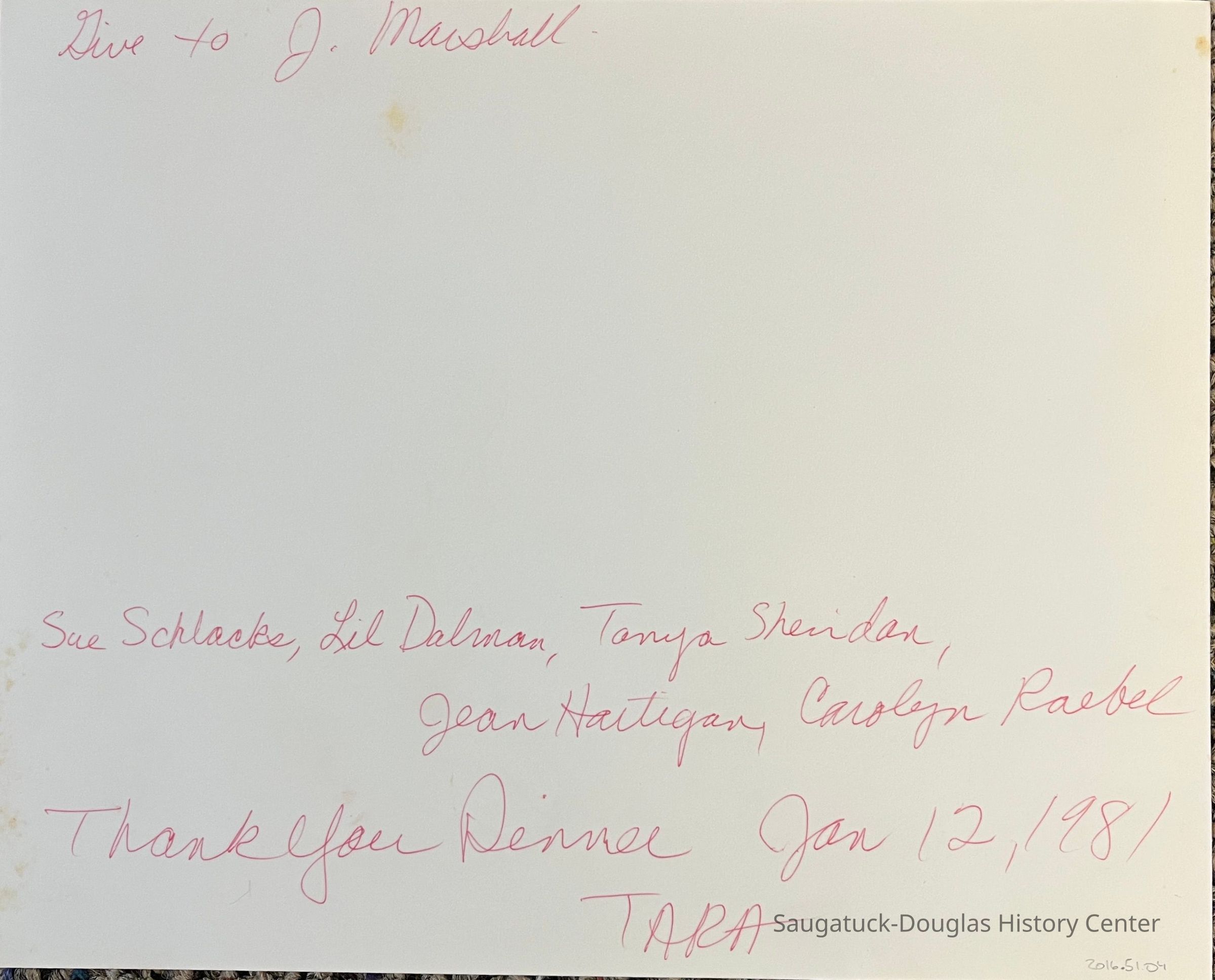 Thank You Dinner 1981Entry/Object ID