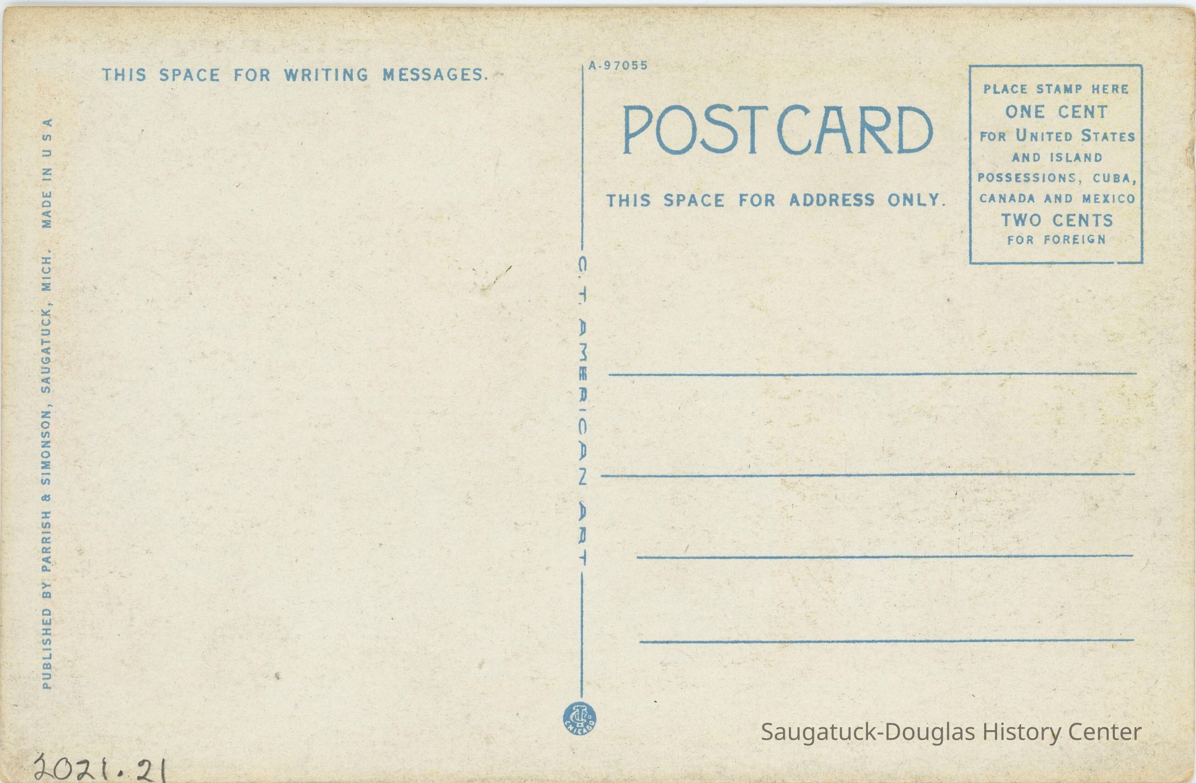 Parrish & Simonson postcard publisherDate Published