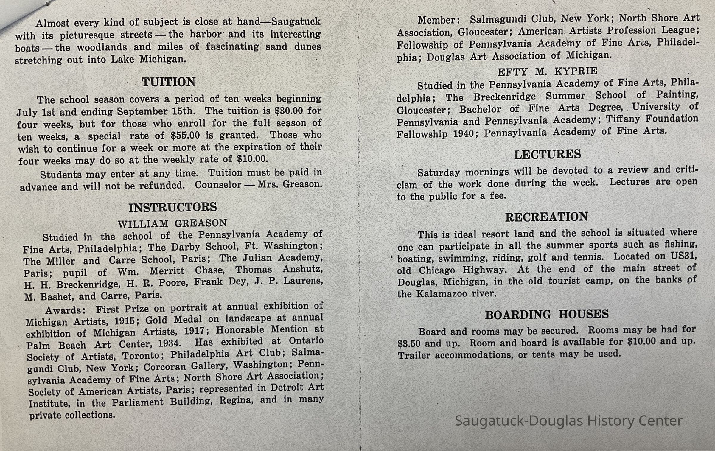 Greason Summer School of painting brochure, Art colony, art in DouglasArchive Details