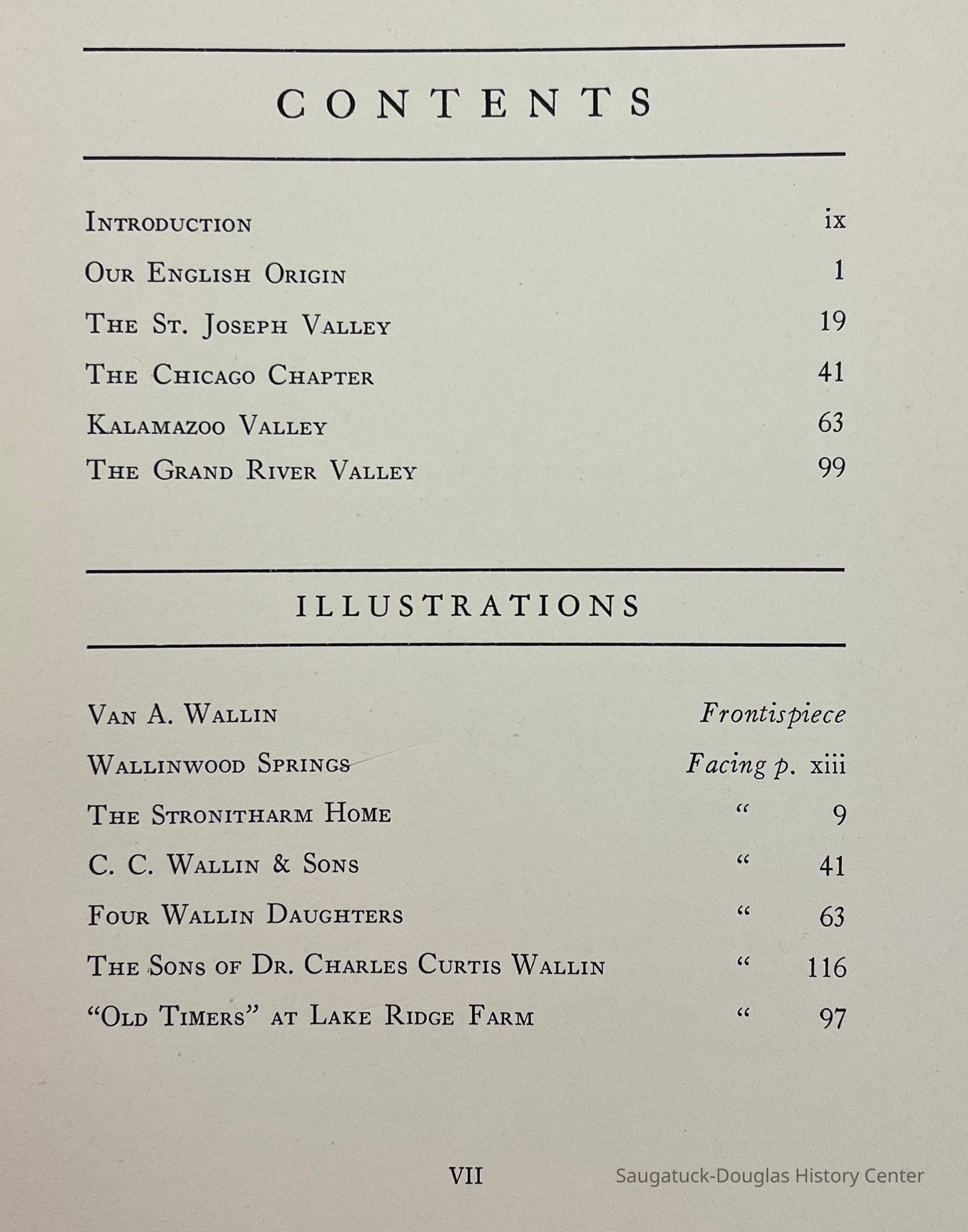 A copy of the book was given to the Society by Frances (Wallin) Shaw of Grand Haven.