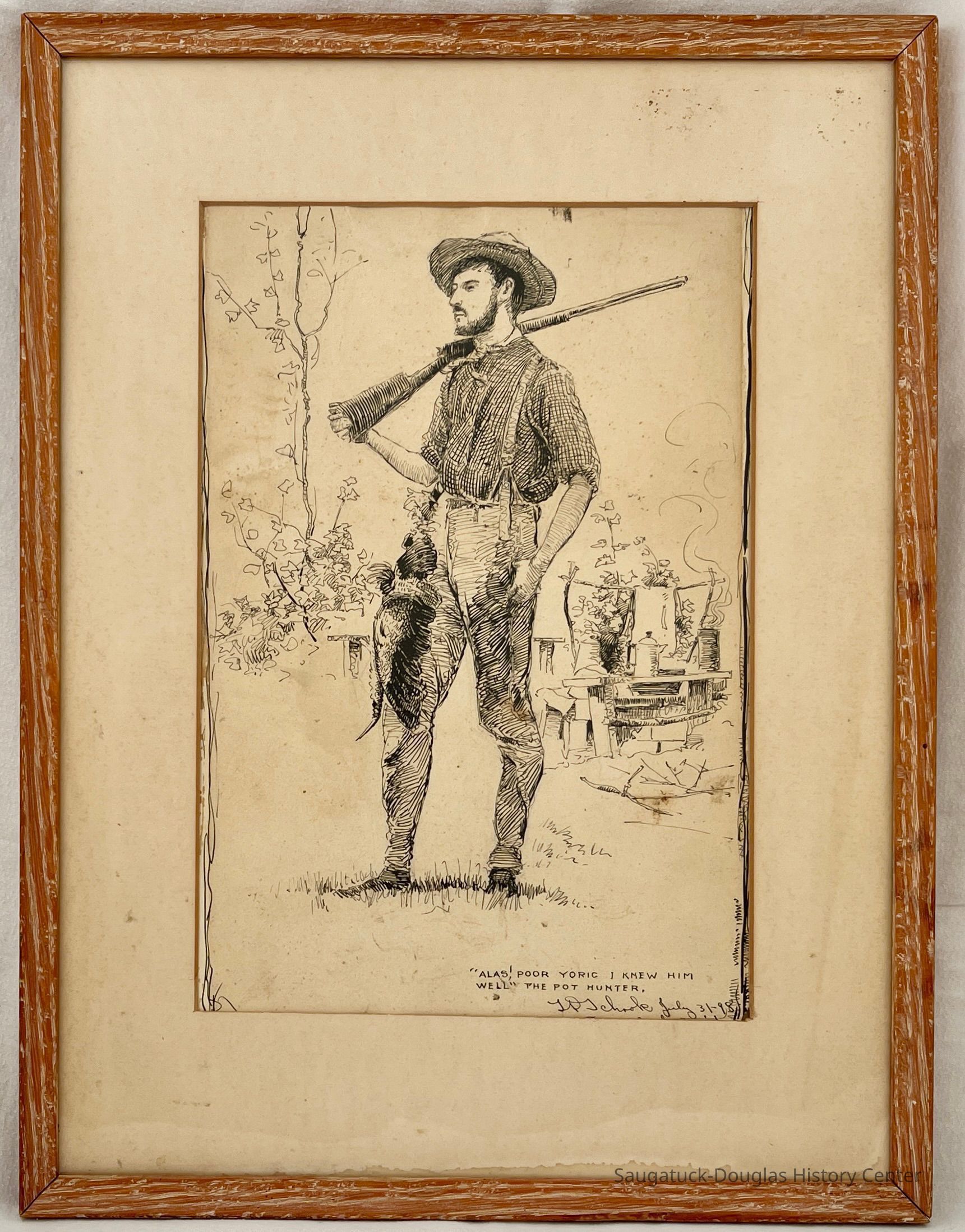 This pen and ink drawing signed and dated by "F.D. Schook, July 31--98, Saugatuck, Mich" is the oldest known work from the Art Coast of Michigan.