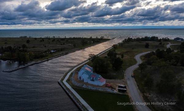 A lighthouse was also built at the mouth of the Kalamazoo River in 1837 and 1838, and served to illuminate the lake in the area. But the flow of the river drifted to the north, undercutting the lighthouse foundation and causing it to topple over around 1859, according to the book “The Early History of Saugatuck and Singapore, Michigan 1830-1840,” written by Charles J. Lorenz.