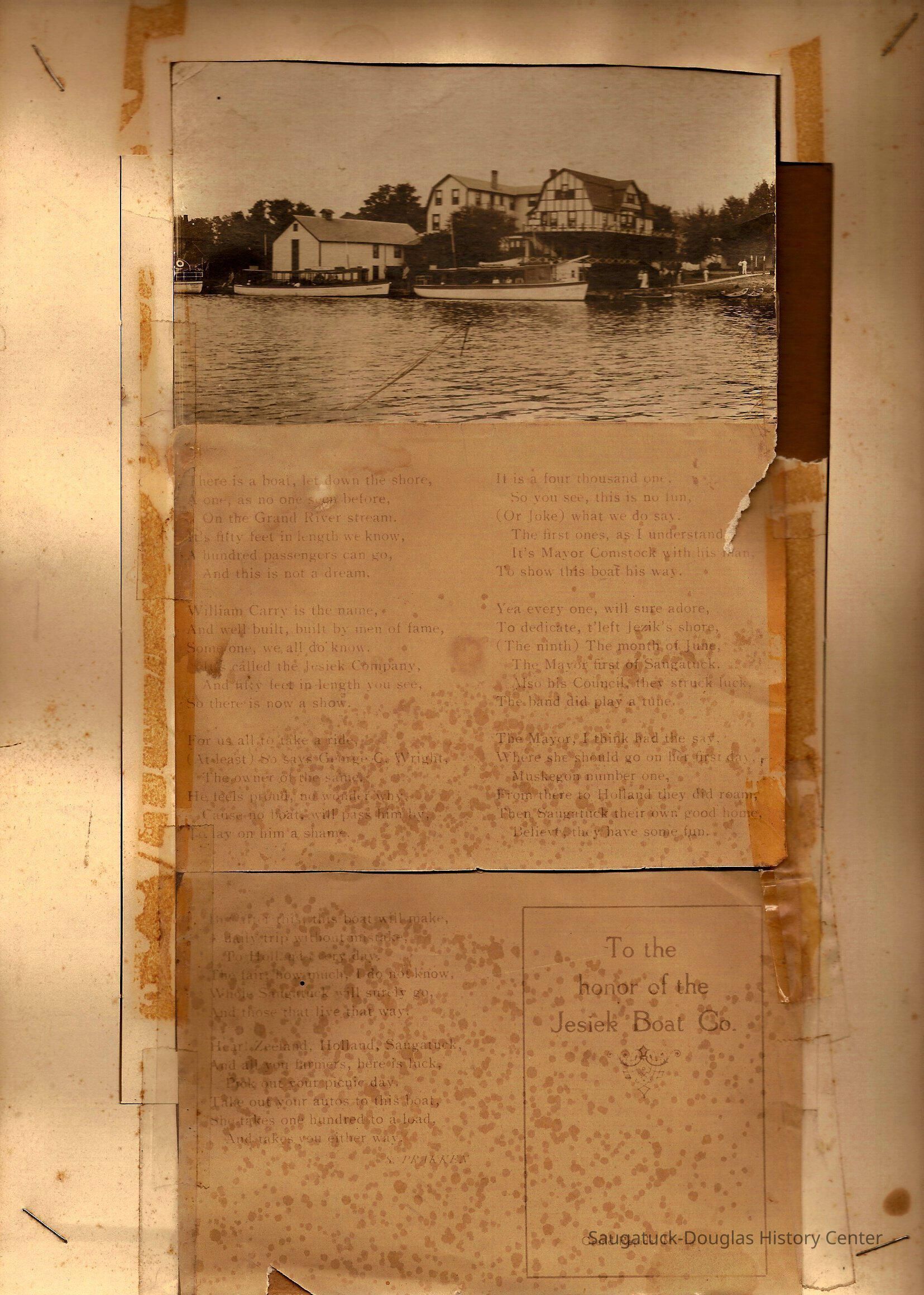 Poem is spotted and fading fast with cellophane tape attached to it. Both are affixed to cardboard.