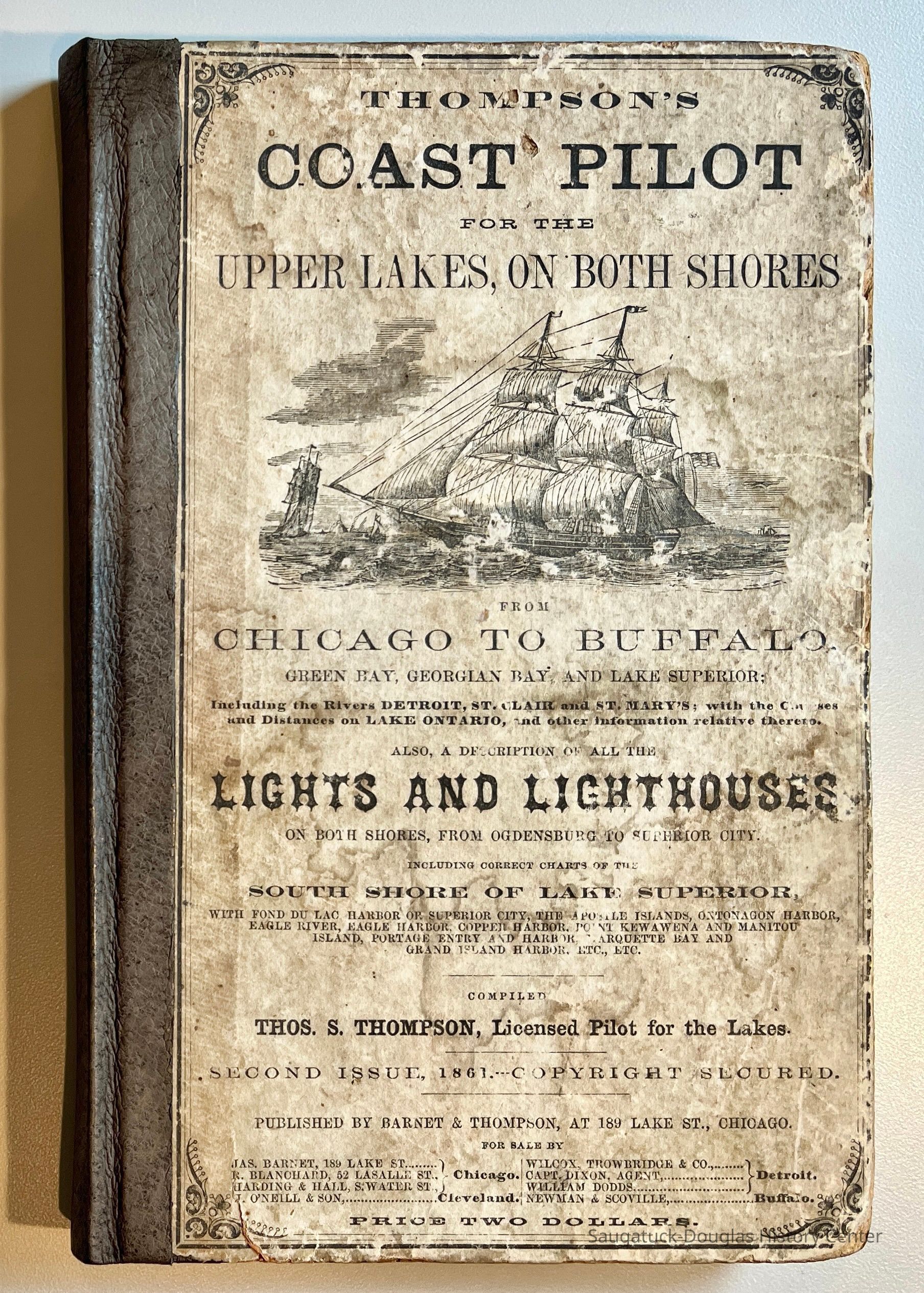 Charles McVea is written in pencil on the inside cover of this book which gave vital navigational information to Great Lakes captains. This humble book cost $2 in 1861, which is the equivalent of $70 in 2024Collection