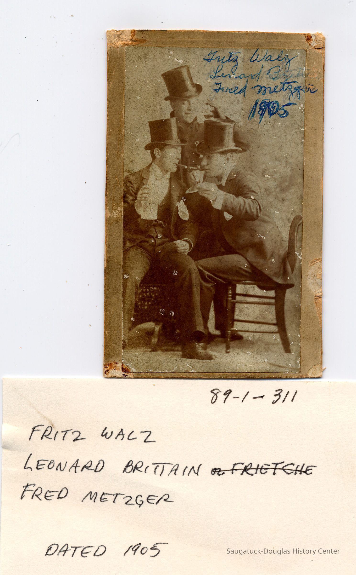 Fritz Walz, Leonard Brittain, Fred Metzger, dated 1905.