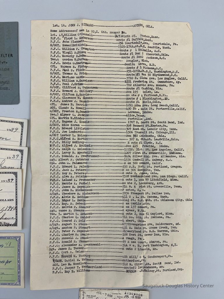 Typewritten list of soldiers addresses from Company C., 6th Ranger ?Dn., Durham is ranked a Tec.4