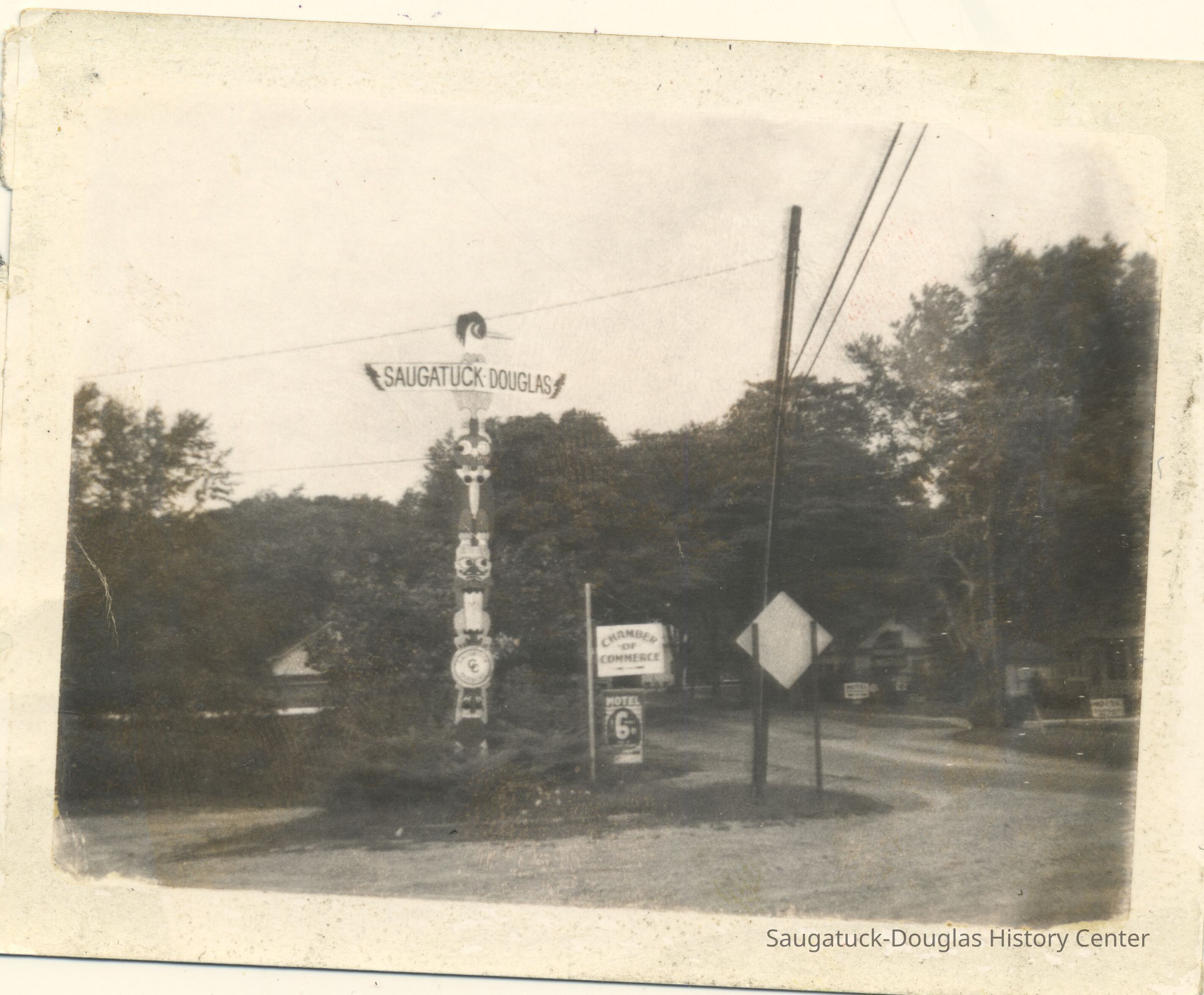 This wooden structure once stood at Saugatuck’s Lake Street entrance, grabbing the attention of passing motorists as they drove along Blue Star Highway.