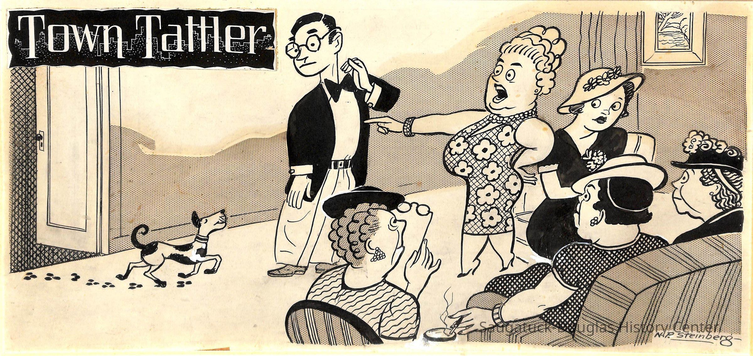 Separate title block "Town Tattler" pasted in upper left corner. Artists signature N.P. Steinberg in lower right corner.Type of Drawing