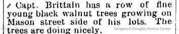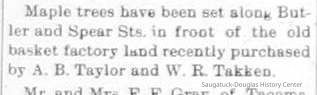 The April 20, 1906 issue of the Commercial-Record announced that "A row of maples had just been planted around the new part of the cemetery." Current sexton Aaron Sheridan helped identify where this was and, as you can see above, these trees have done very well over the past 104 years. The photos were taken from each end of "Lilac Street", with the trees appearing on the north side of the road. In 1906, E. H. House had charge of the cemetery and the 30-year-old Mr. House suggested "that those owning lots will do well to attend to them early so that by Decoration Day our cemetery will be in good order." Good advice for our readers today. -contributed by Chris Yoder, Apr 2010
