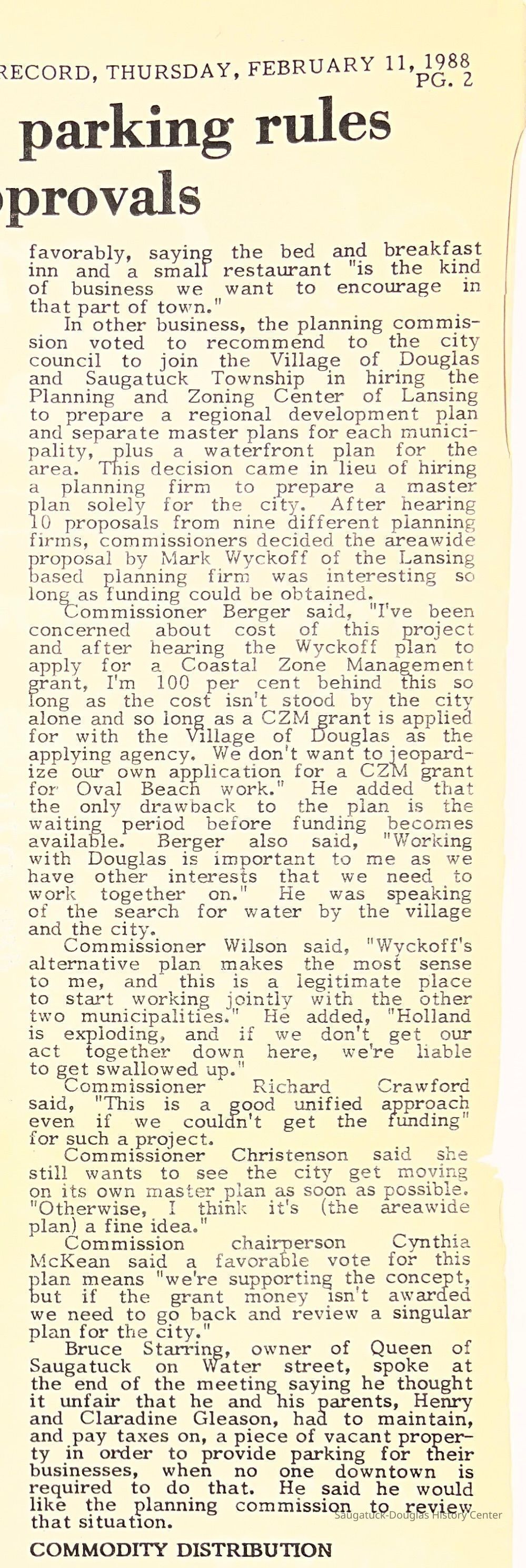 2. "Proposal to the Tri-Community Plan by James Schmiechen on behalf of the Saugatuck-Douglas Historical Society Heritage Committee" - a seven-page document.