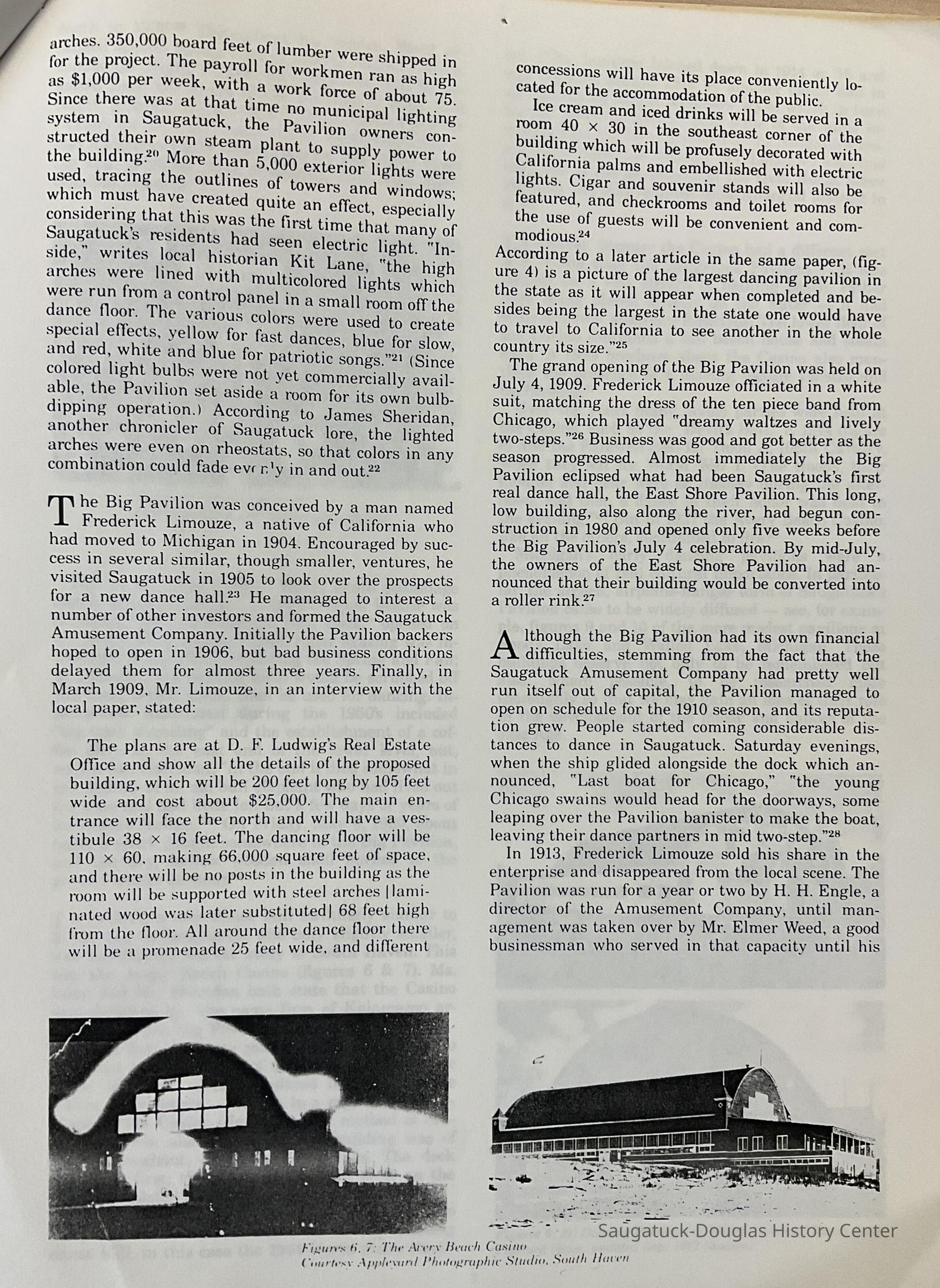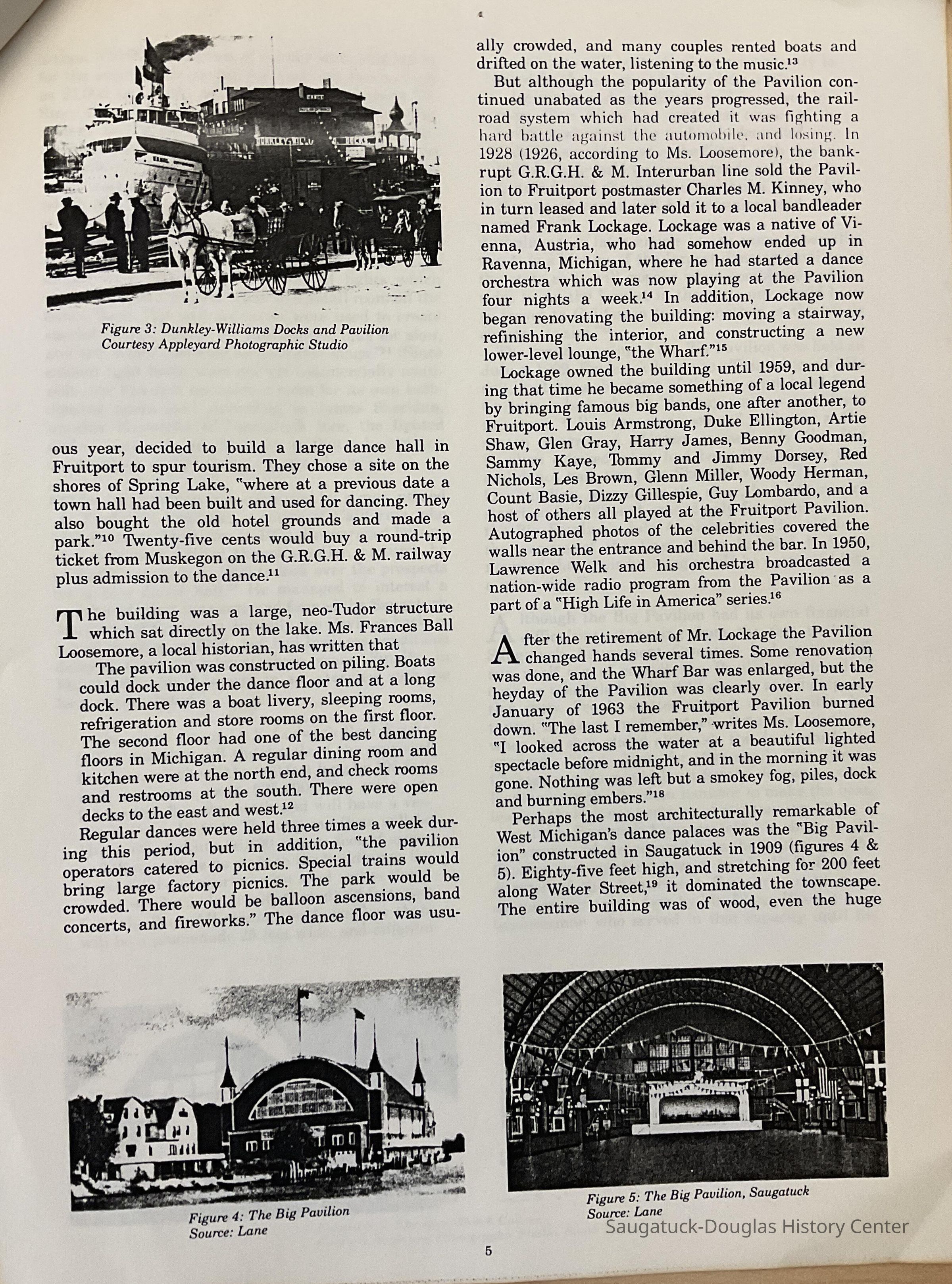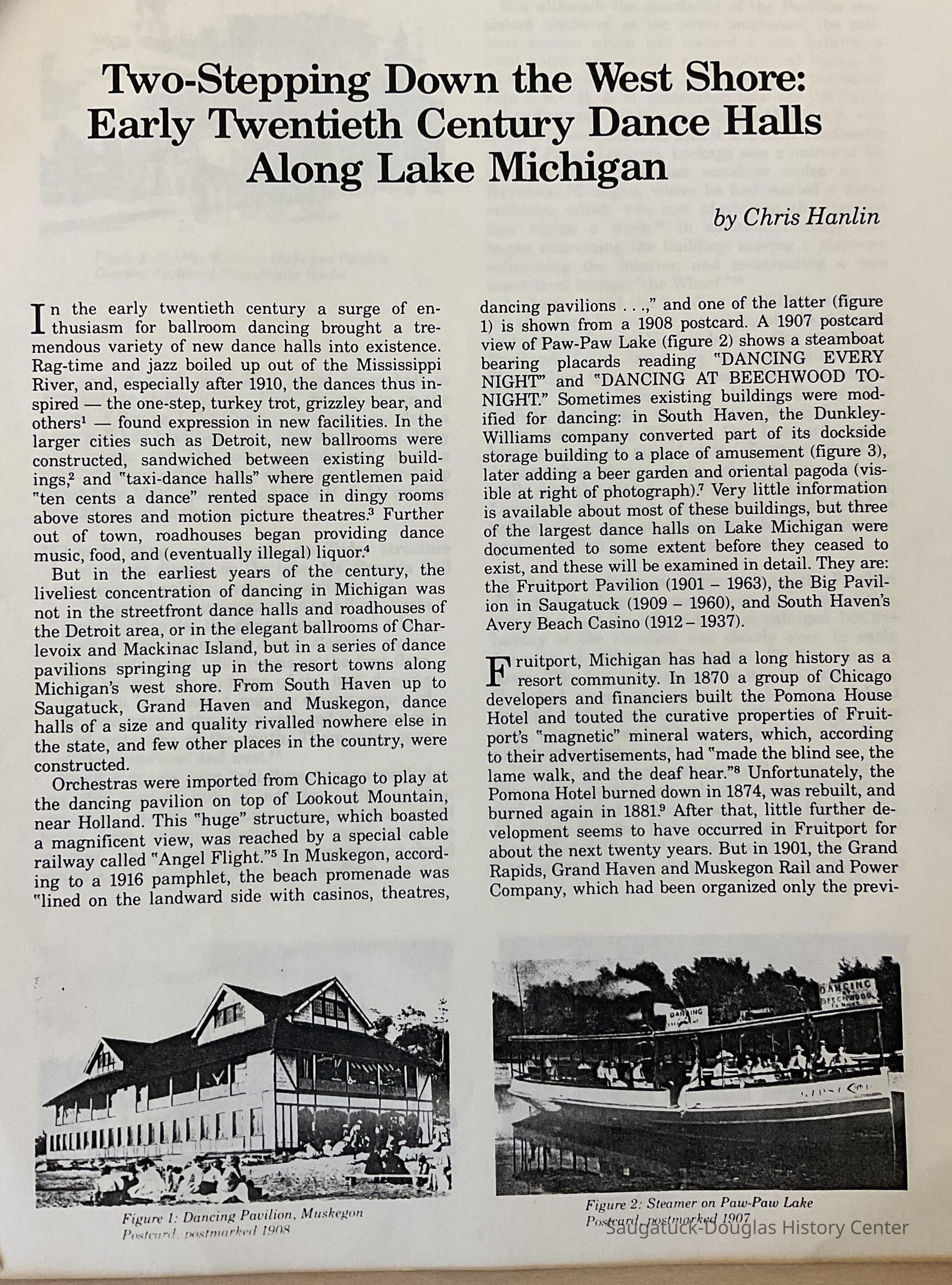 Article about Dance Halls along the Lake Michigan Shore including the Saugatuck Big Pavilion by Chris Hamlin