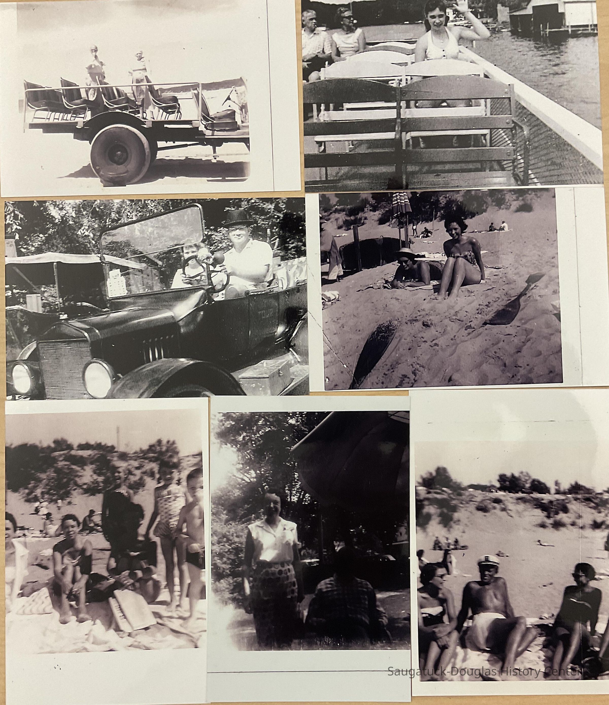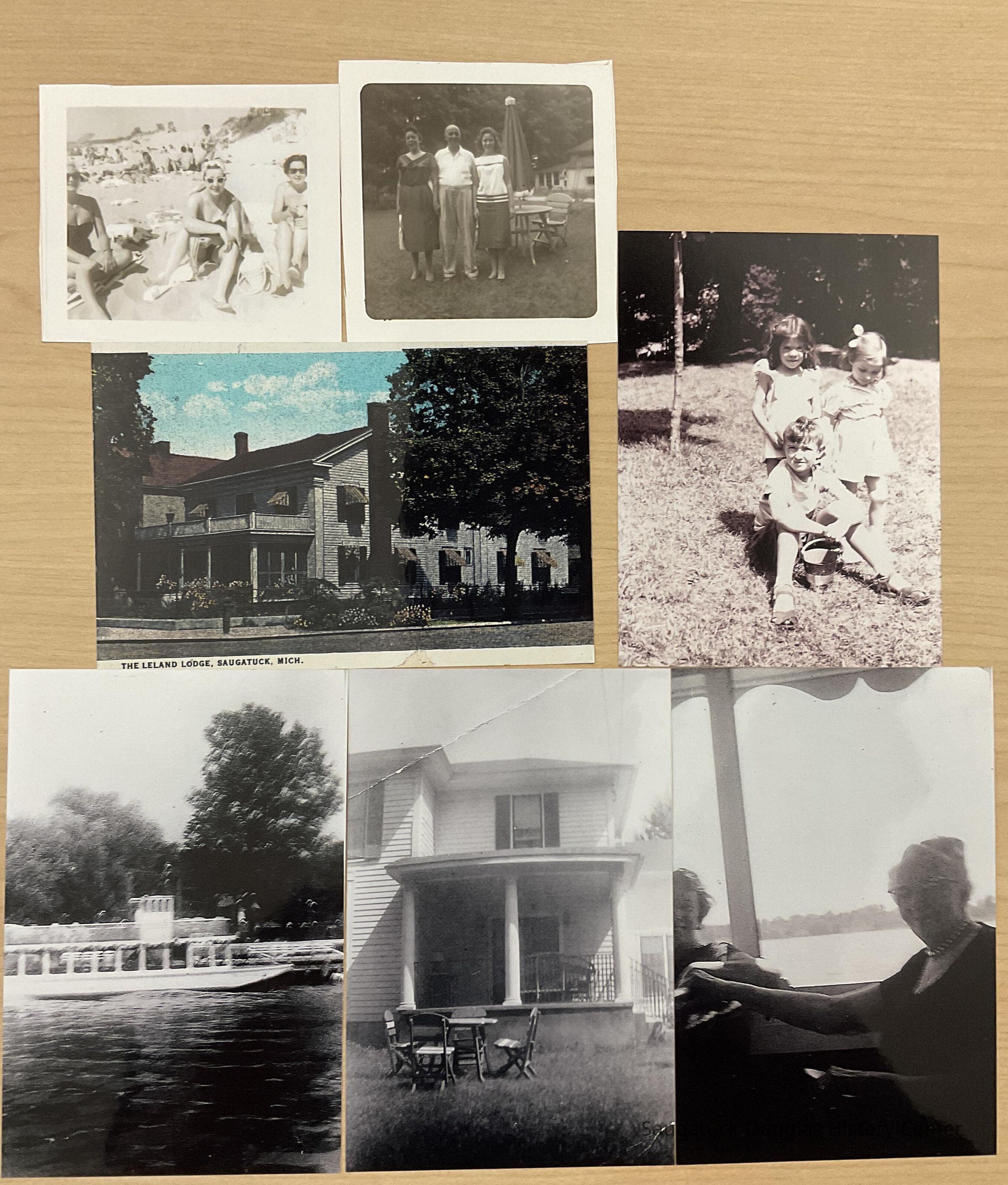 (1) The Dune Schooner - 1958 - My dad Jim McFadden & Grandma Emma Schotte. (2) Here I am on the Island Queen - Summer 1958. (3) Me & R.J. Petersen in 1958. (4) Here I am with Fran Moore of the Island Lodge at the Oval Beach. - Summer of 1959. (5) Marge Bolton, my mom, Dell McFadden - unknown woman & children - 1958. (6) My mom & Dad in the front yard of the Leland Lodge ‘58. (7) Grover Stout & friends - about 1957. That 3rd lady always seems to get cut out.