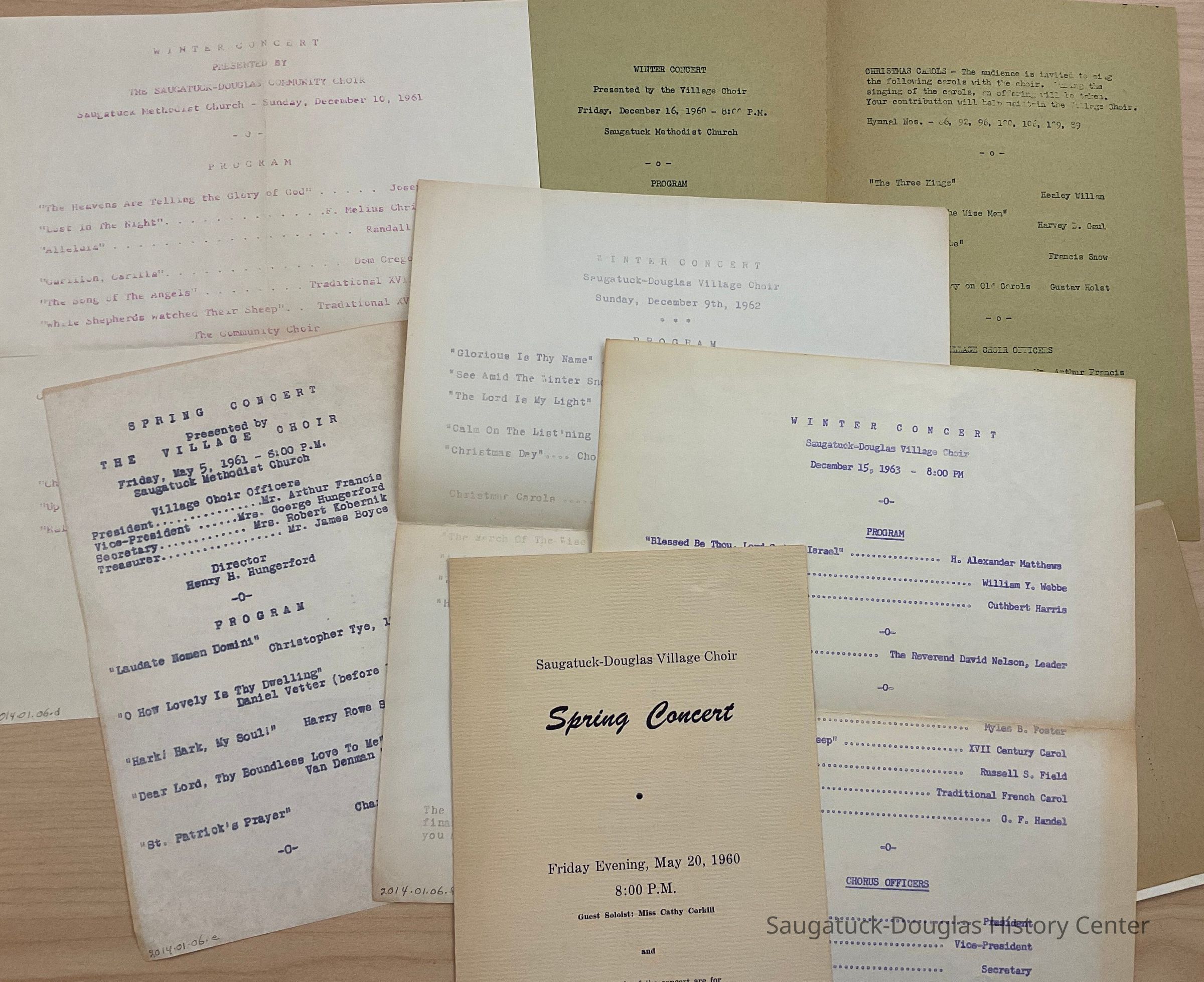 A group of eleven programs from 1959-1964 for the Saugatuck-Douglas Village Choir. 2014.01.06a-jCollection