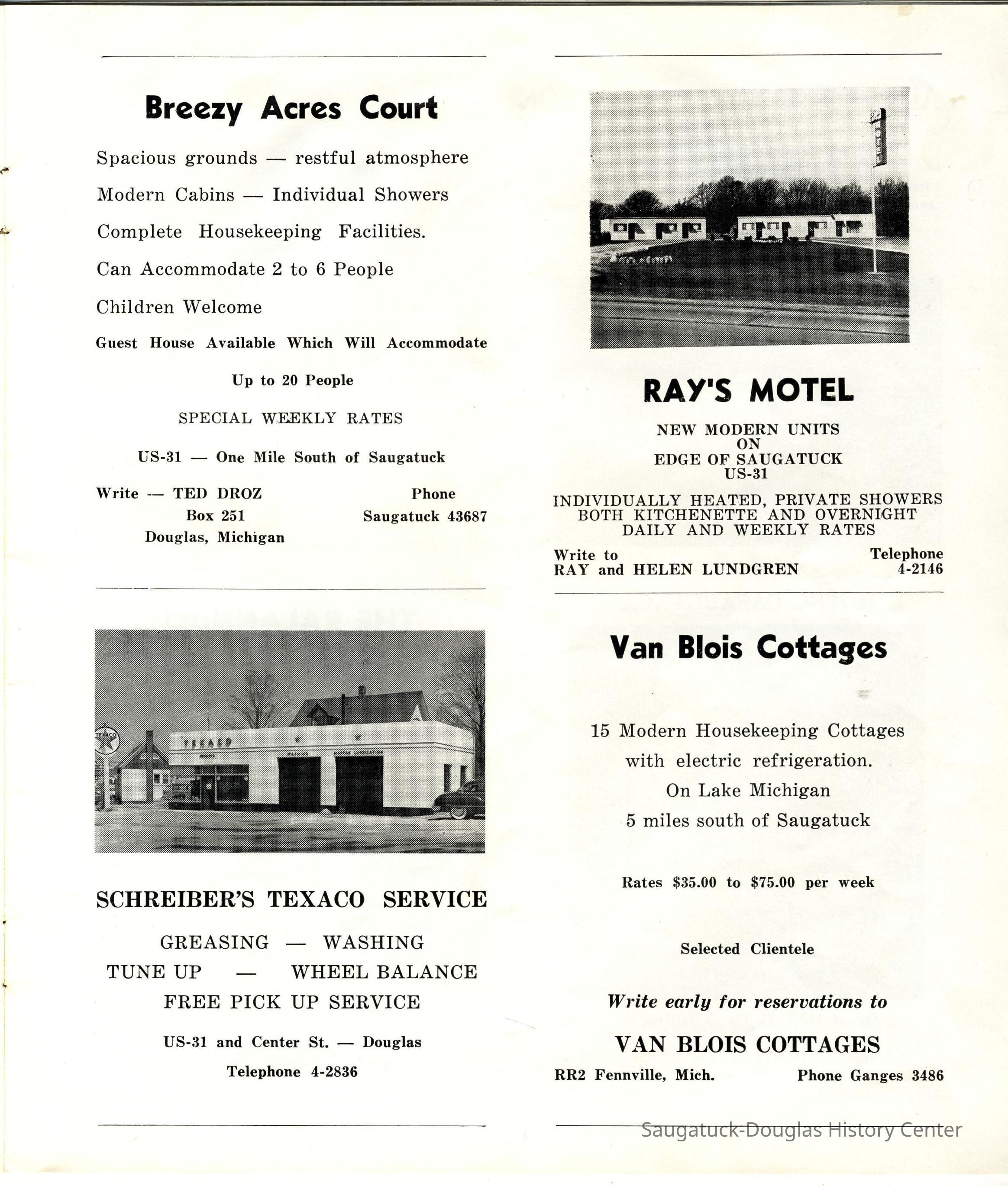 Chamber of Commerce, Saugatuck-Douglas, Wright, George Cary 1881-1955, 405 Park/Unsalted Boat Rentals/Casa Loma, 428 Butler/Maplewood Hotel b.1860/facade 1923, J.Petter/Joyce Petter Gallery/161 BSHwy/Gray Gables/River Guild, Allan Antiques/De Ess, 240 Butler/Blanford Gallery/Taft's Antiques/Simmons of Saugatuck/Tiny Tavern/Schnobel Hardware/Francis Building, Oval Beach 1936-present, Emerson Lounge/Guardian Brewery/Red Barn Theater/Playhouse, Ox-Bow/Summer School of Art, Viola Fox Building/103-107 Butler/Leland Lodge/S.A. Morrison home 1850-1978, Beachway Inn/Ferry Inn c1905-, Mount Baldhead Dune/Park, 91 Mixer/Anthrop/River Guild Apparel Shop 1871, Sherman Lake Shore Cottages, Brentwood, 10 Blue Star Hwy/Keller Building/Johnson's Standard Service, 322 Culver/Scooter's Pizza/Gourmet Shop/Villager Restaurant, Pier Marina/Saugatuck Marine 1947-1970s, Bird Center Resort, 685 Lake/Sprucewood Lakeshore Cottages/Rube Sewers, 40 Butler/Hotel Butler/Grist Mill/Haymarket/Dutch windmill, 840 Lake/Arrowhead Resort, Mayfair Resort, Good Goods/White House/James Dole house/106 Mason, Goshorn Lake Resort, Pottawattamie Beach Club, Reiser's Resort, Bon Air Cabins and Cottages, 152 Butler/Kilwins/Flint's Quality Store/Landmark Building/A.B. Taylor Store/Odd Fellow Hall, 306 Butler/Landsharks/Tripp's/Kruger's/C.E. Bird's/Ensign Drug Store/Wilcox Building, Saugatuck Beach House, Lulu Cadieux/House by the Side of the Road/Edwin House farmstand, Anchor Park Amusement Center 1951-1975, C.E. Bird house/Frolic Resort, Tara Restaurant/Spencer House/200 Center, Wave Crest Farm, Speets Modern Motel, Buoris Hotel, Orzehoski and Jenning Garage, 325 Butler/Santa Fe Trading Company/Old World Bakery/Rosemarie/Wilson Ice Cream, Douglas Building Center/Hutchins Lumber and Supply Co., Rivulet Hurst Dairy, 322 Butler/It Is What It Is North/Cain Gallery/Jeune Fille, Sunset Rest Tourist Cabins, Allen's Shop, 229-233 Butler/Oosting Appliance Shop East/Green Kandle/Busy Bee, 237 Butler/Puddingstone/Sinbad/Carl Walter's/Community Cleaners/Roche building, Pac-Snac, Koster's Lodge, Gilman's Motel, Clearbrook Golf Club/Hamilton Lake Club/Saugatuck Golf Club, Ihle's/Newnham's Service Station, Hopper, Henry B., Douglas Gas and Oil Company, Douglas Blueberry Plantations, Breezy Acres Motel, Ray's Motel, Douglas Lighthouse Realty/Schreiber's Texaco Service Station, Van Blois Cottages & Motel, Hotel Casablanca/Grace Hotel/Roamers Inn 1904-1969, Ralanndo Guest Home, 201 Butler/Saugatuck Drug/Rexall/Parrish's Drug/Hotel Hamilton/Saugatuck House 1852-1913, Brady, Lemuel "Lem" Rawlings Sr. 1889-1959, Pine Trail Camp/Camp Oak Openings/Slumber Bluff, Saugatuck Lodges, 787 Lake/Shady Shore Lodge and Cabins/Utopia Resort, White Dog Inn/Jocko's/Pine Crest Inn 1938-2012, 543 S. Maple/Charles Mann Gardens/Flower Basket, Henry Beinfohr's Evergreen Nursery, 2346 Blue Star Hwy/Huntree Nursery, Lloyd J. Harriss Pie Company/Rich Pie Company c1950s-1998, 220 Water/Coral Gables/Hotel Saugatuck/Columbia Hotel/Leiendecker's Inn, Berry Cove Motel, Hotel Saugatuck/900 Lake/Twin Gables Hotel/Singapore Country Inn, Saugi Bites/Siena Cafe/Saugatuck Beauty Shoppe/Engborg Center House, SS Milwaukee Clipper, Cloverleaf Stadium/Airpark Speedway/AirPark Airport, Boat House Tavern, 32 E Center/Van Syckel Grocery/J.E. Durham store, 132-140 Butler/Brass Anchor/Prajna Gallery/Celebration/Elms Hotel/Francis residence/Morrison Hall, 56 Blue Star Hwy/Pines Motor Lodge/Plaza Motel, Village Fair, 202 Butler/Pumpernickle's/Carl's AG/Richard Roda's Billiard Hall/Union Hotel 1870, Wild Dog/Copper Grille/Douglas Bakery, 389 W Center/Willow Tree Cottages/Vel-Bob Resort, 125 Mason/Laughing Glass/Port O' Call/Davis' Chicken As U Like It, 141 Butler/Sand Bar Saloon/Edson Crow Barbershop & Billiard Parlor, Devine Vending Machines, 310 Butler/Fenn Valley Tasting Room/Consumers Power/Village News & Tobacco, Harbor Court Condos/Terrace Park View Resort/Eyeful Tower ?-1964, Brady, Henry L. 1920-2011, Big Pavilion 1909-1960, Holiday House and Rancho Villas