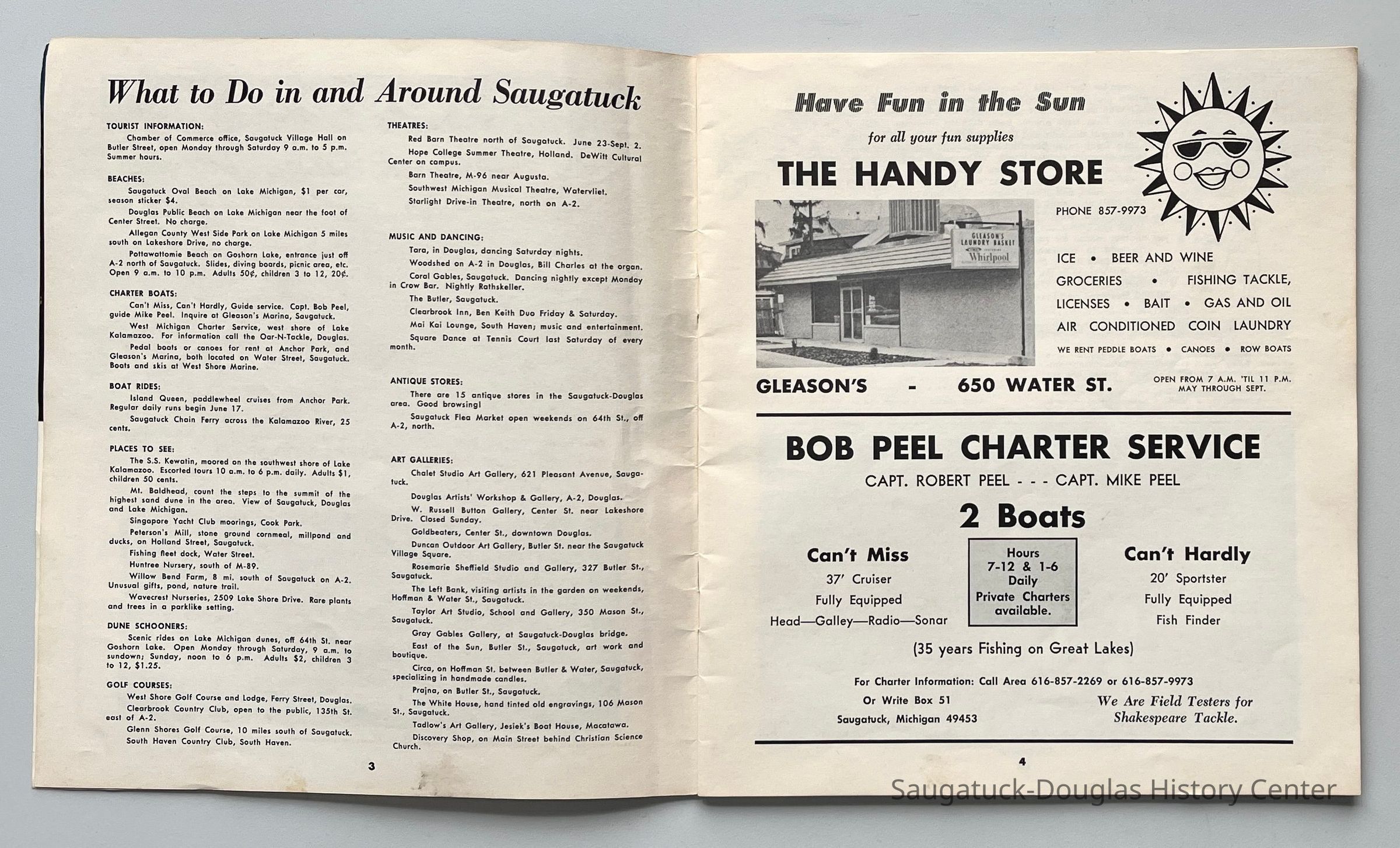Dune Rides, Chamber of Commerce, Saugatuck-Douglas, Emerson Lounge/Guardian Brewery/Red Barn Theater/Playhouse, Saugatuck Yacht Club, 650 Water/Saugataco/River Market/Gleason's Party Store, Peel, Robert Charles "Bob" 1924-1988, Peel, Mike 1953-2016, Clearbrook Golf Club/Hamilton Lake Club/Saugatuck Golf Club, Alley's Lakeview Lanes/Collins' Community Lanes Bowling, 220 Water/Coral Gables/Hotel Saugatuck/Columbia Hotel/Leiendecker's Inn, Tara Restaurant/Spencer House/200 Center, 215 Butler/Phil's/The Walton/The Embassy Bar & Grill/Cook /Metzger/Wallin Building, White Dog Inn/Jocko's/Pine Crest Inn 1938-2012, 216 St Peter's Dr./Safe Harbor/Tower Marina/Capt. Hamilton House, Saugatuck RV Resort/West Wind KOA/West Wind Cottages, Goshorn Lake Resort, Beachway Inn/Ferry Inn c1905-, 612 Park/Holiday Hill, Berry Cove Motel, Timberline Motel, Captains Quarters/Swan Motel, Lake Vista Supervalu/237 W Center/Demond's/Taft's Supermarket, Chalet Studio and Art Gallery, Blue Star Gym/Blue Star Motel (demolished), Edgehill Inn, Pottawattamie Beach Club, Saugatuck Beach House, Carousel Mountain Ski Area/Resort 1963-1973, 405 Park/Unsalted Boat Rentals/Casa Loma, Alfieri/Tubergen Realty/Sinclair Lighthouse Service Station, Huntington/First Michigan Bank and Trust Co., Ship-N-Shore Hotel 1959-, Pine Trail Camp/Camp Oak Openings/Slumber Bluff, Island Queen I and II Paddlewheelers, Hopper, Henry B., 252 Butler/Tuck's Pandora Christmas Shop/East of the Sun/Cabin Tavern/Walz's Butcher Shop/Nichols Bldg., Burns, Terry, 132 Mason/'Round the Corner Ice Cream Shoppe/Model Laundry/Metzger Building, Brady/L.R. Brady Insurance Company, 10 Blue Star Hwy/Keller Building/Johnson's Standard Service, Johnson Mobile Village, Motel Shangrai La c1950-, 880 Holland/Southerner/Elbo Room/Clover's Landing, Douglas Building Center/Hutchins Lumber and Supply Co., Old Rail Garden Restaurant/505 or 500 Water/burned 1982, 142 Butler/Lucia's/Art Glass Alcove/Curious Cove/Green Parrot Cafe/Sorenson Building, Huntington/TFC/Chemical/Citizens Trust and Savings Bank, Venetian Festival, Douglas City Hall+/Medical Center/'Douglas Community Hospital 1960-1985, Attic Shop, Saugatuck-Douglas District Library, Art Club, Saugatuck Douglas, Anchor Park Amusement Center 1951-1975, 844 Holland/Peterson Grist Mill, 325 Butler/Santa Fe Trading Company/Old World Bakery/Rosemarie/Wilson Ice Cream, Tote-Um Corner/Hamburger Heaven/A&W rootbeer