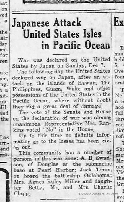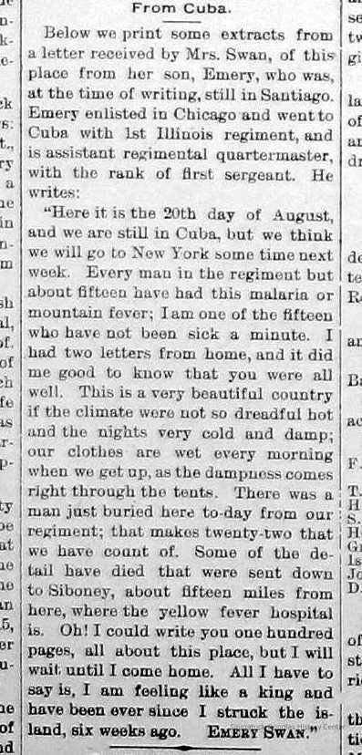 Scans of Commercial Record newspaper clippings about local people serving in the "Indian campaign", the Spanish-American War and at the declaration of war on Japan in 1941.Collection