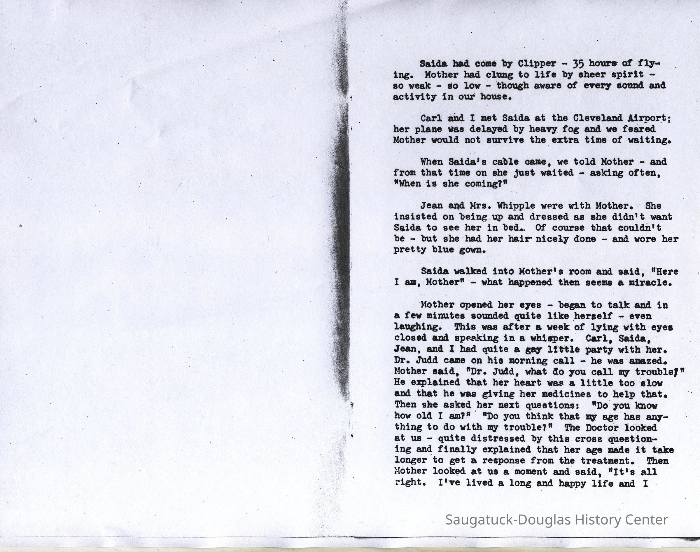 Saida and White were both married and living in Honolulu. Mother had been in Saugatuck, with a sick husband, a young daughter, and a nurse; and none of us had been aware of her need for a change until the doctor informed me.