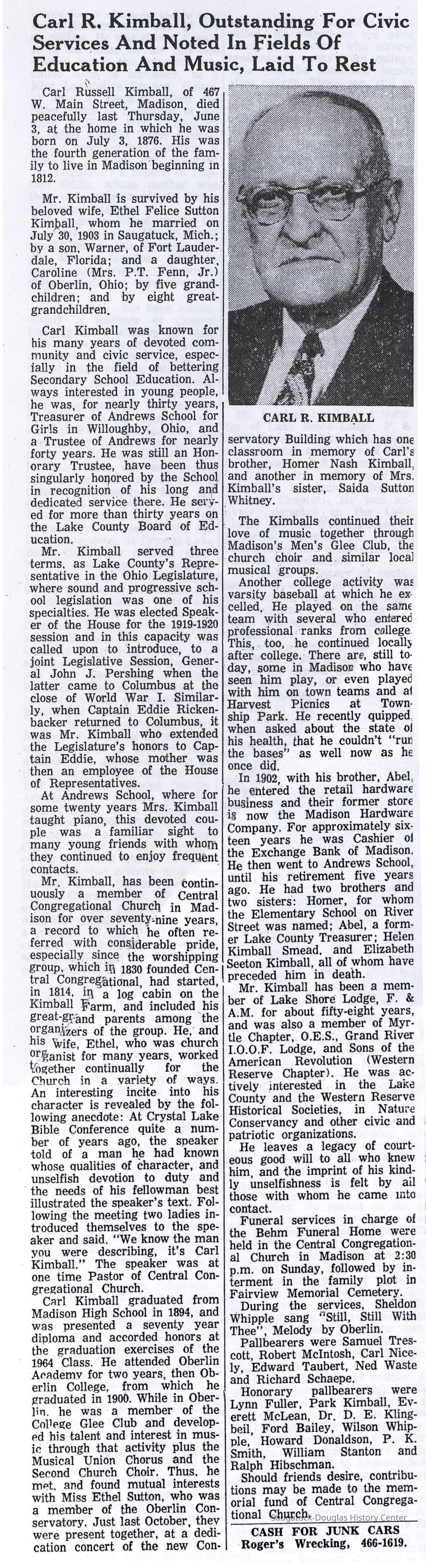 Father became a teacher and journalist, He first met Mother at a Teachers' Institute (the story of that meeting is in "Mother's story"). He taught in Watervliet, Ludington, and Saugatuck. In Saugatuck, he was the principal and added one year to the curriculum, making it a one-year high school.