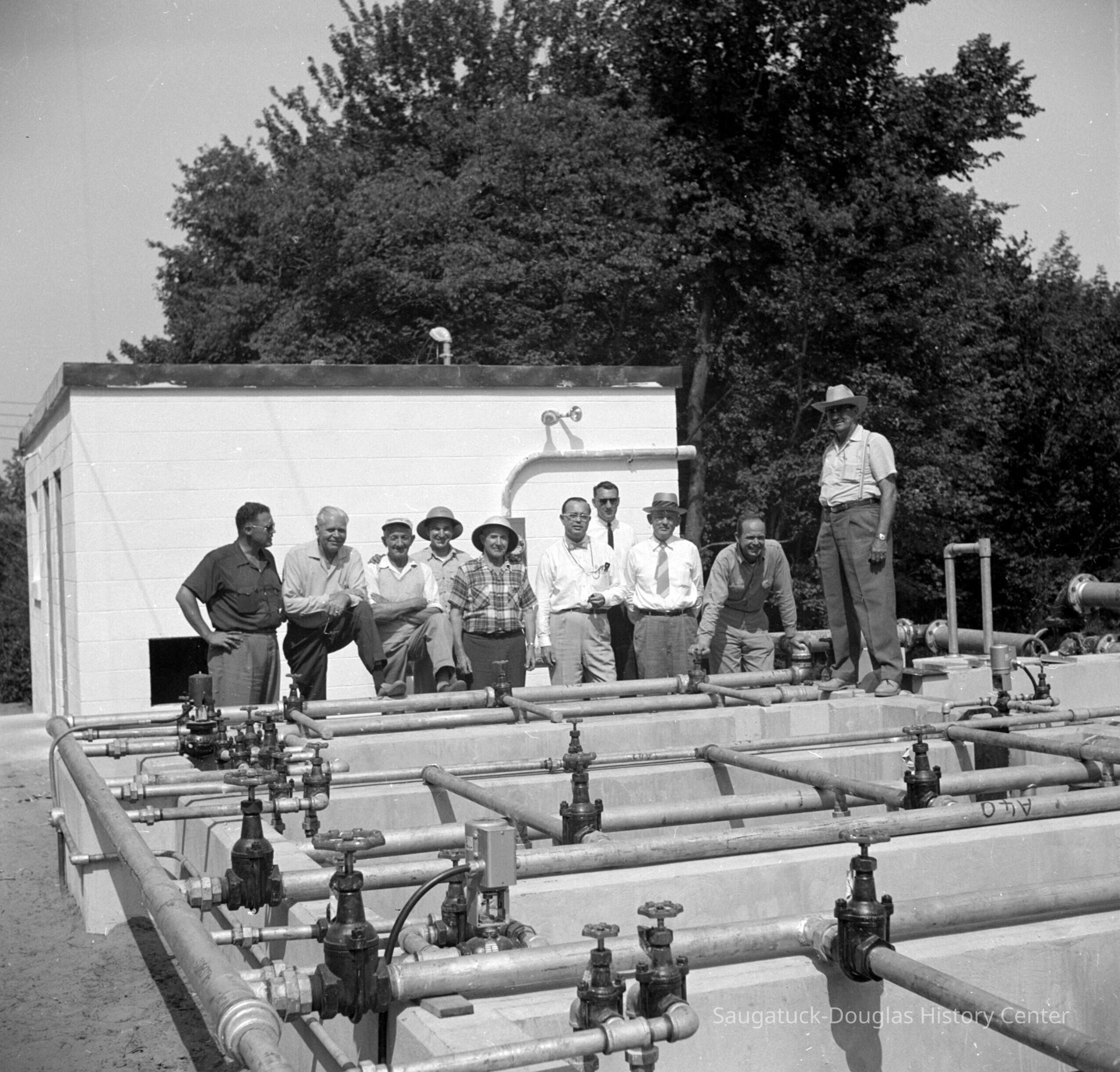 After years of foot dragging, the village of Saugatuck installed their first sewage treatment facility south of Mill Street, between Holland Street and Simonson Drive, just upstream of the Peterson Grist Mill. Saugatuck councilperson Dick Hoffman if often cited as an individual who moved this project forward. In 1977, the facility was replaced by the Kalamazoo Lake Sewer & Water facility off Jack Wilson Road in Saugatuck Township.Collection