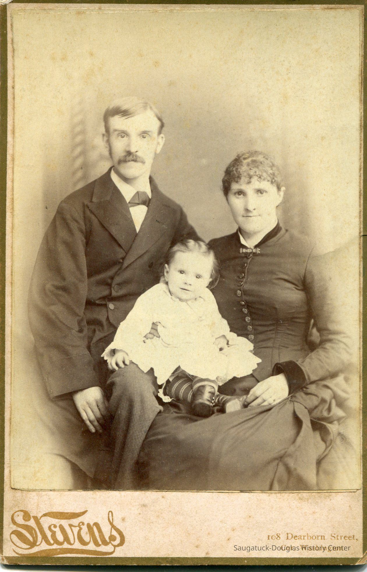 Vignette photo of a man, woman and infant. All gaze into the camera.