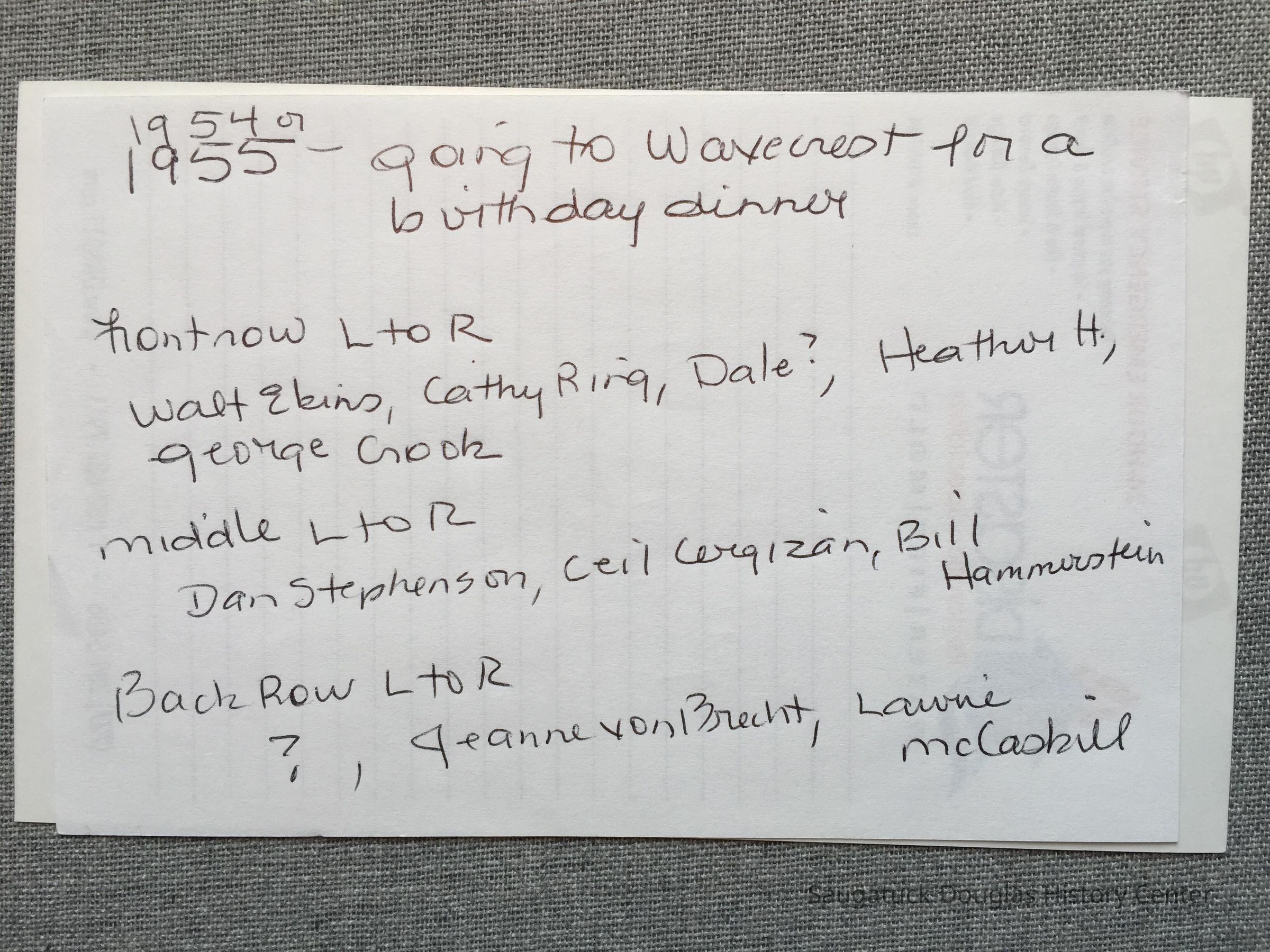 Wavecrest Birthday Dinner groupEntry/Object ID