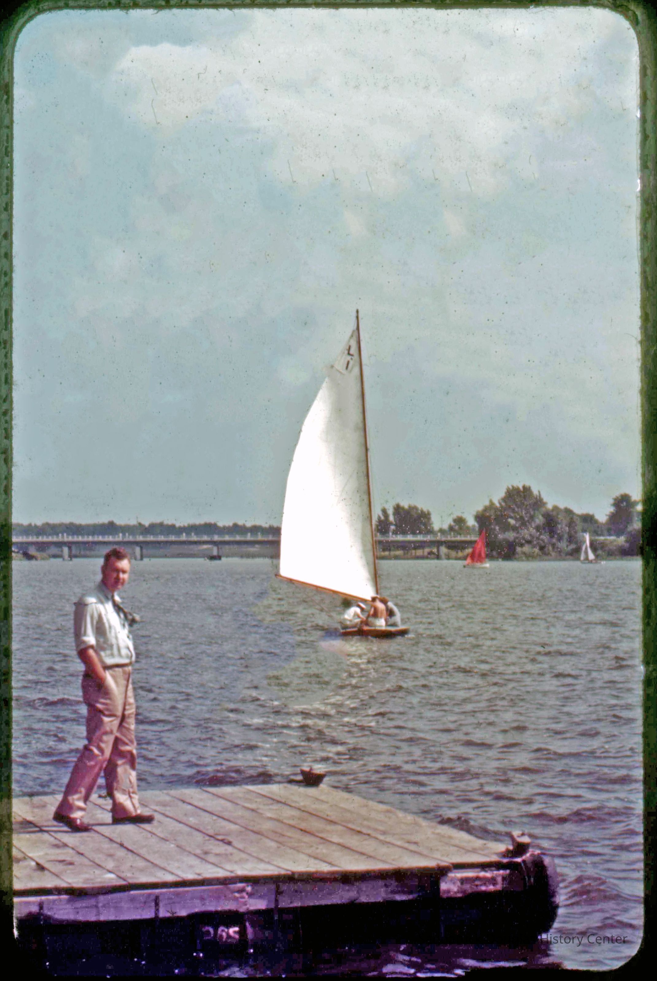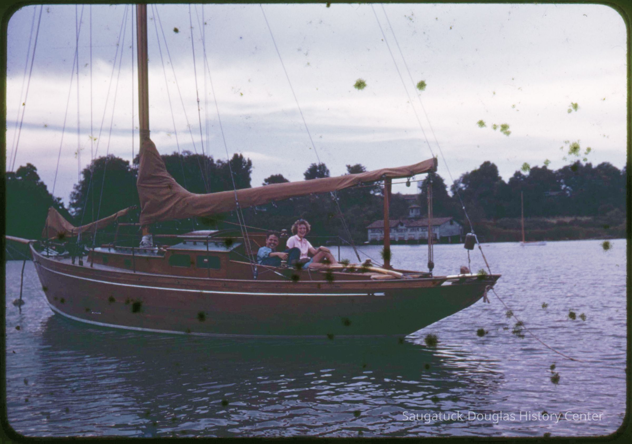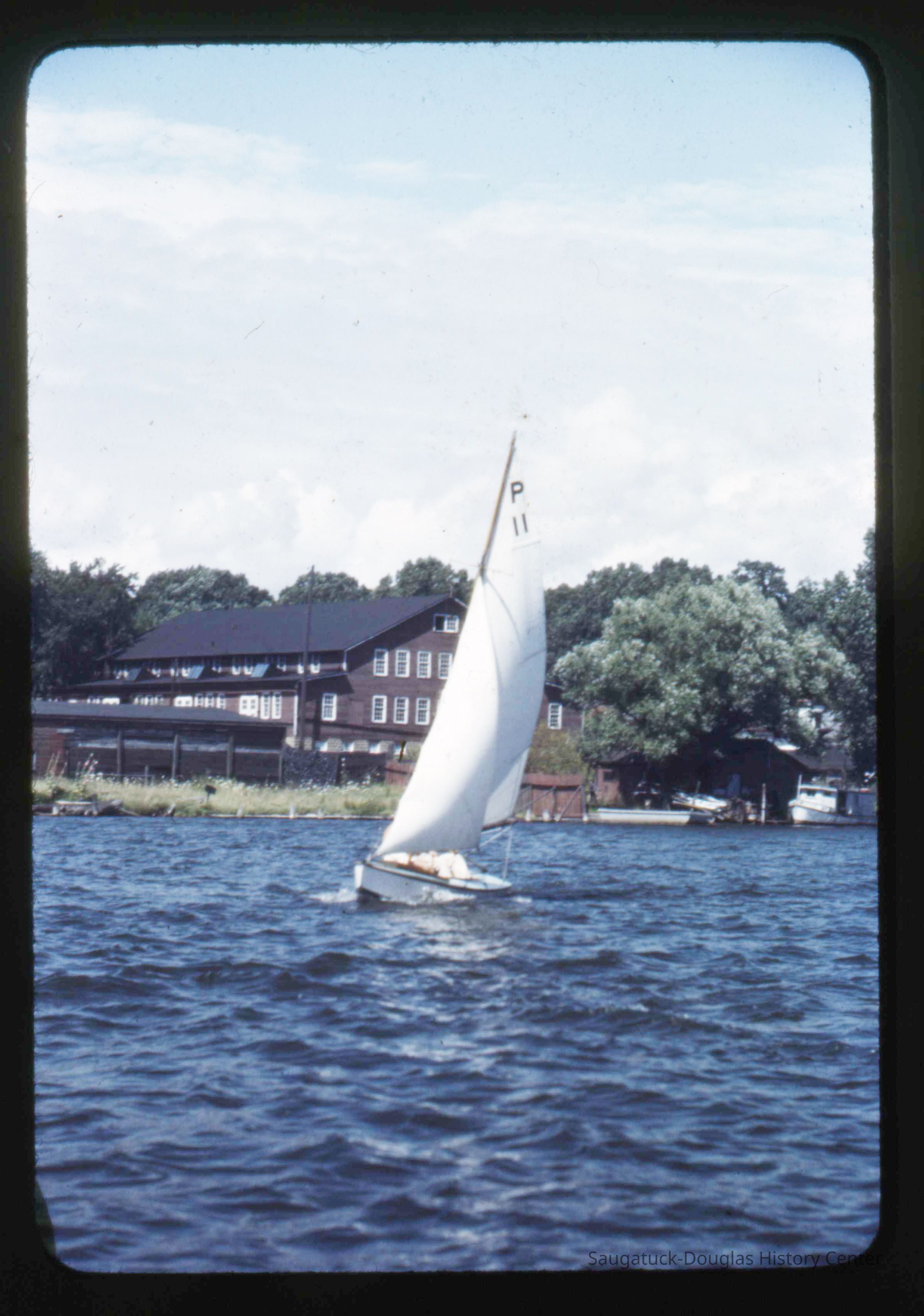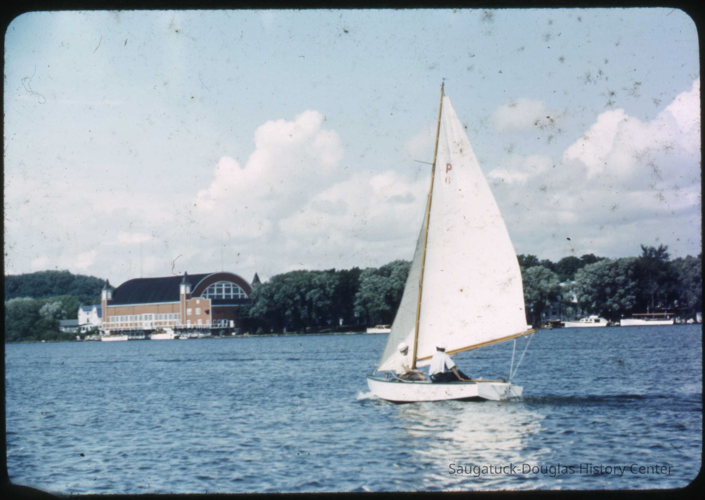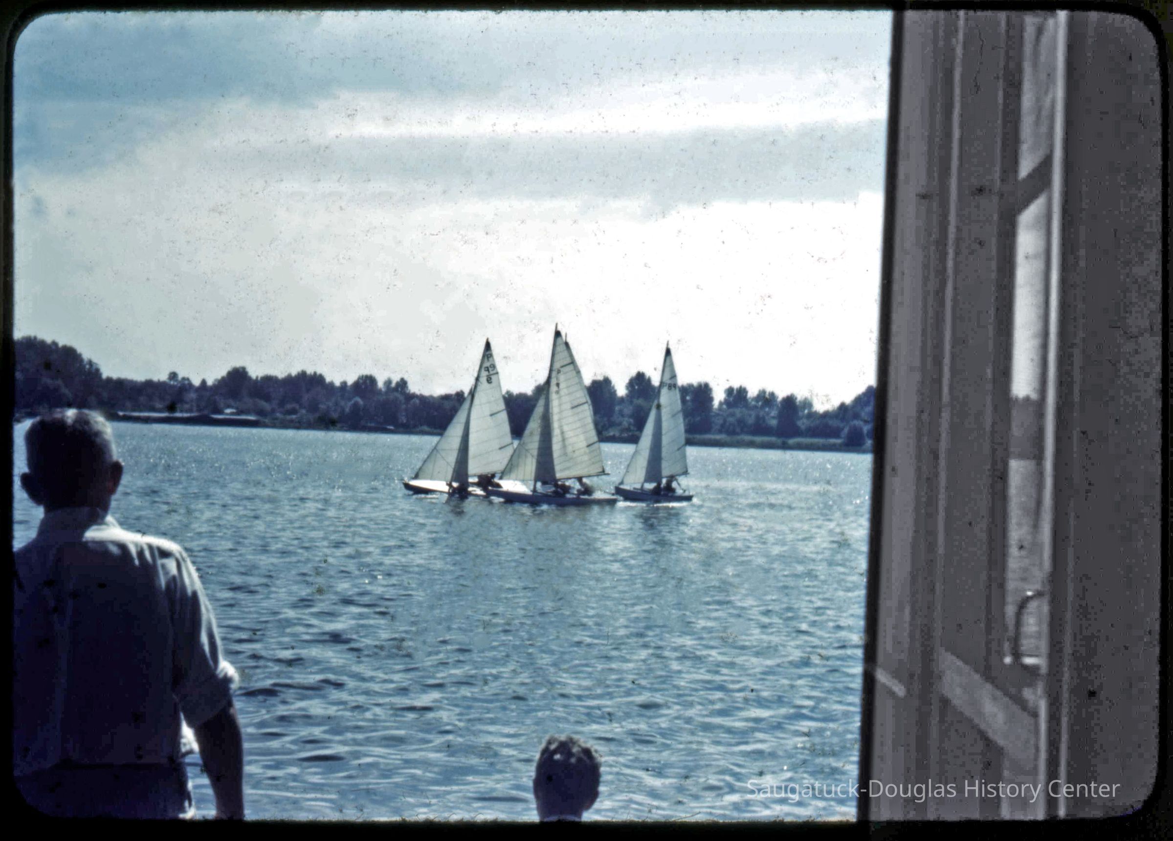 A collection of glass-faced slides of people sailing the Saugatuck Yacht Club fleet. A few of the slides have labels with dates that range from 1939 to 1945.
