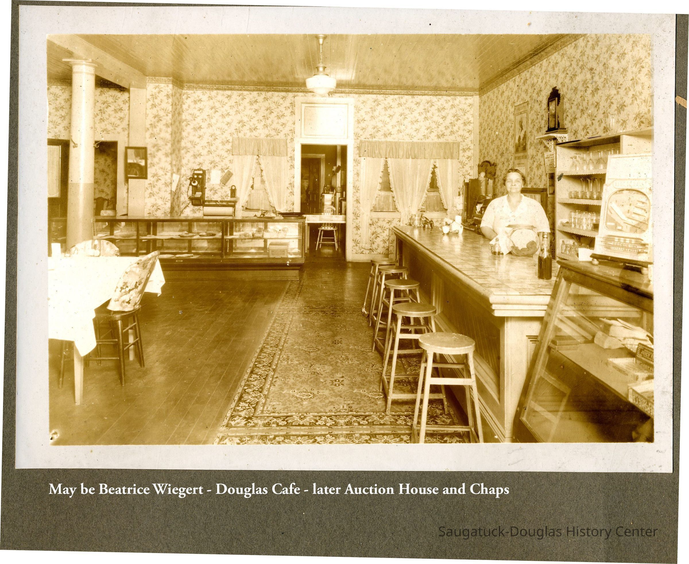 Happystance/8W Center/Chaps/Auction House/Douglas Cafe/Wiegert's Model Grocery, Dunham, Beatrice Arbeanta (Wiegert) 1906-1994, Wiegert, Benjamin "Ben" William 1877-1946, Wiegert, Armour J. 1904-1972, Linter, Cecil, North American (ship), McDonald, Crawford c1910-?Collection